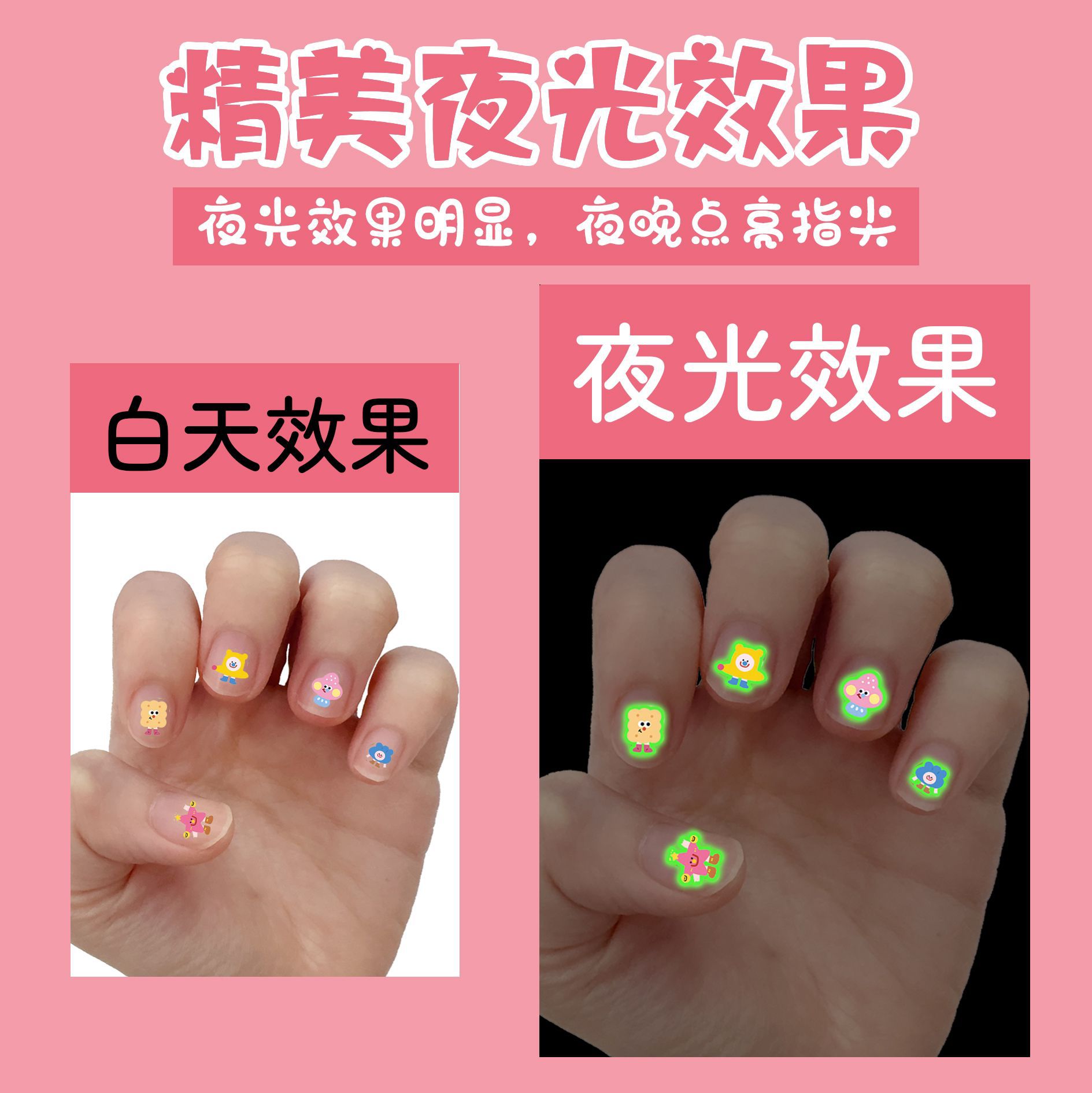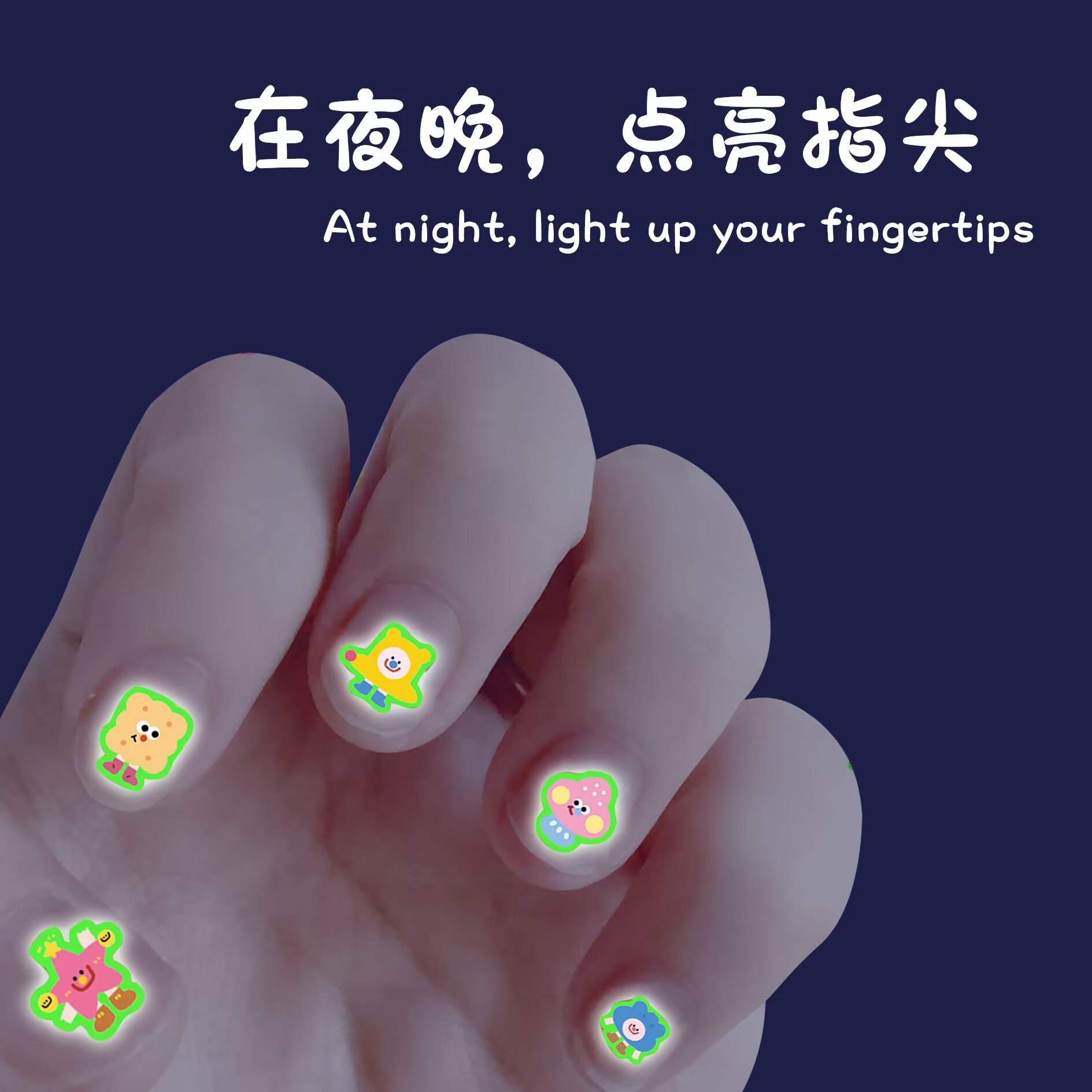 • 어둠 속에서 빛나는 귀여운 네일 스티커