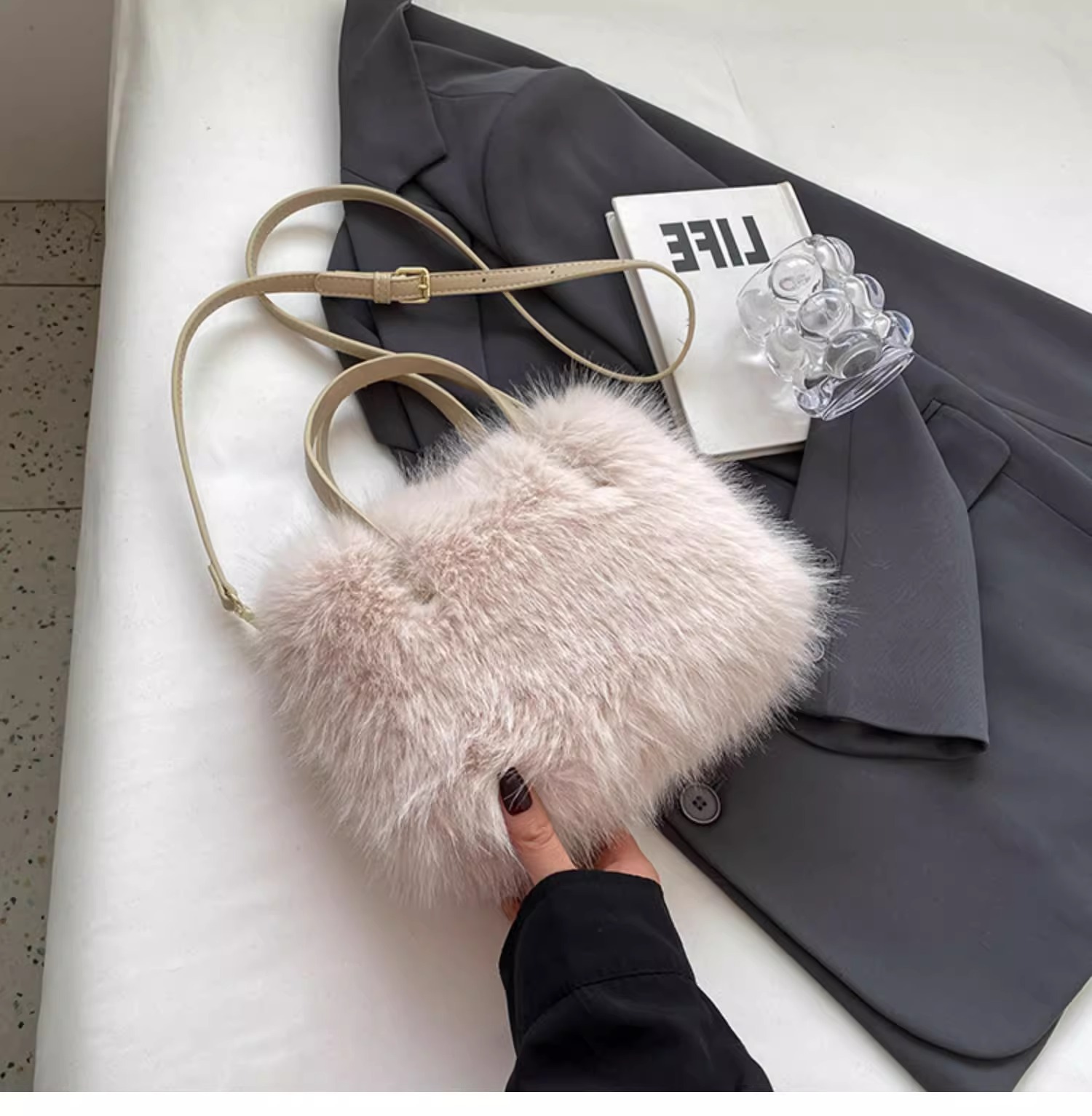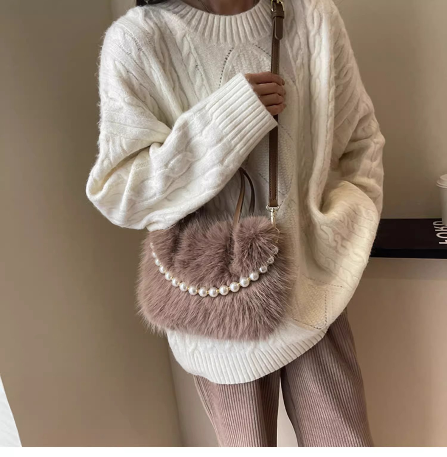 고급스러운 가을 겨울 신상 한국 스타일 여우털 고급스러운 크로스백, 대용량, 심플하고 우아하며 캐주얼하고 다재다능함스토어 가기