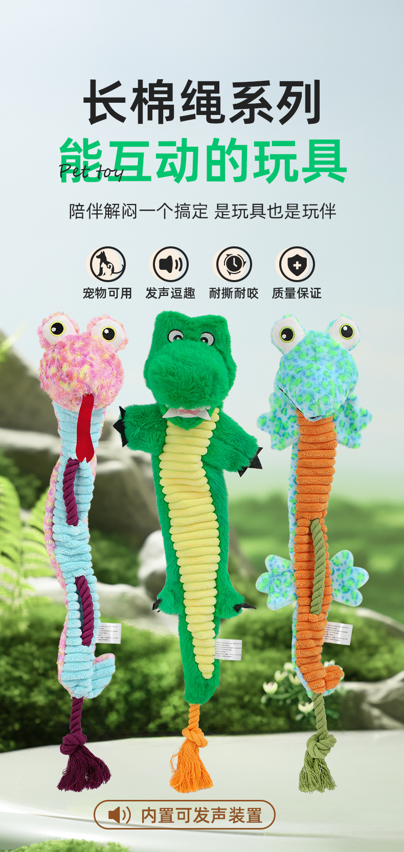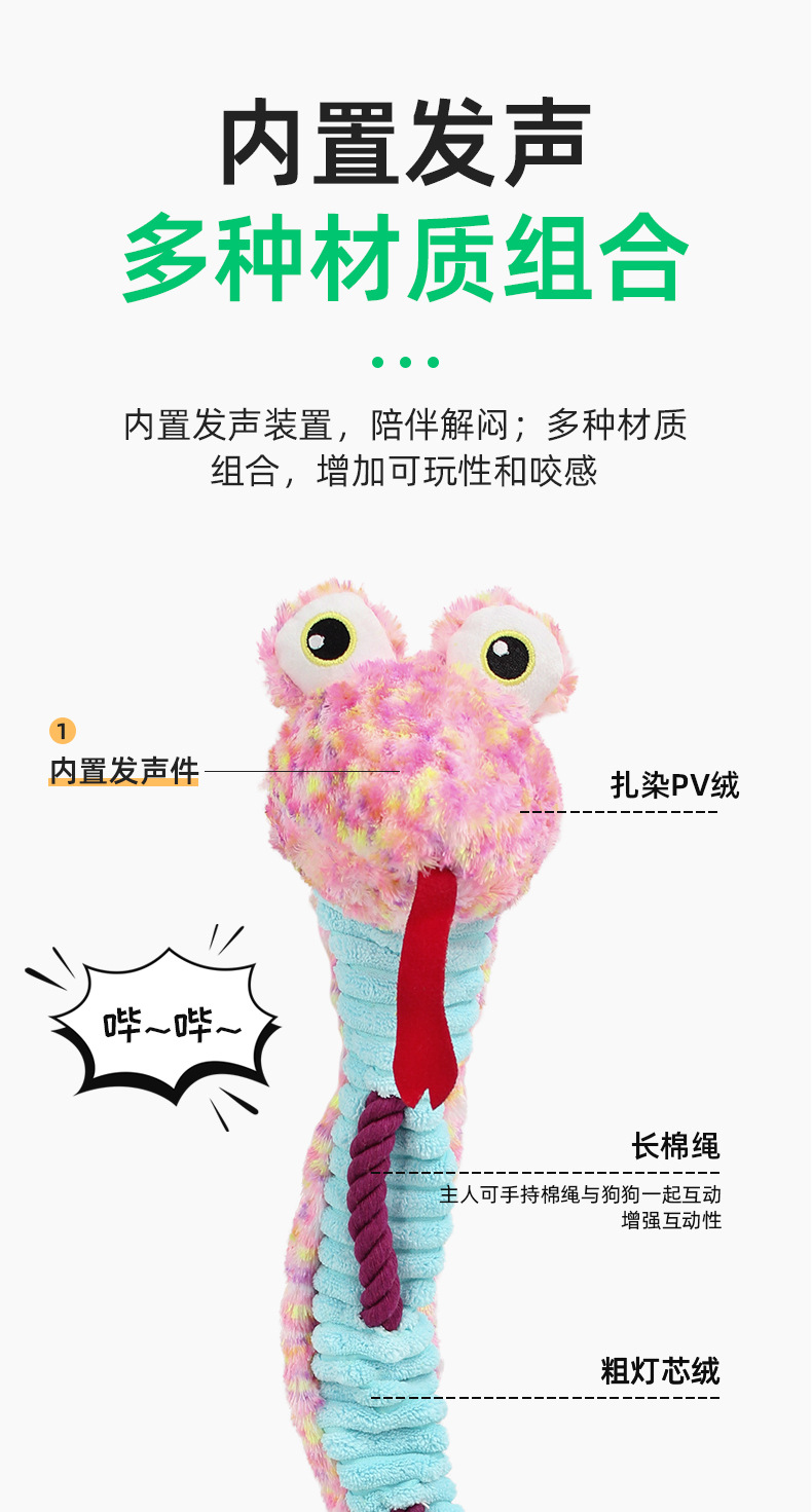 애완 동물 봉제 로프 매듭 소리 장난감 강아지 고양이 훈련 대화 형 바이트 치아 청소 Molar 장난감 뱀