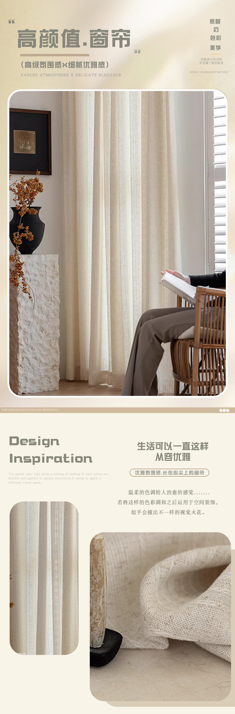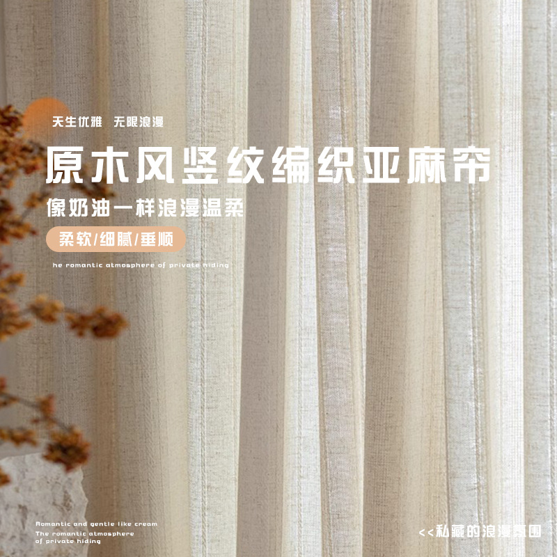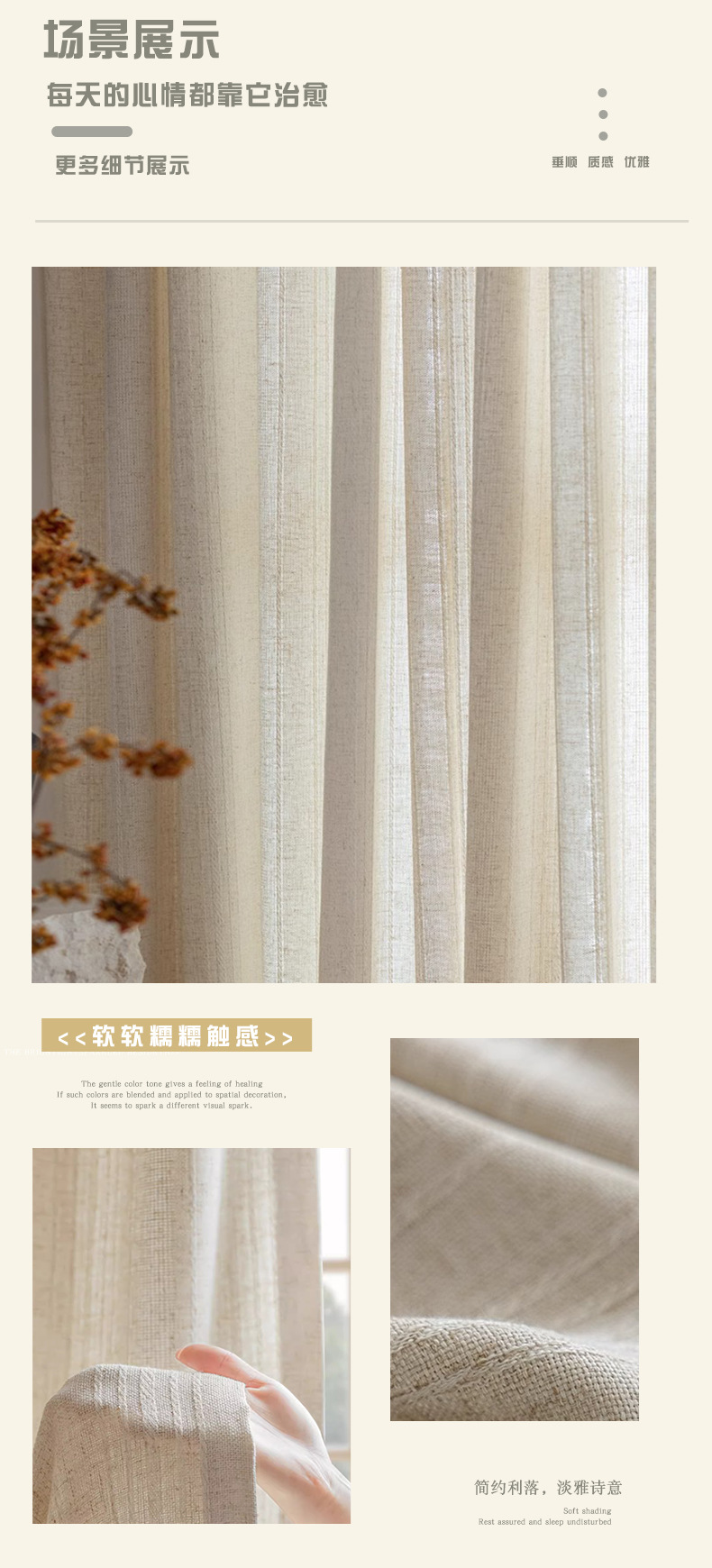 로그 바람 수직 직조 린넨 커튼 간단한 자연 3 차원 질감 Keqiao 커튼 공장스토어 가기