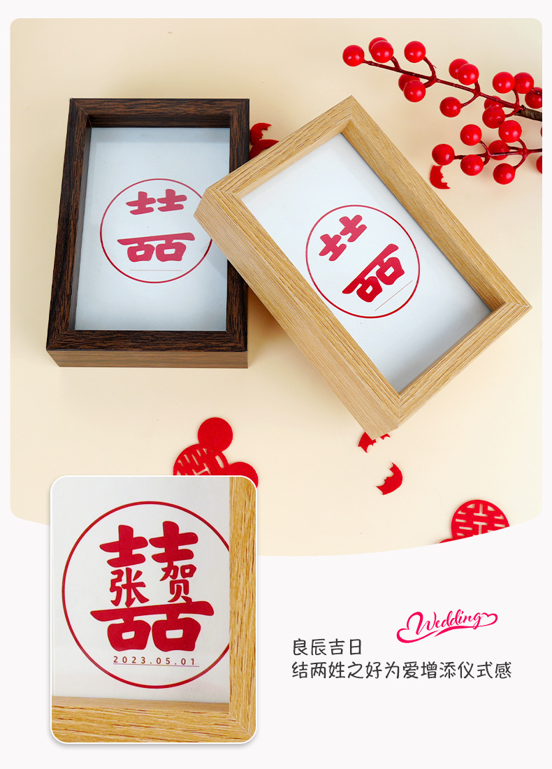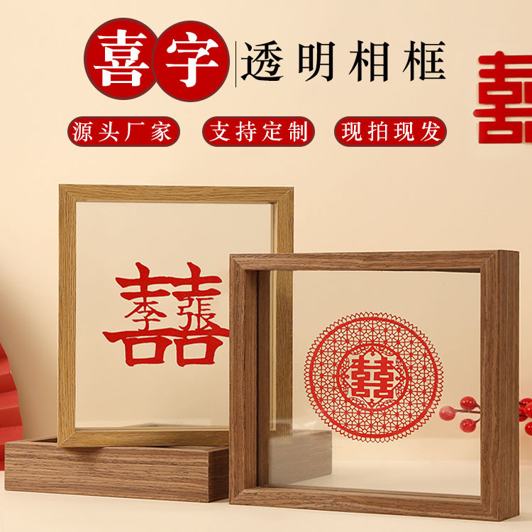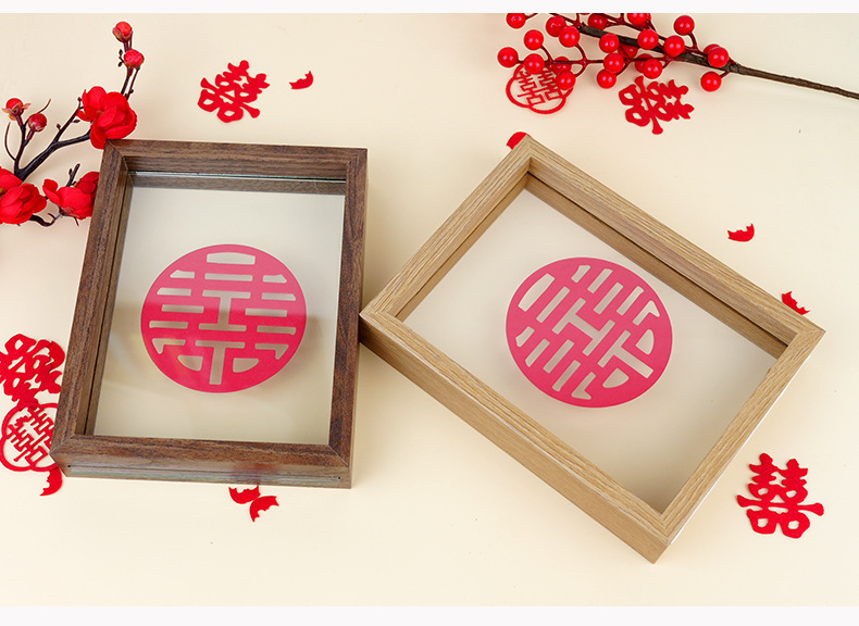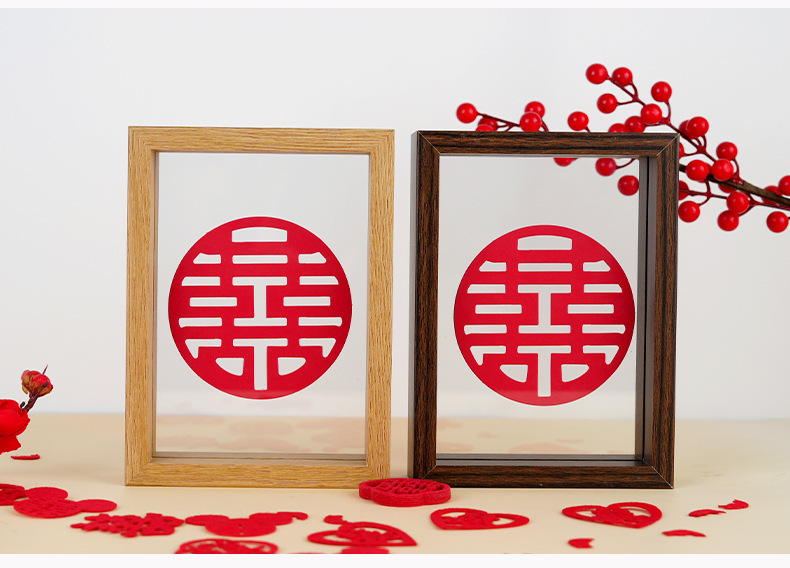 해피 캐릭터 포토 프레임 웨딩 장식품 미니 포토 프레임 중국 스타일 테이블 웨딩 룸 레이아웃 양면 투명 포토 프레임 장식품