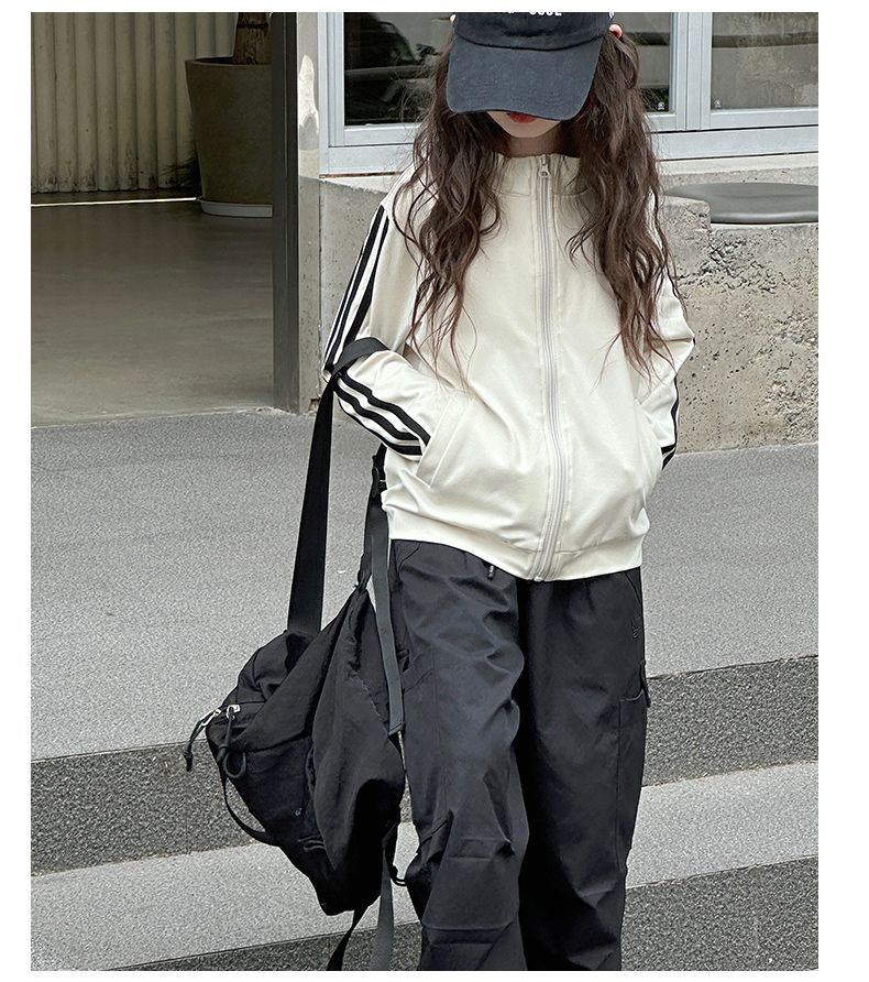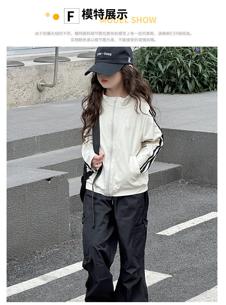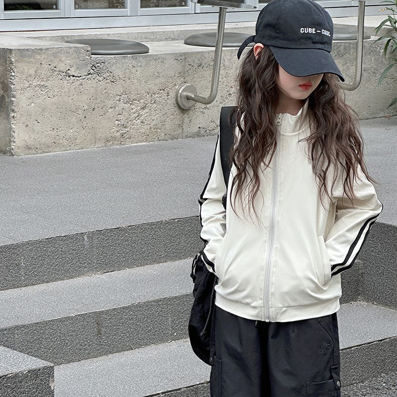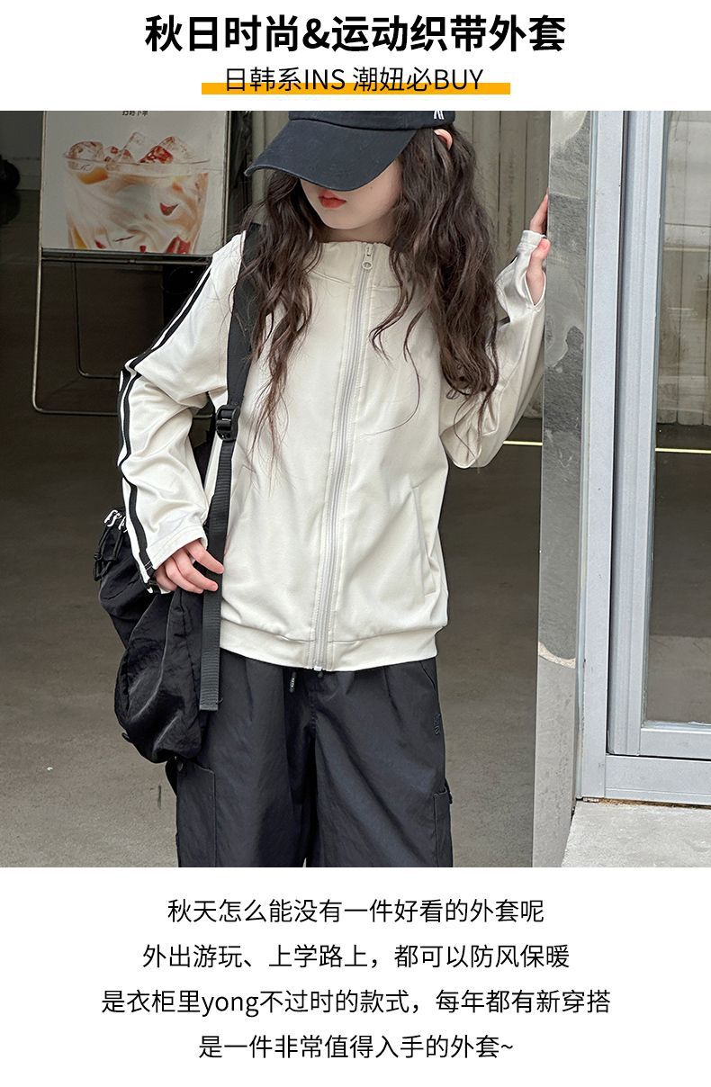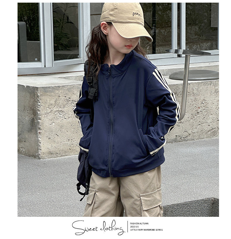 인터넷 인기있는 소녀 한국식 올매치 캐주얼 지퍼 탑 큰 어린이를위한 봄 가을 새로운 트렌디 한 줄무늬 유행 외투스토어 가기