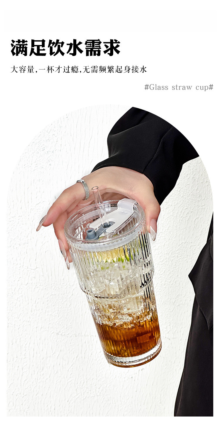 뚜껑 및 밀짚 수직 패턴 유리 과일 차 컵 마시는 컵 아이스 커피 컵 마시는 인즈 스타일 대용량스토어 가기