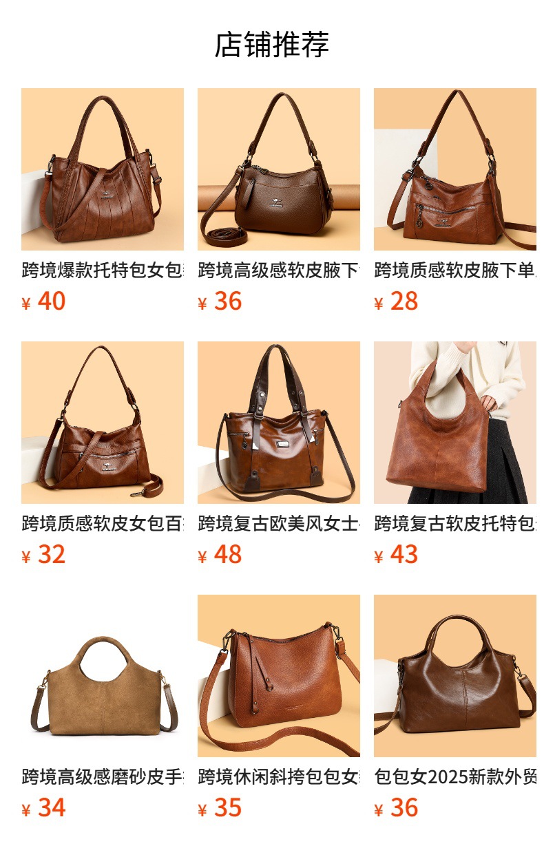 대외 무역 국경 간 질감 부드러운 가죽 핸드백 중년 여성 가방 새로운 경량 통근 대용량 어깨 메신저 가방스토어 가기