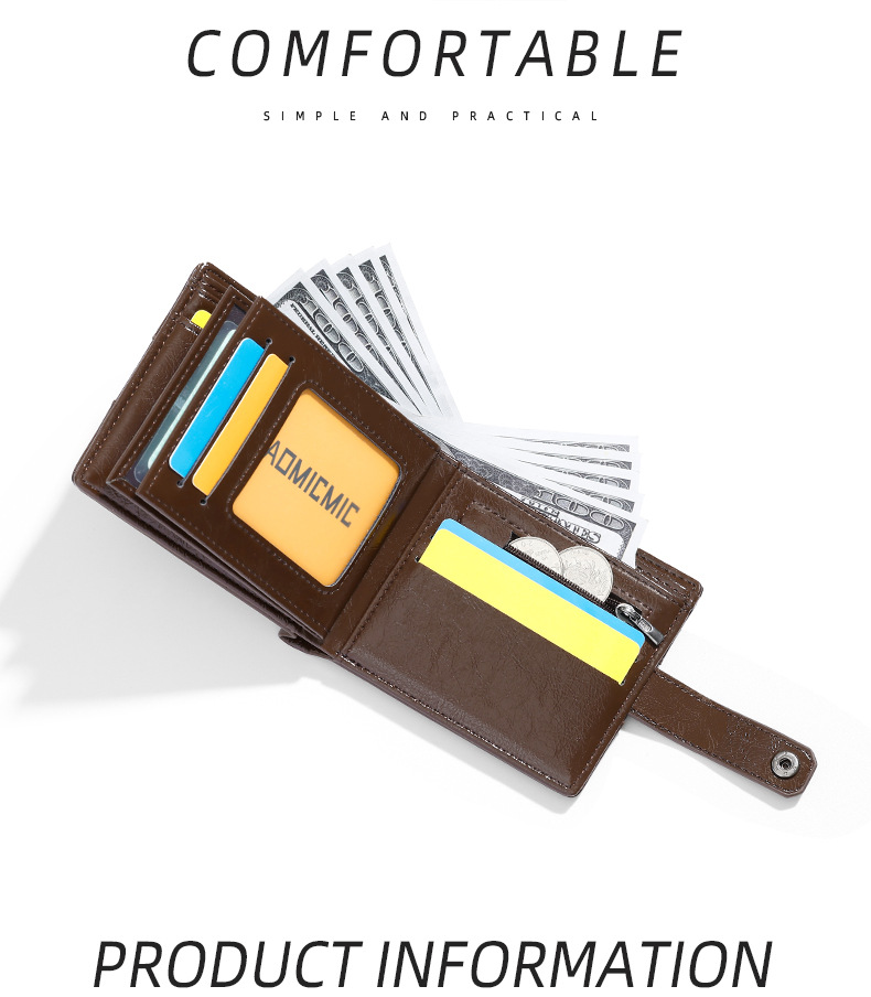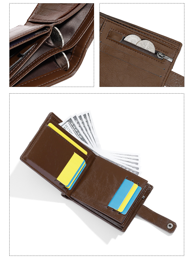 국경을 넘는 신제품 남성용 지갑, 유럽과 미국의 복고풍 스타일의 짧은 사이즈 운전면허증 지갑, 80% off가지 가죽 소재, 다중 카드 슬롯, 동전 지갑