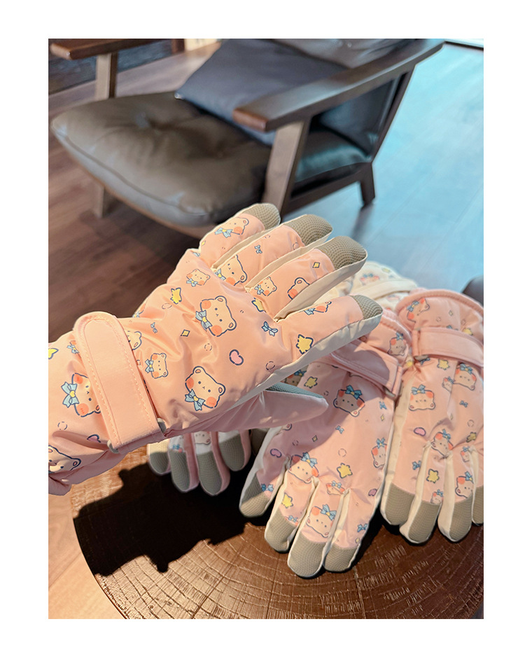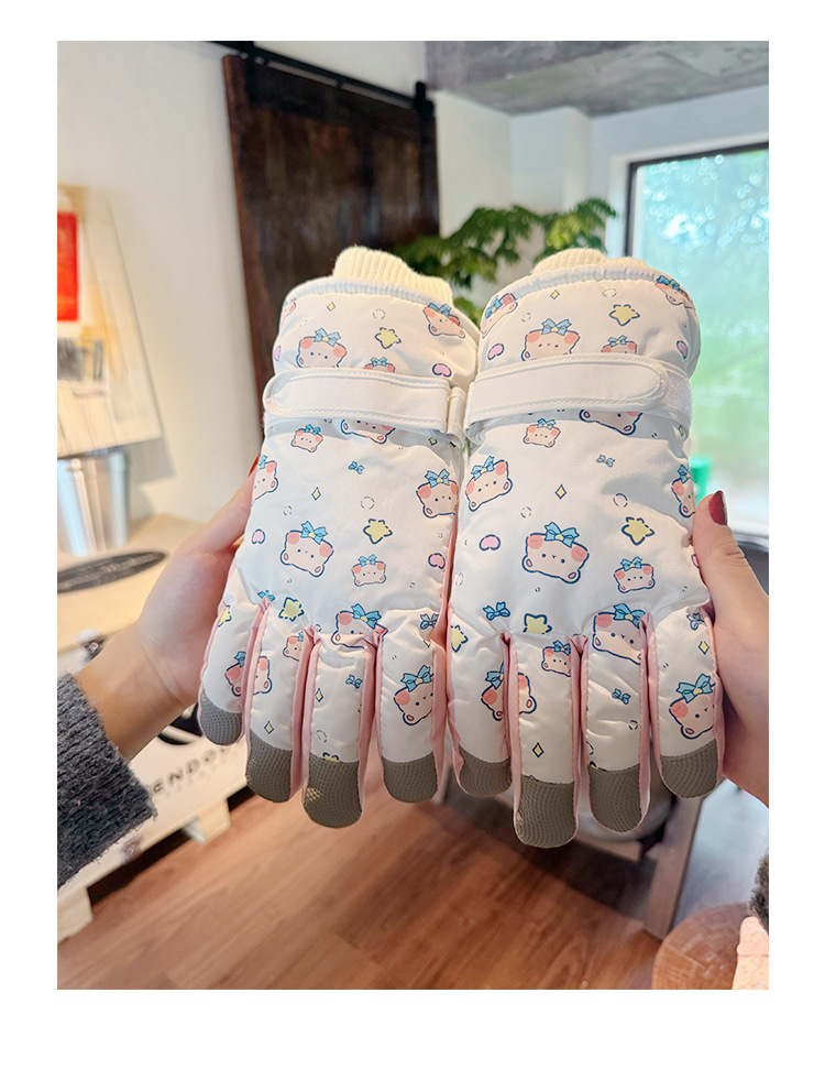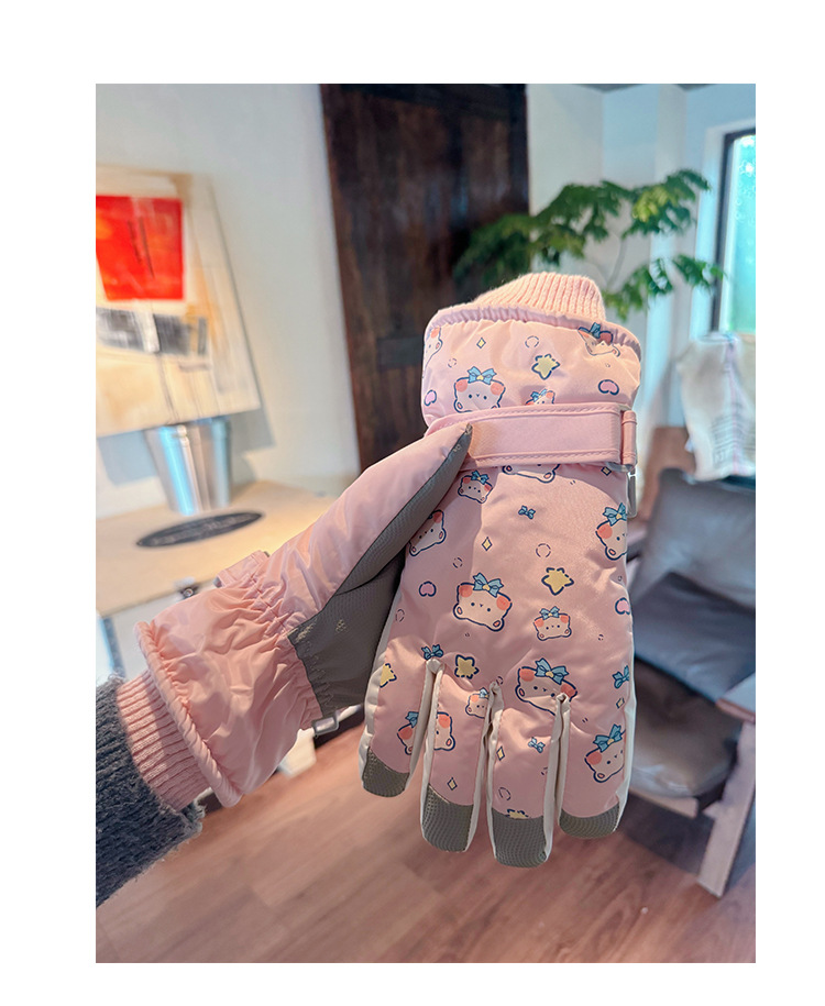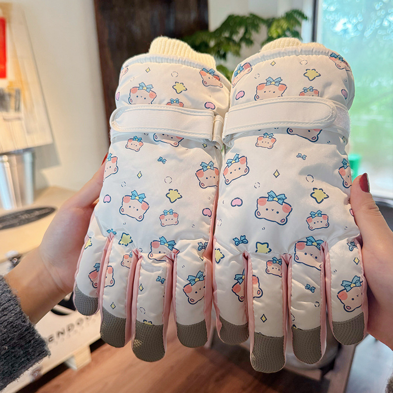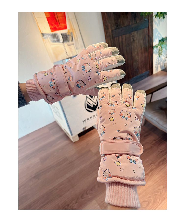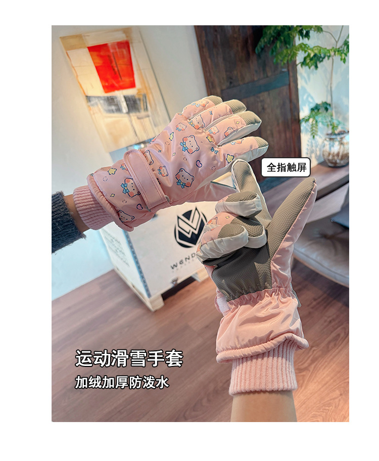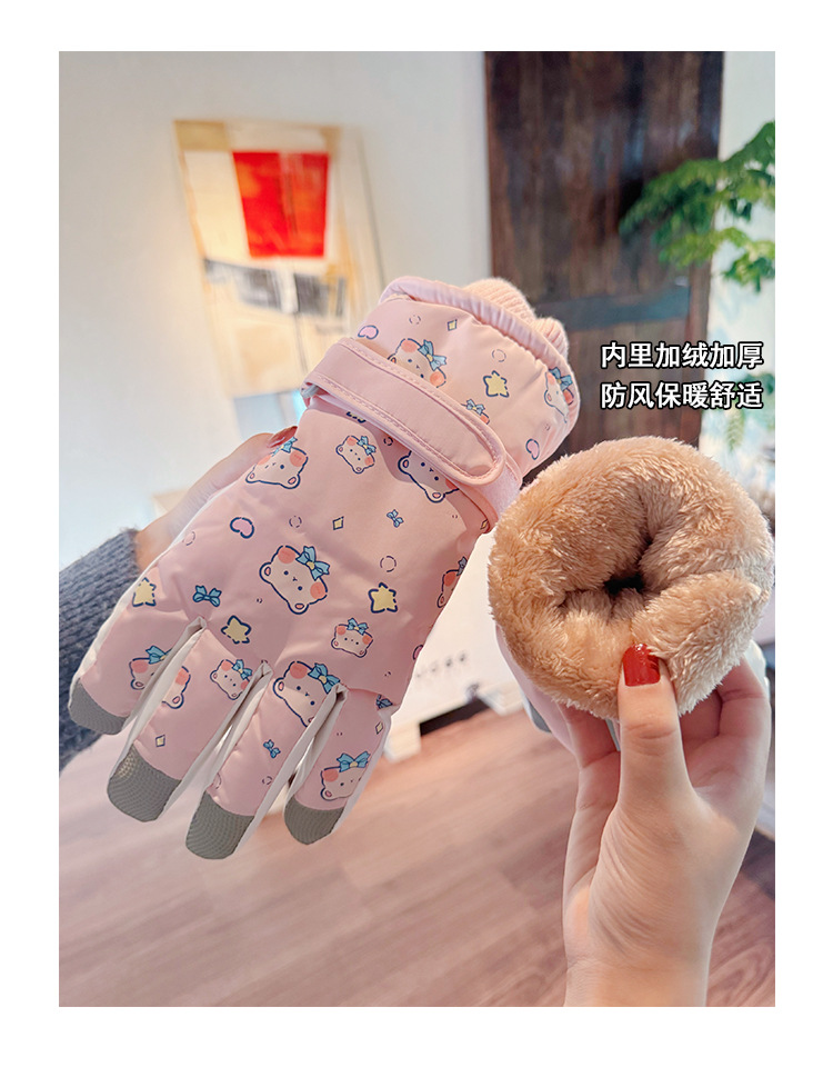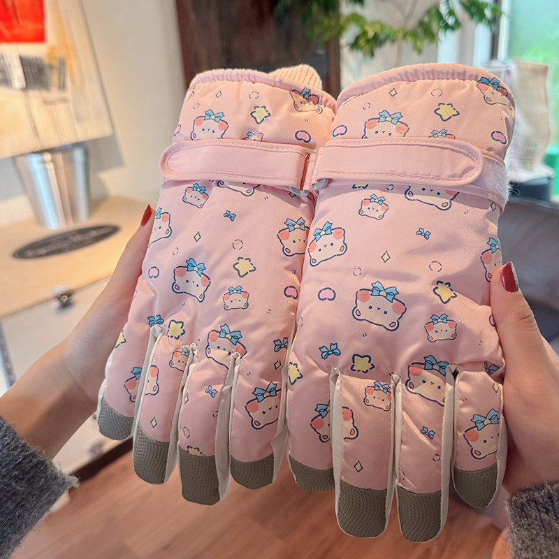 소녀의 마음 귀여운 스키 장갑 여성의 겨울 핑크 어린이 기모 두꺼운 손가락 터치 스크린 방풍 및 방탄 승마스토어 가기