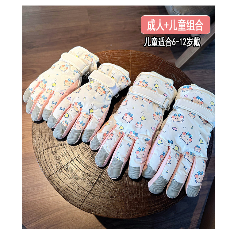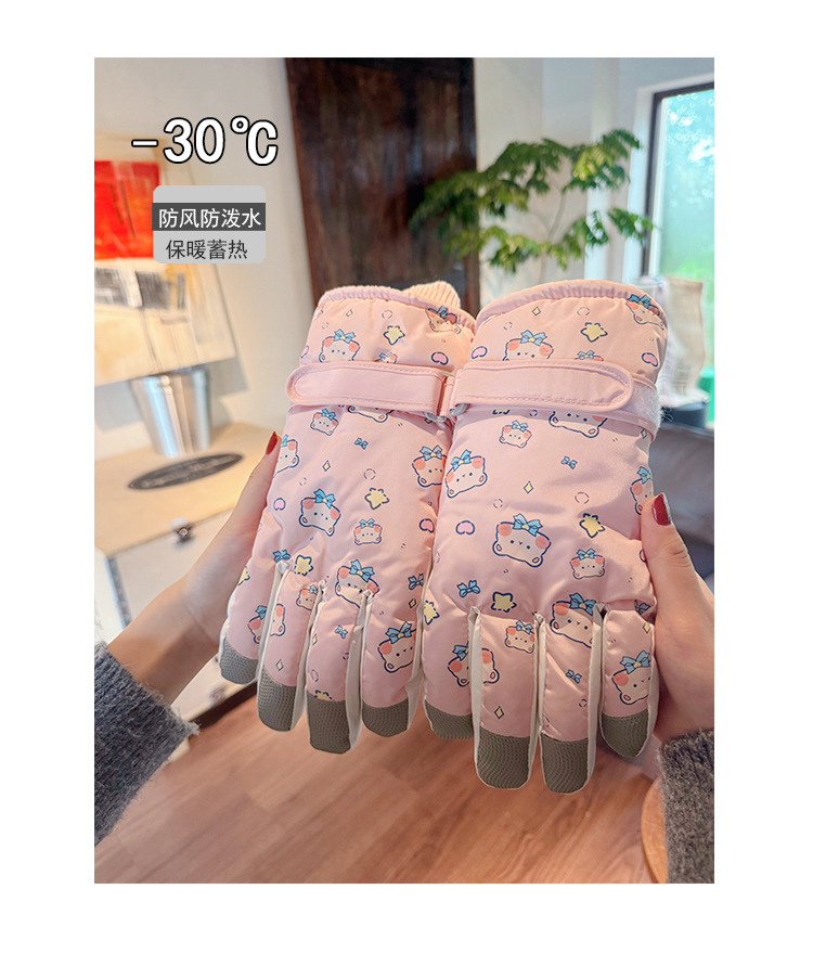 소녀의 마음 귀여운 스키 장갑 여성의 겨울 핑크 어린이 기모 두꺼운 손가락 터치 스크린 방풍 및 방탄 승마