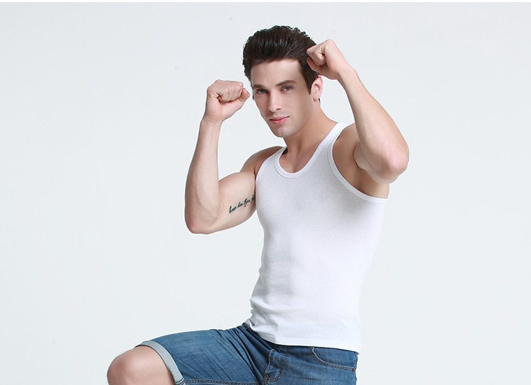 여름 새로운 남성용 코튼 라운드 넥 스포츠베이스 조끼 피트니스 조끼 슬림 I 자형 조끼 도매스토어 가기