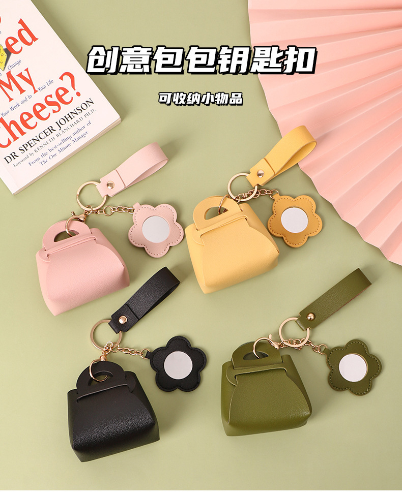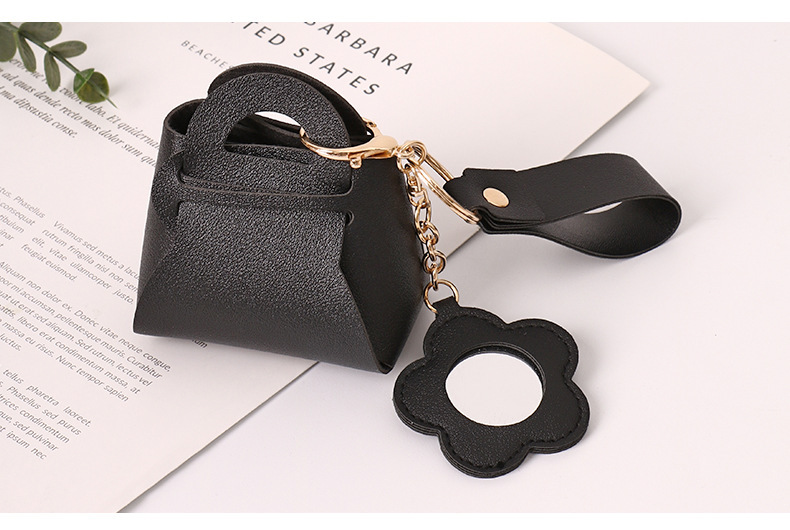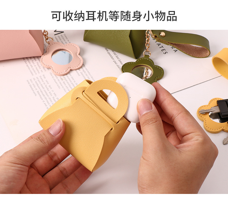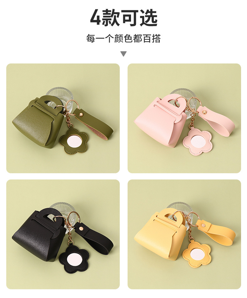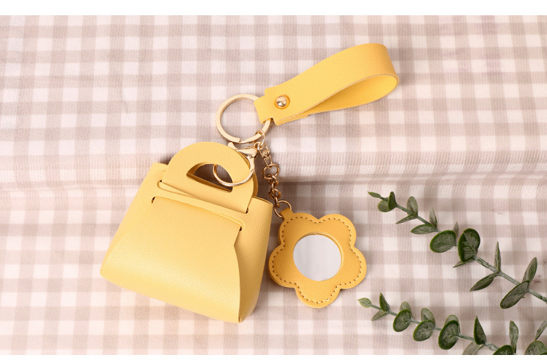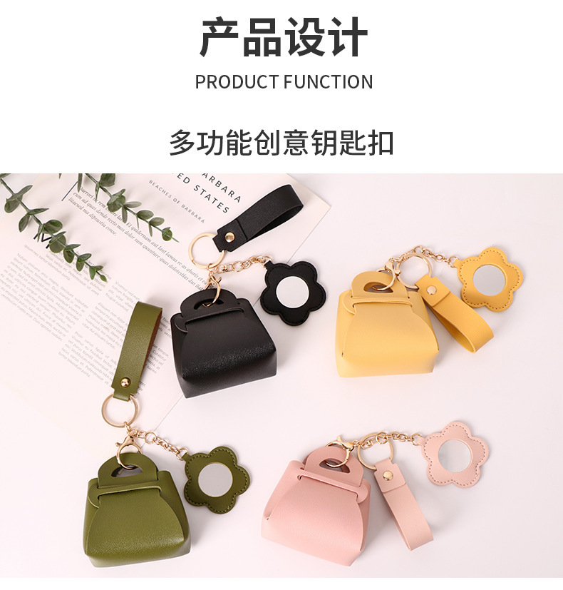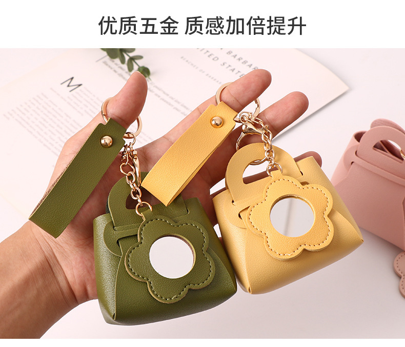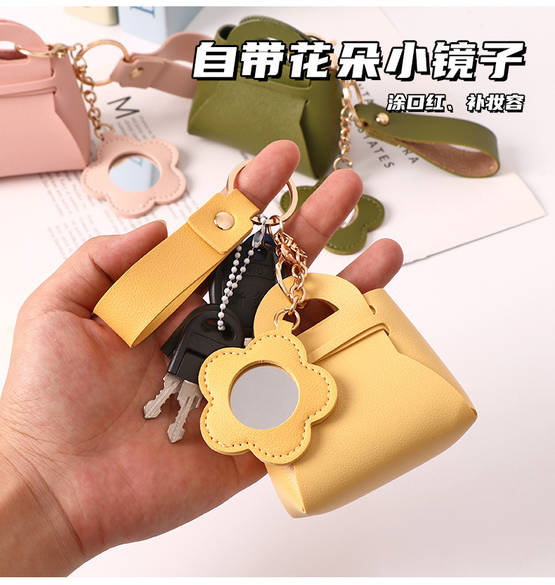 한국 창조적 인 PU 가방 키 체인 단색 저장 작은 지갑 가죽 미니 거울 보관 작은 가방 펜던트스토어 가기