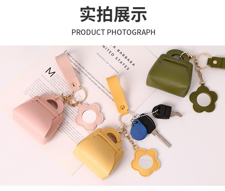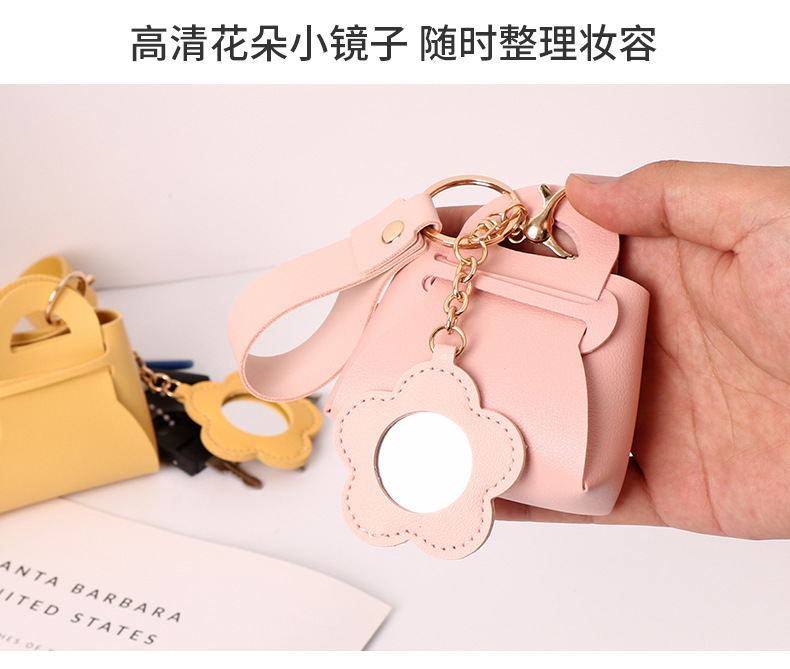 한국 창조적 인 PU 가방 키 체인 단색 저장 작은 지갑 가죽 미니 거울 보관 작은 가방 펜던트