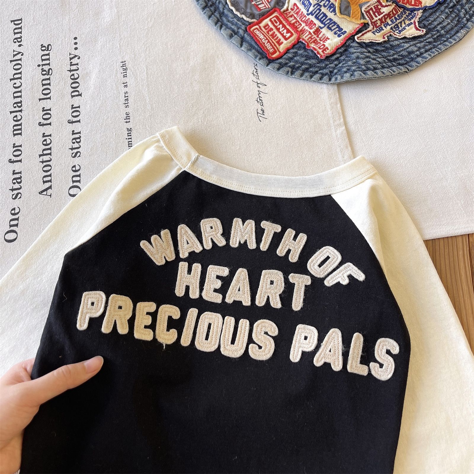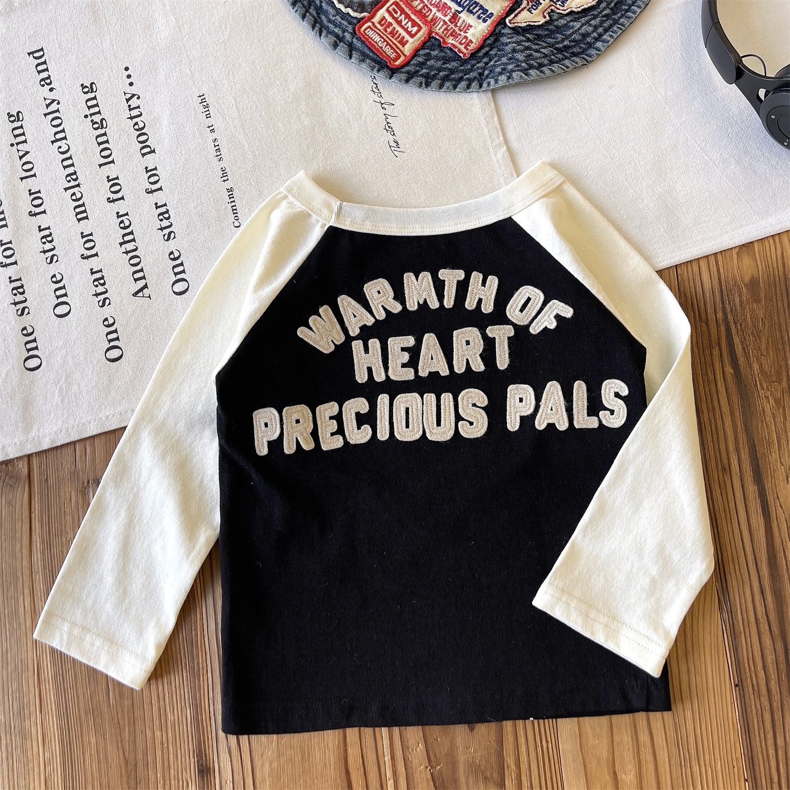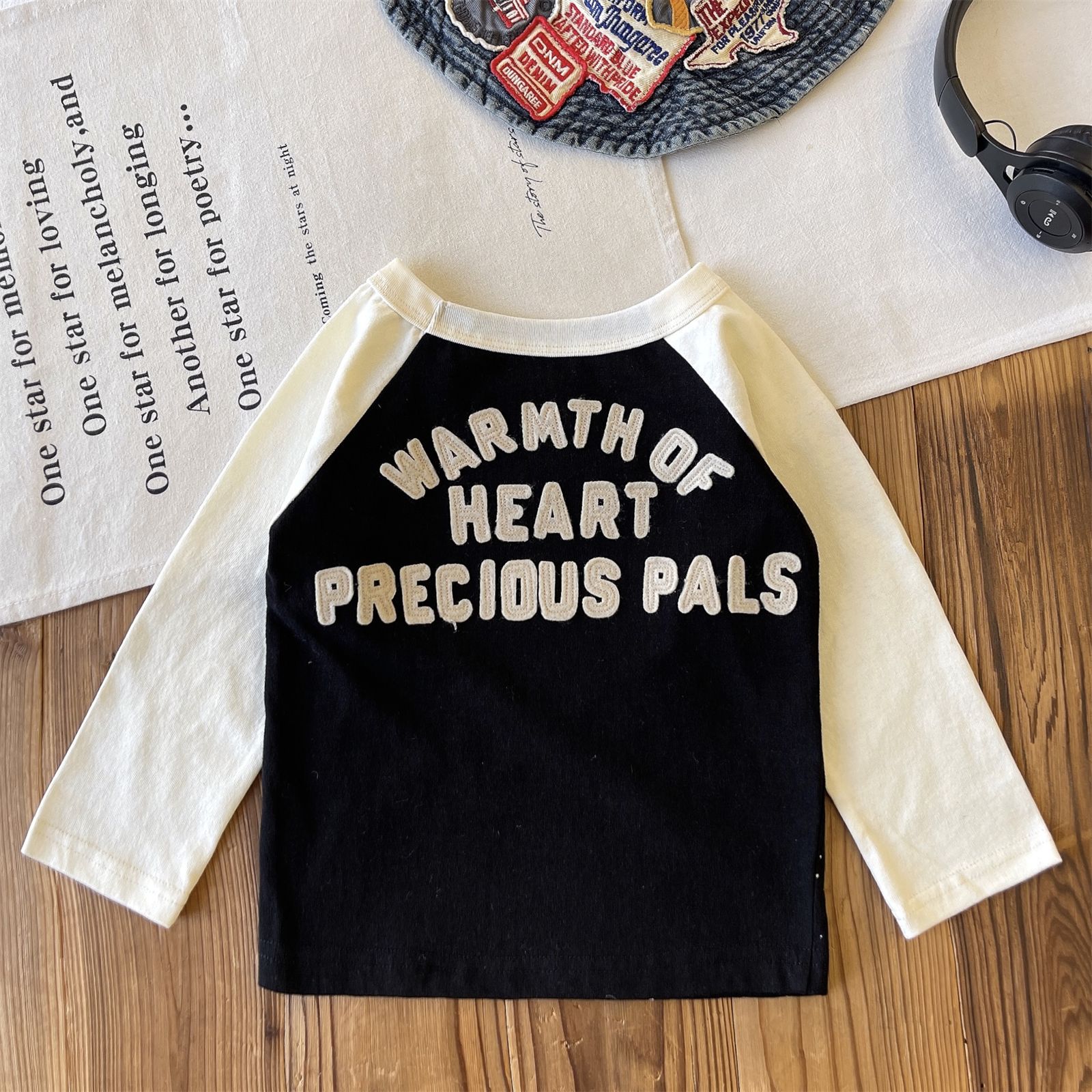 [재고] 일본 중세 유행 어린이 블랙 슈퍼 어린이 웃는 얼굴 라글란 소매 긴 소매 티셔츠 탑스토어 가기