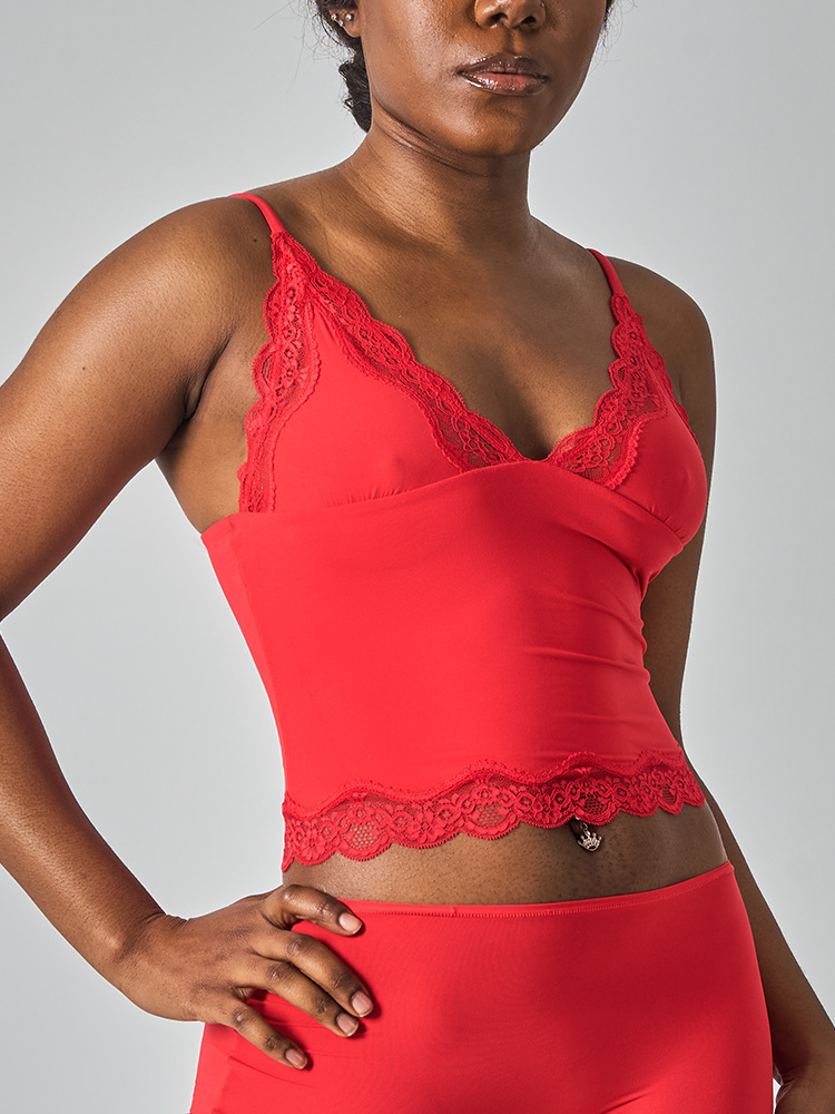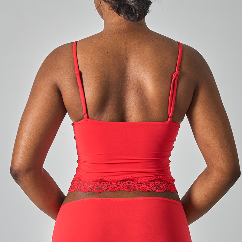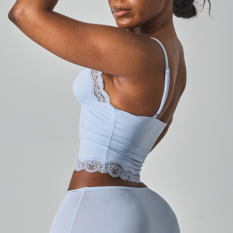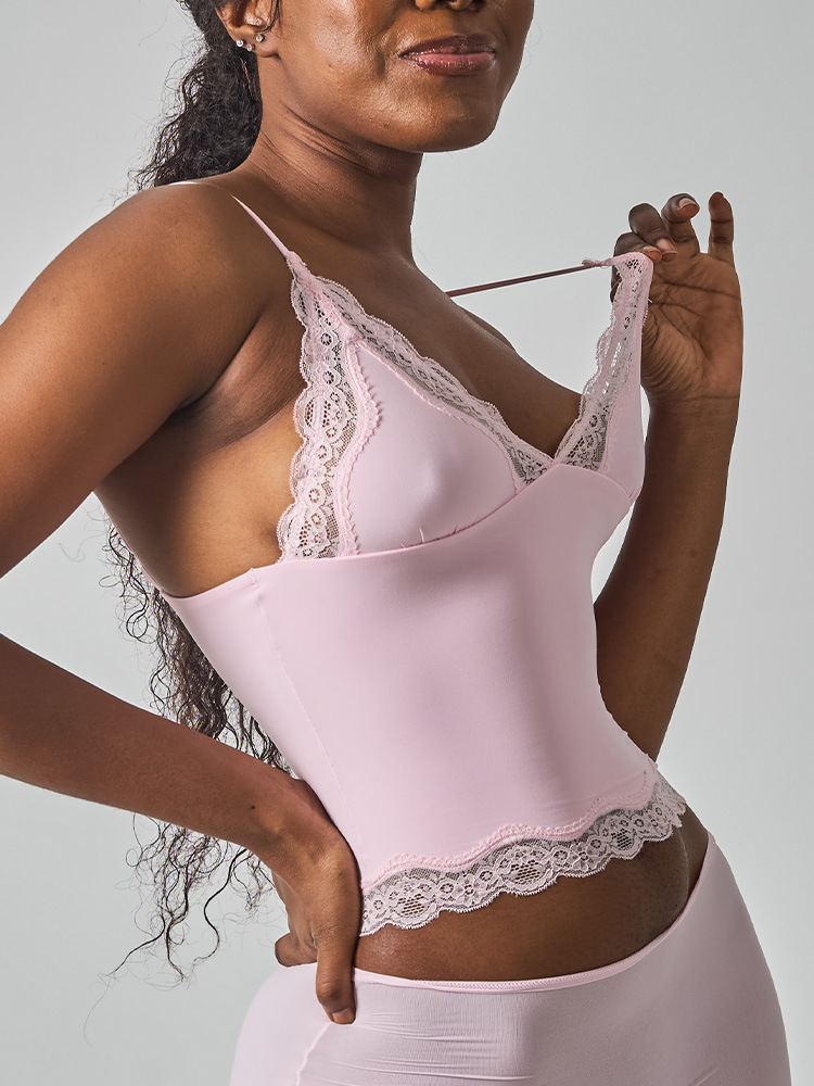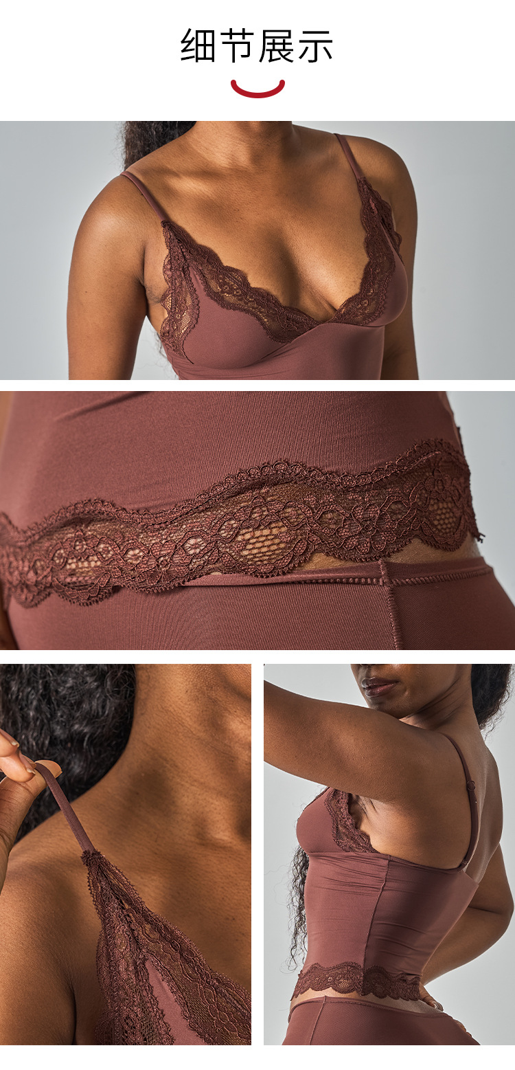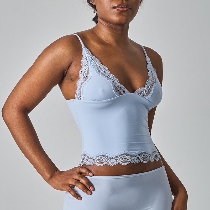 레이스탑 SK 섹시 레이스 딥V 노와이어 슬링탑 패셔너블한 이너웨어 섹시하고 편안한 여성스러운 스타일