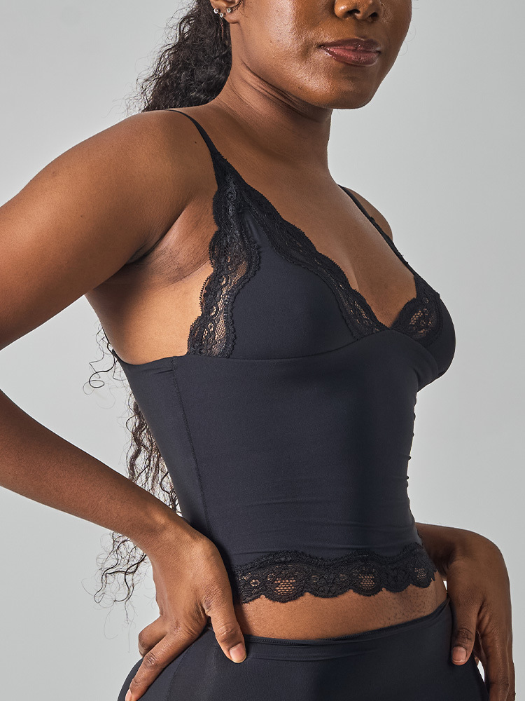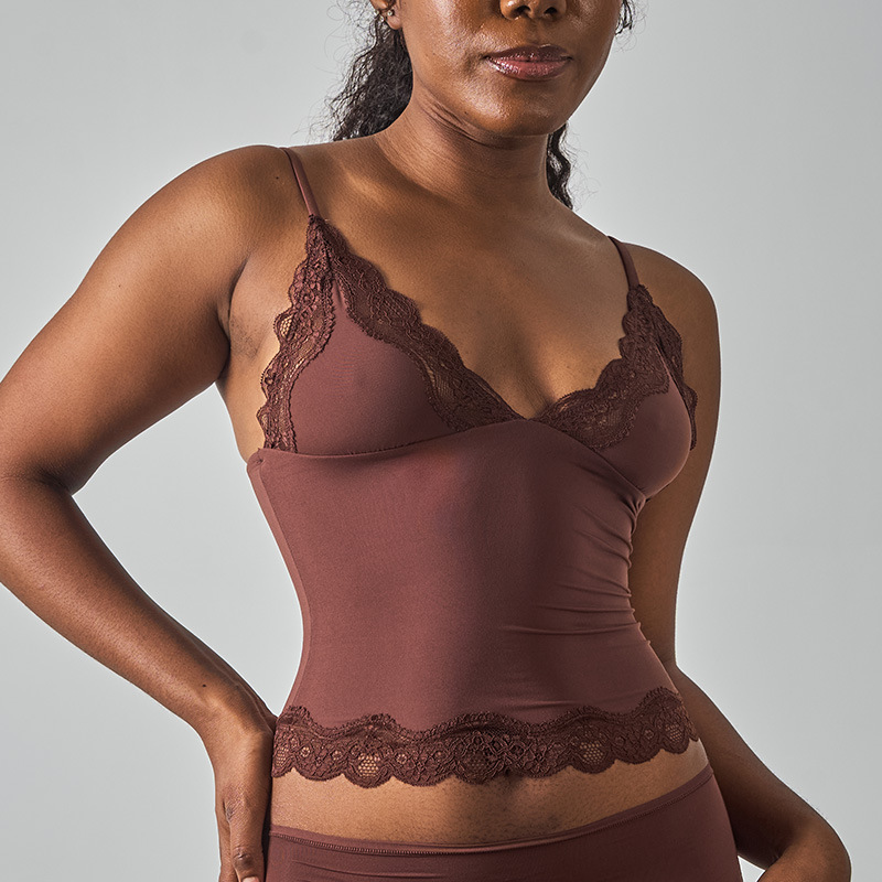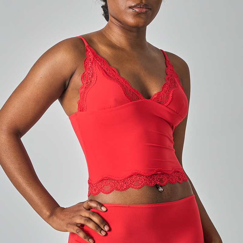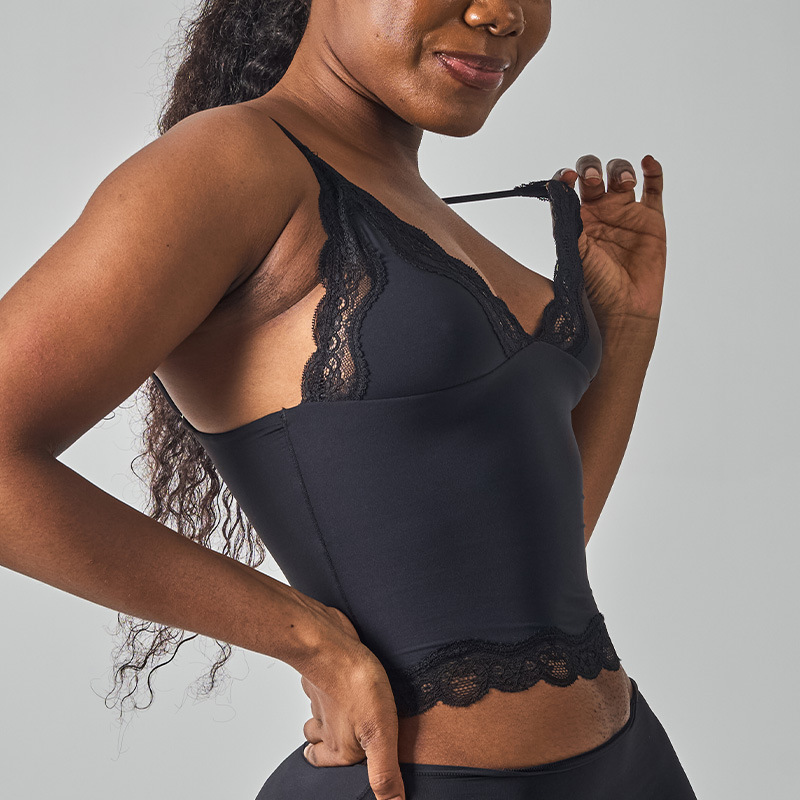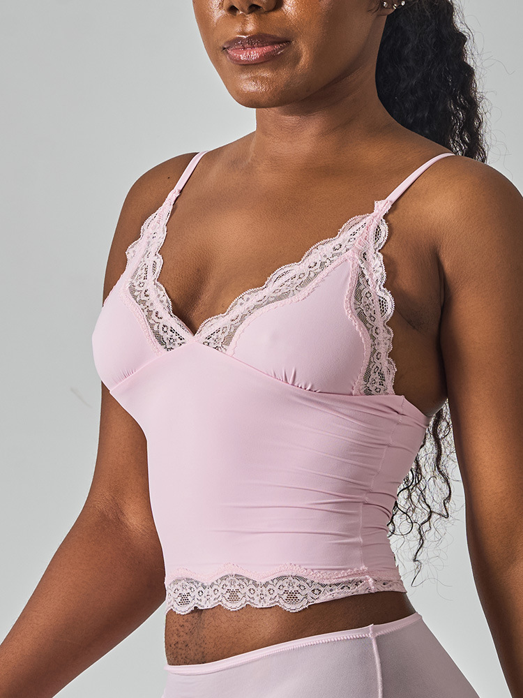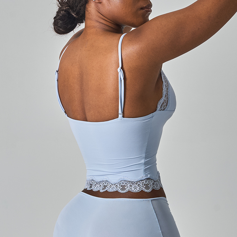 레이스탑 SK 섹시 레이스 딥V 노와이어 슬링탑 패셔너블한 이너웨어 섹시하고 편안한 여성스러운 스타일