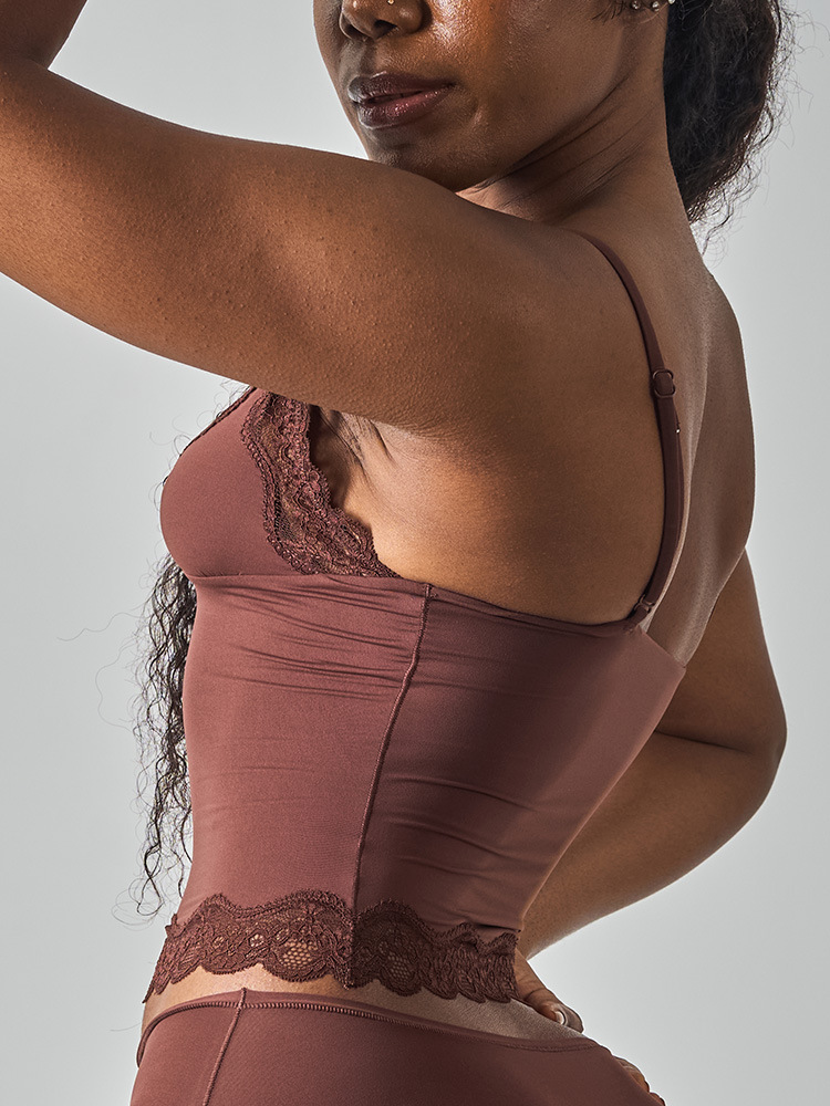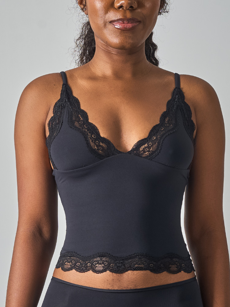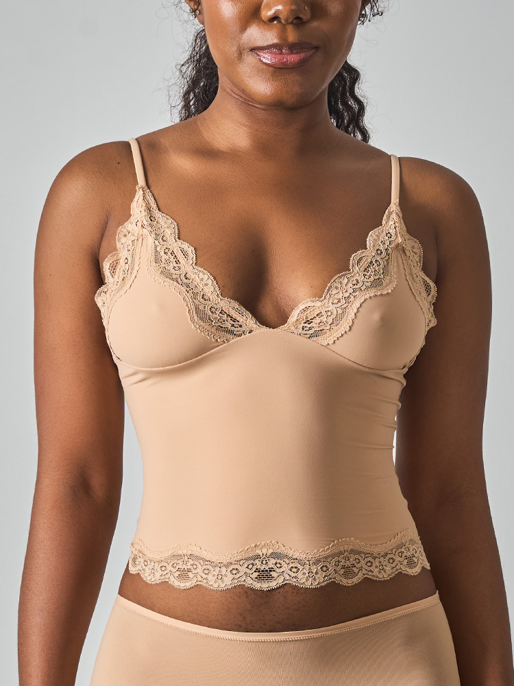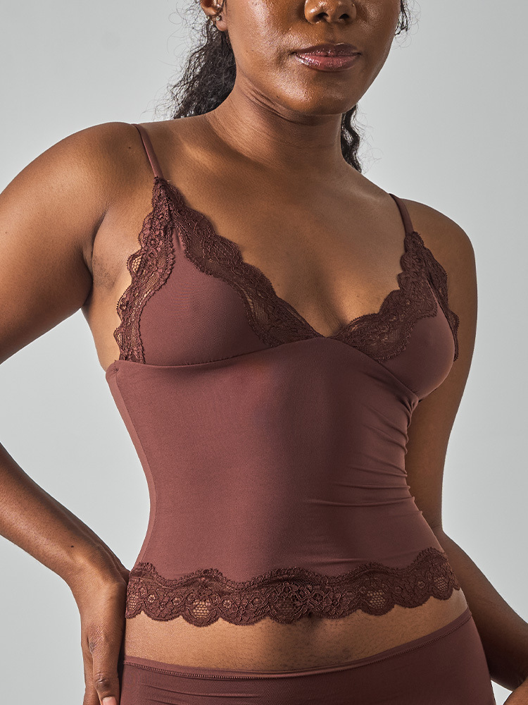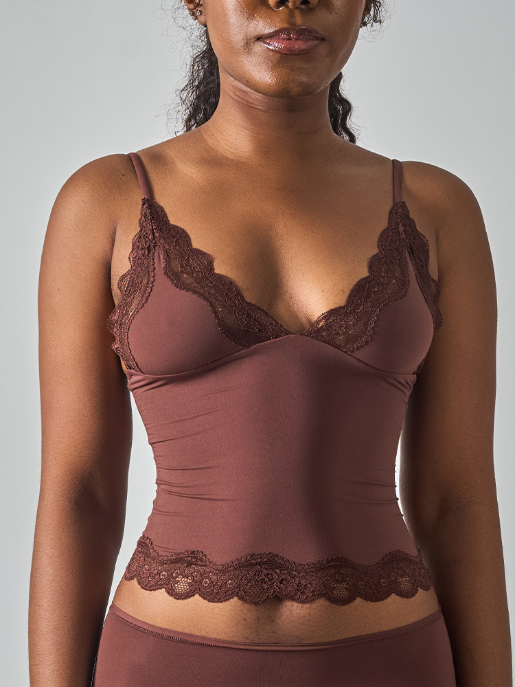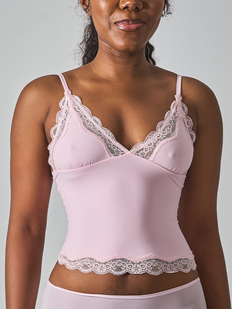 레이스탑 SK 섹시 레이스 딥V 노와이어 슬링탑 패셔너블한 이너웨어 섹시하고 편안한 여성스러운 스타일