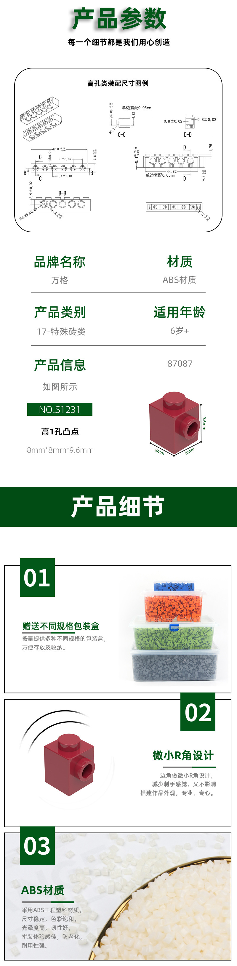 Wange 교육 장난감 작은 입자 국내 빌딩 블록 87087 조립 부품 높은 1 홀 범프 moc 배치 호환스토어 가기