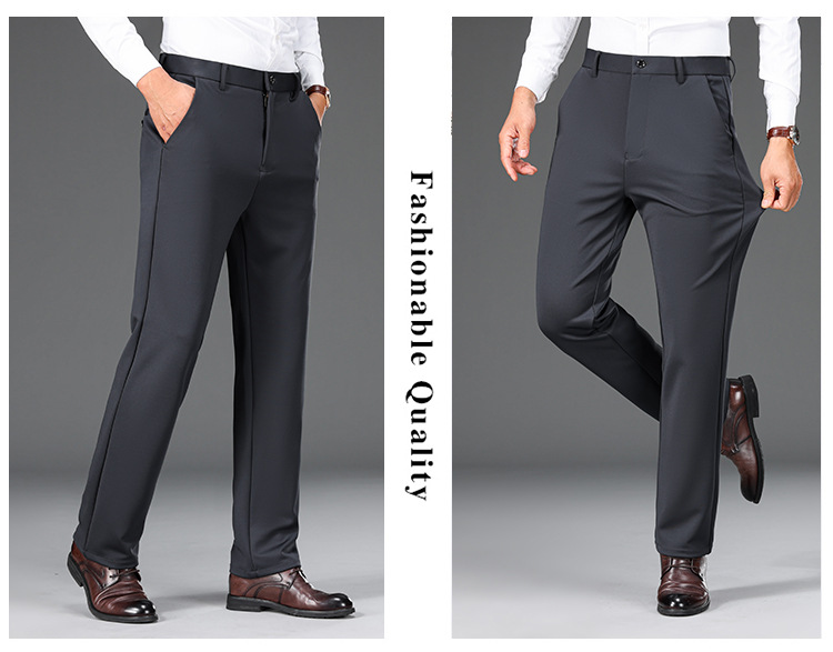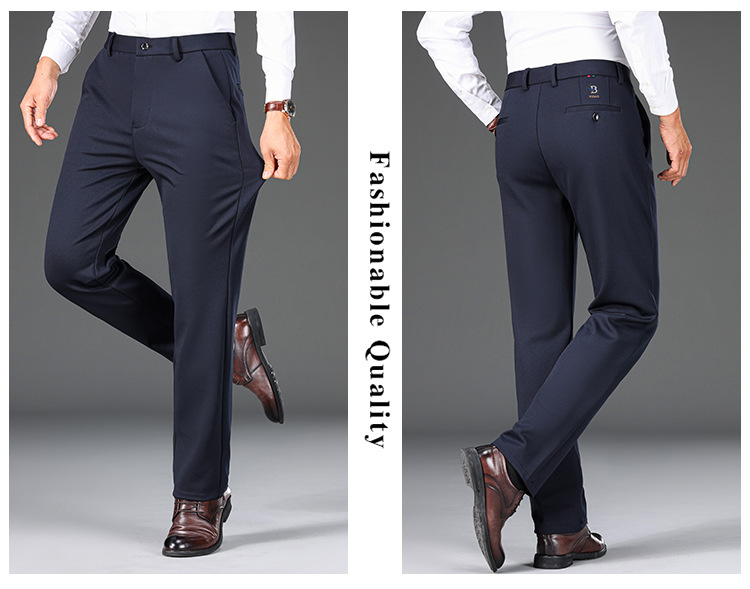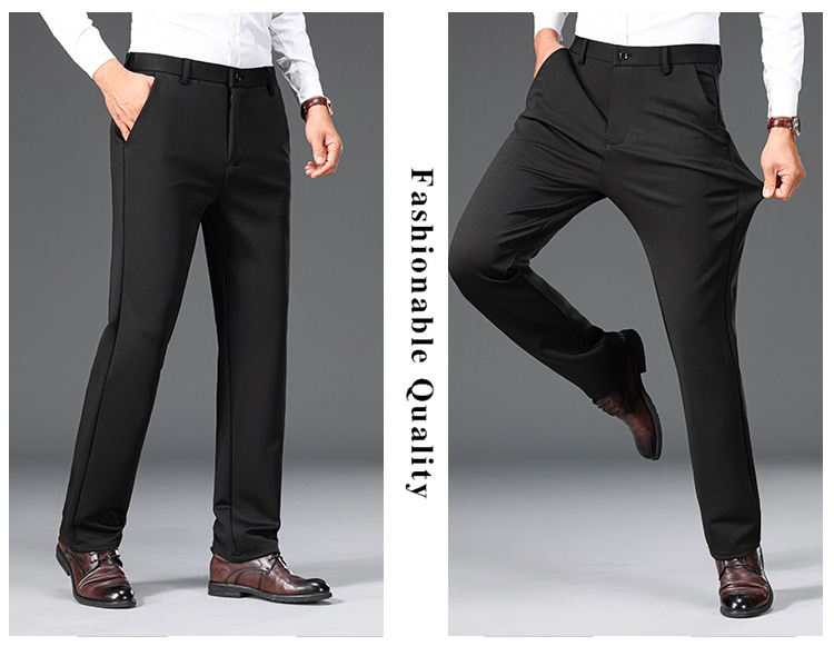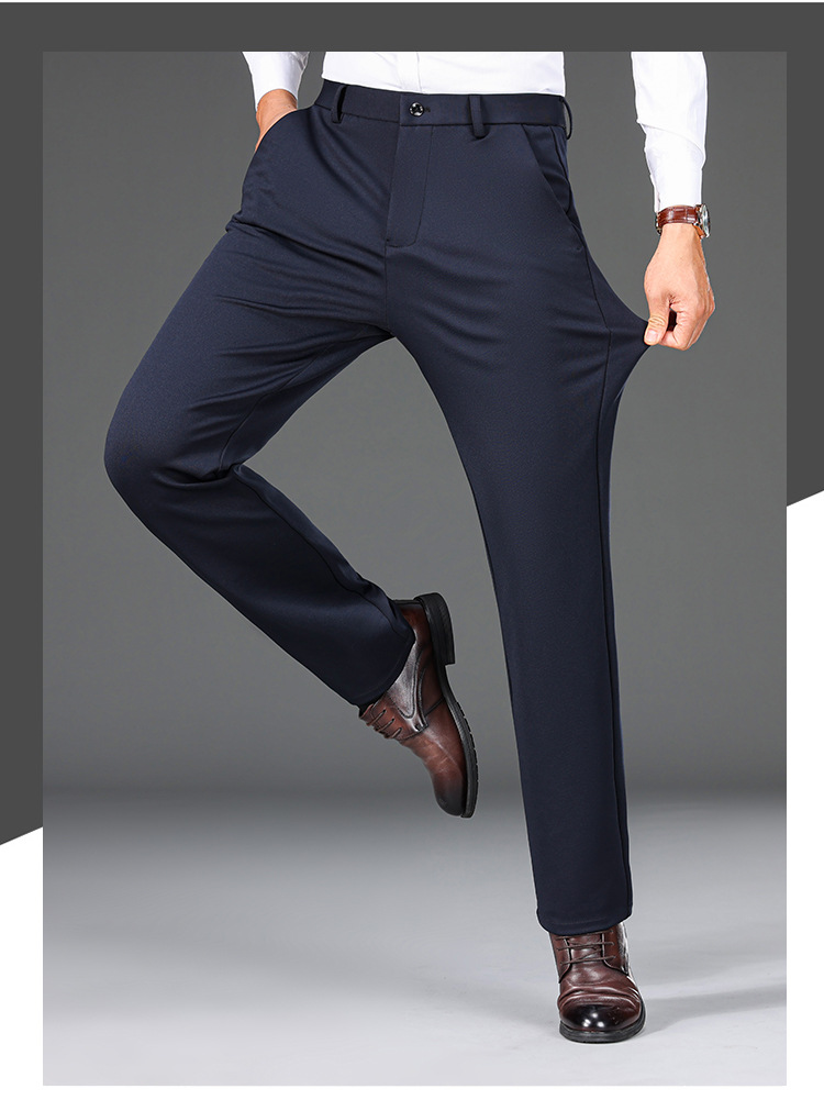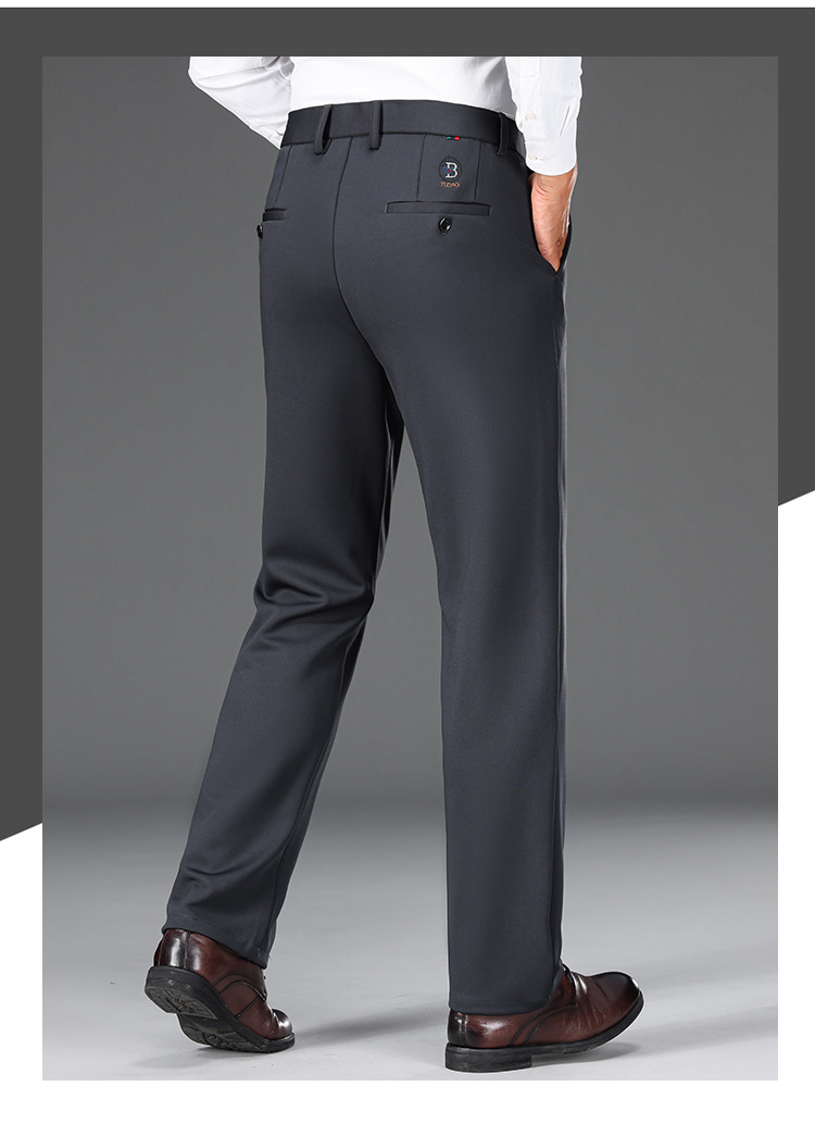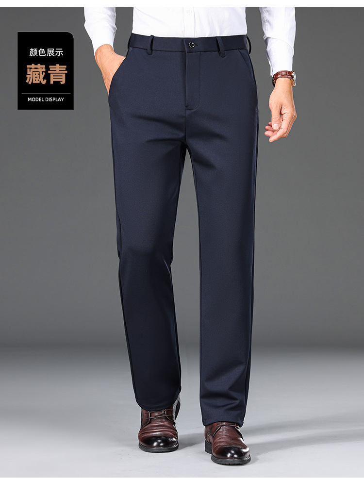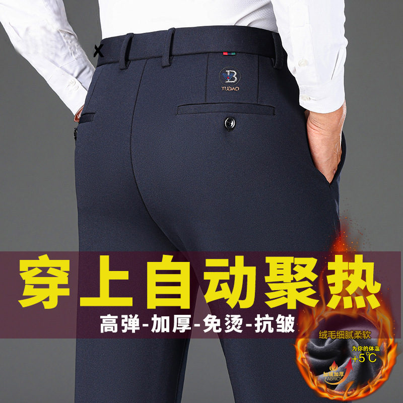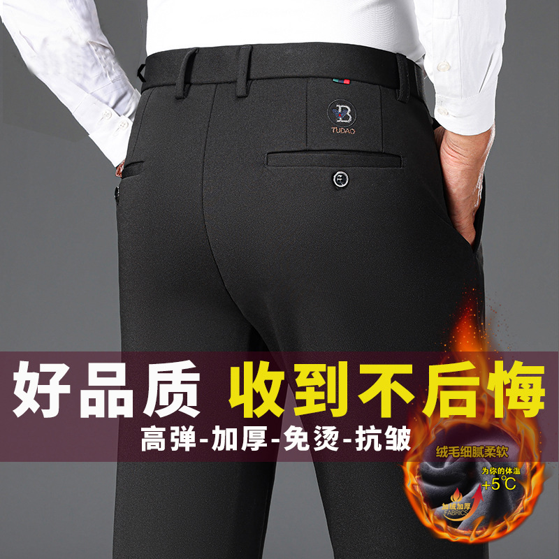 가을과 겨울 두꺼운 높은 탄성 남성 캐주얼 바지 하이 엔드 비 다림질 스트레이트 바지 중년 느슨한 바지스토어 가기