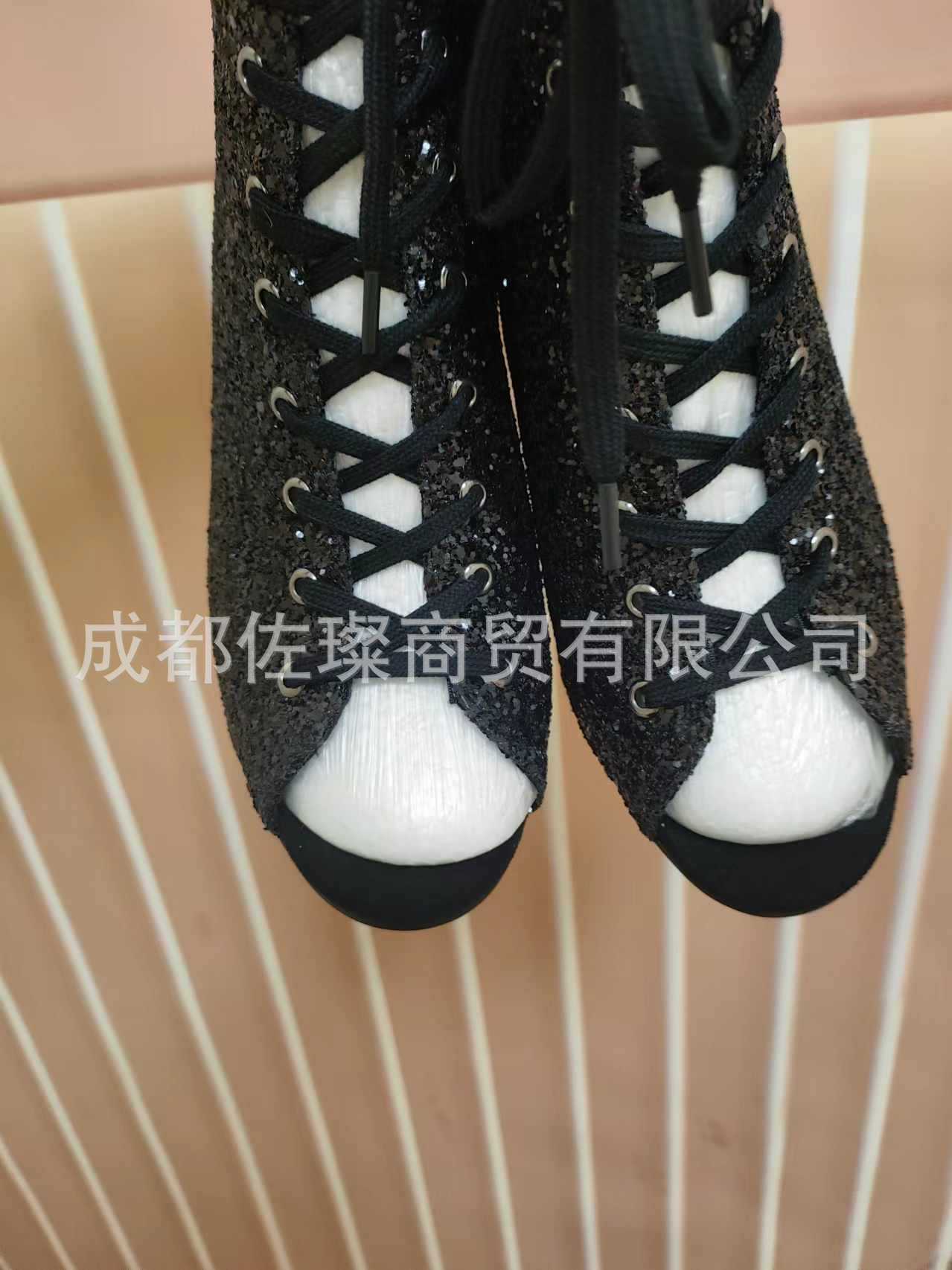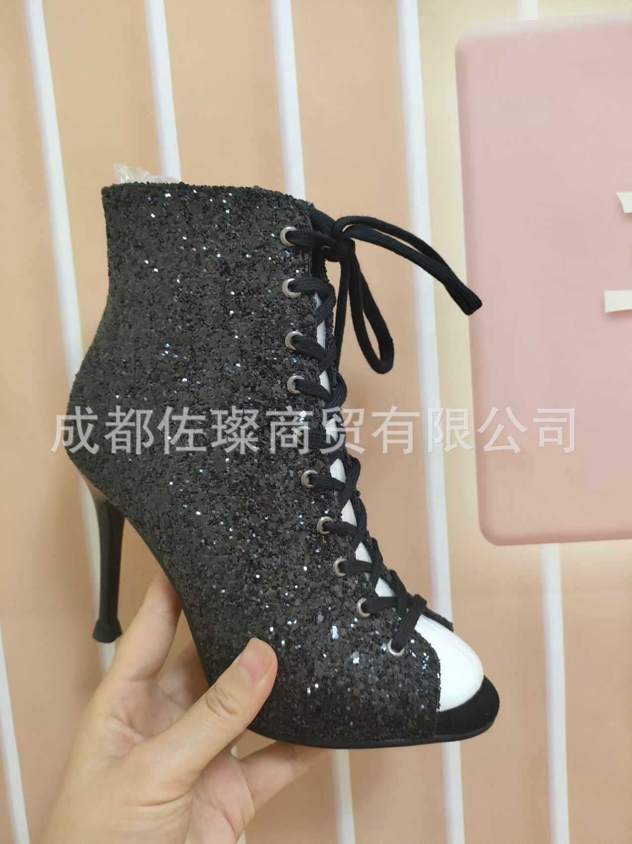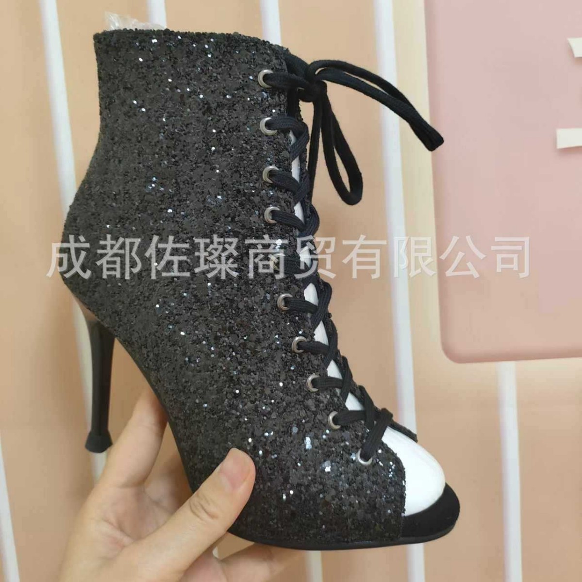 새로운 유럽과 미국의 스타일 레이스 업 피쉬 토 샌들 스퀸 천 스틸레토 힐 슈퍼 힐 할로우 쇼트 부츠 재즈 댄스 하이힐