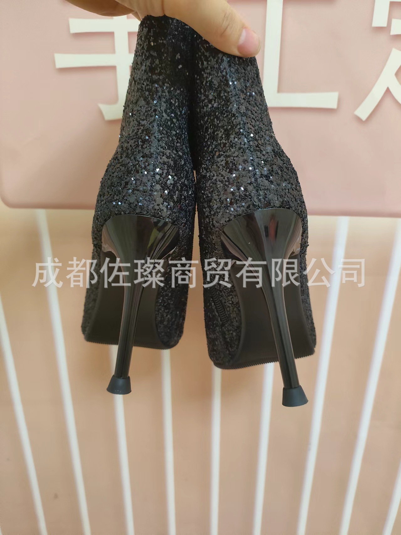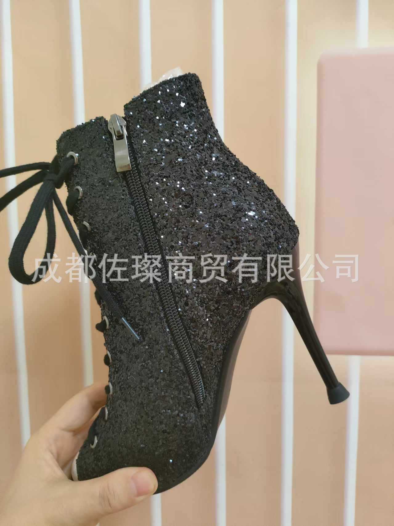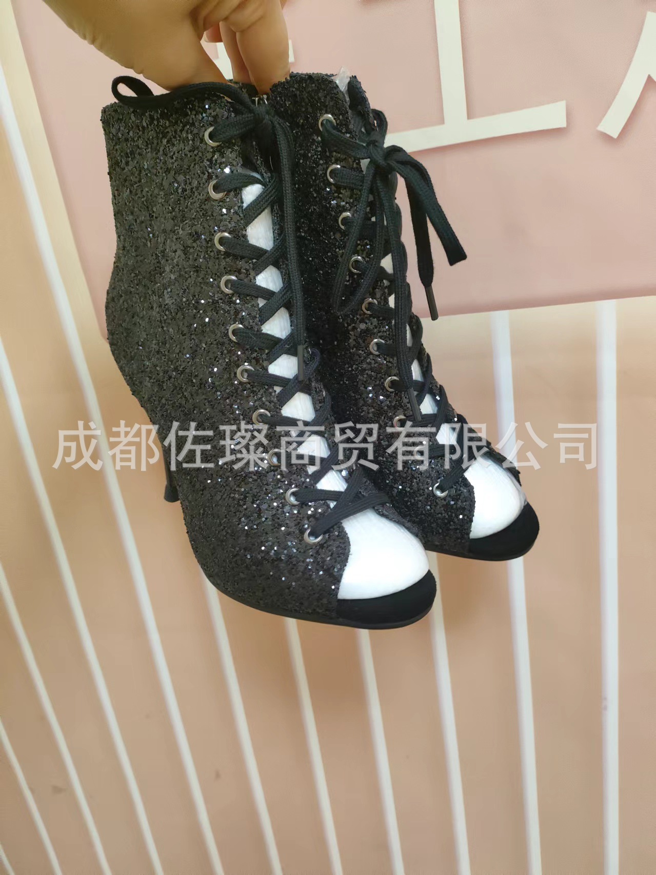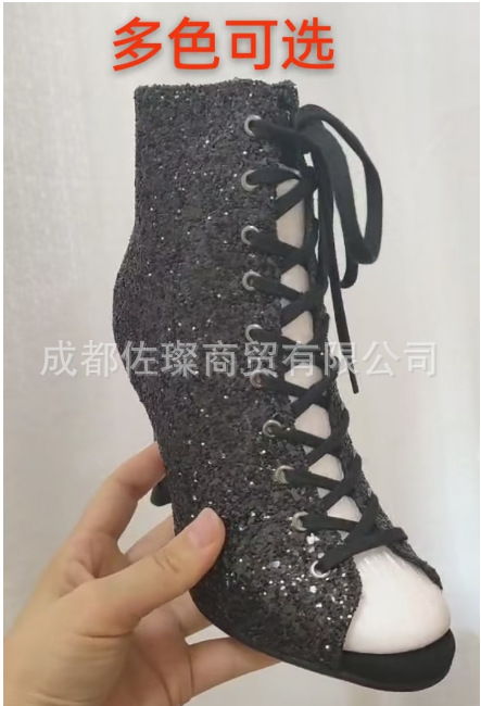 새로운 유럽과 미국의 스타일 레이스 업 피쉬 토 샌들 스퀸 천 스틸레토 힐 슈퍼 힐 할로우 쇼트 부츠 재즈 댄스 하이힐