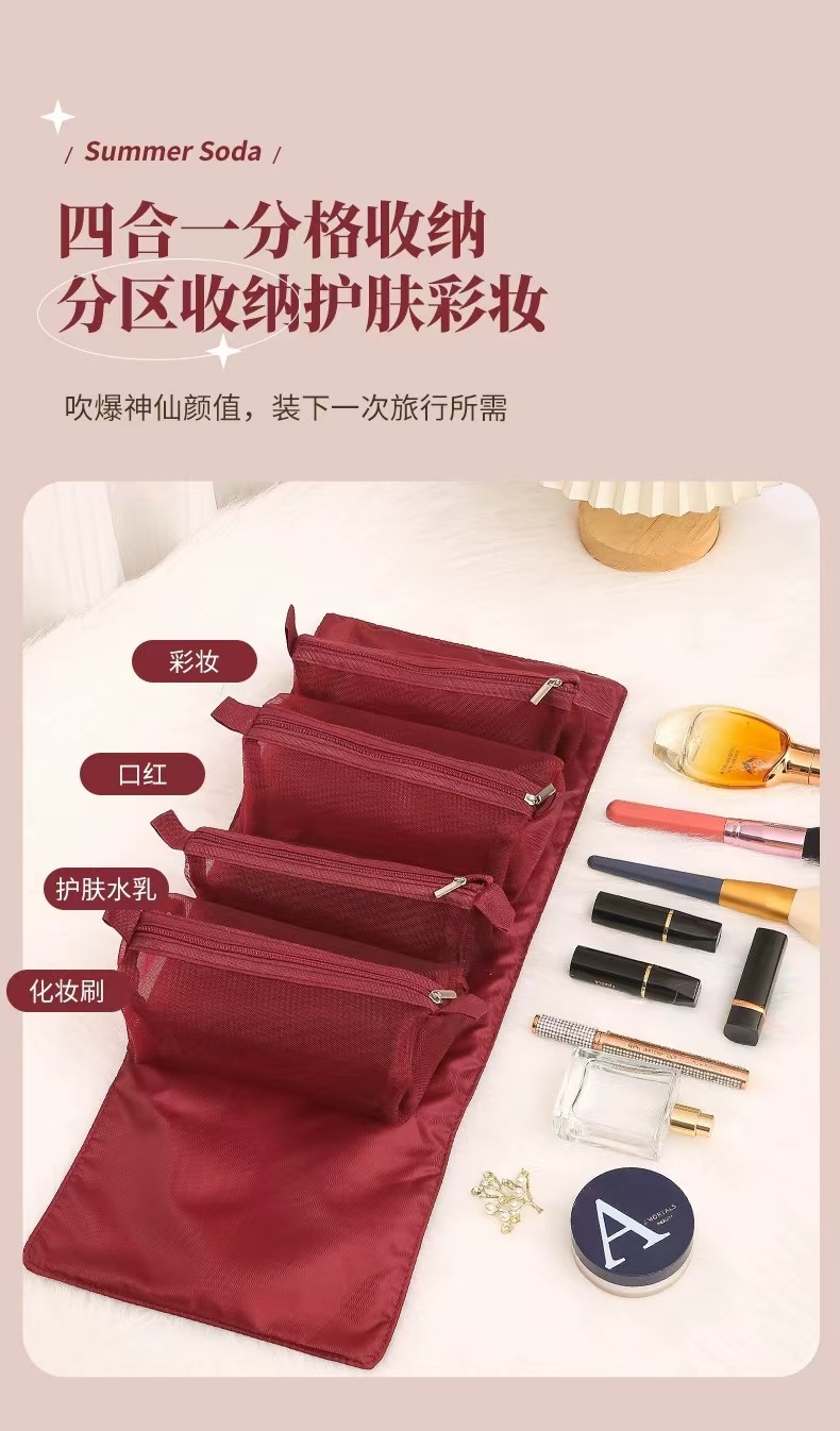 새로운 화장품 가방 4 대 1 여행 휴대용 다기능 대용량 탈착식 세척 가방