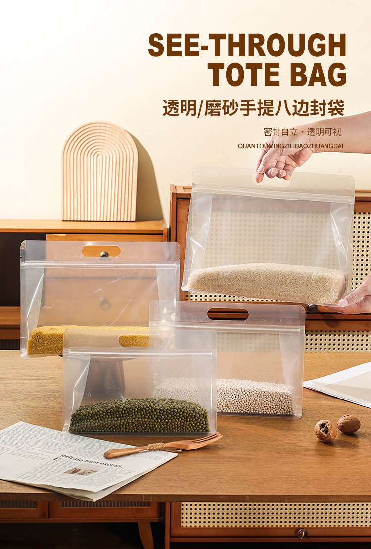 팔각형 자립형 투명 반투명 지퍼백 스낵 쌀 베이킹 휴대용 밀봉백 식품 포장백스토어 가기