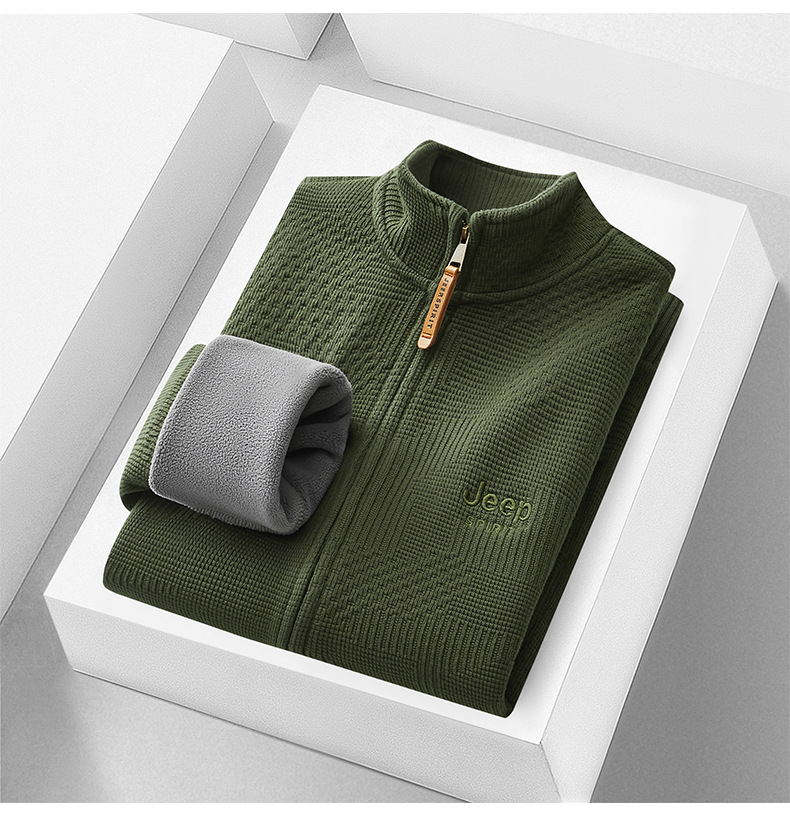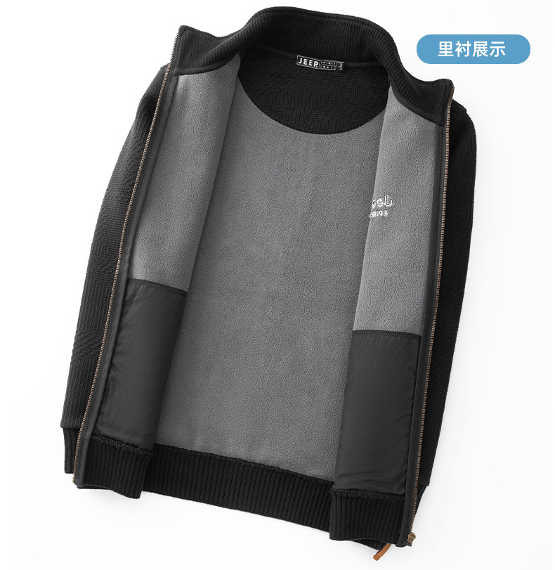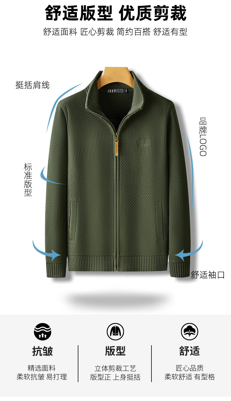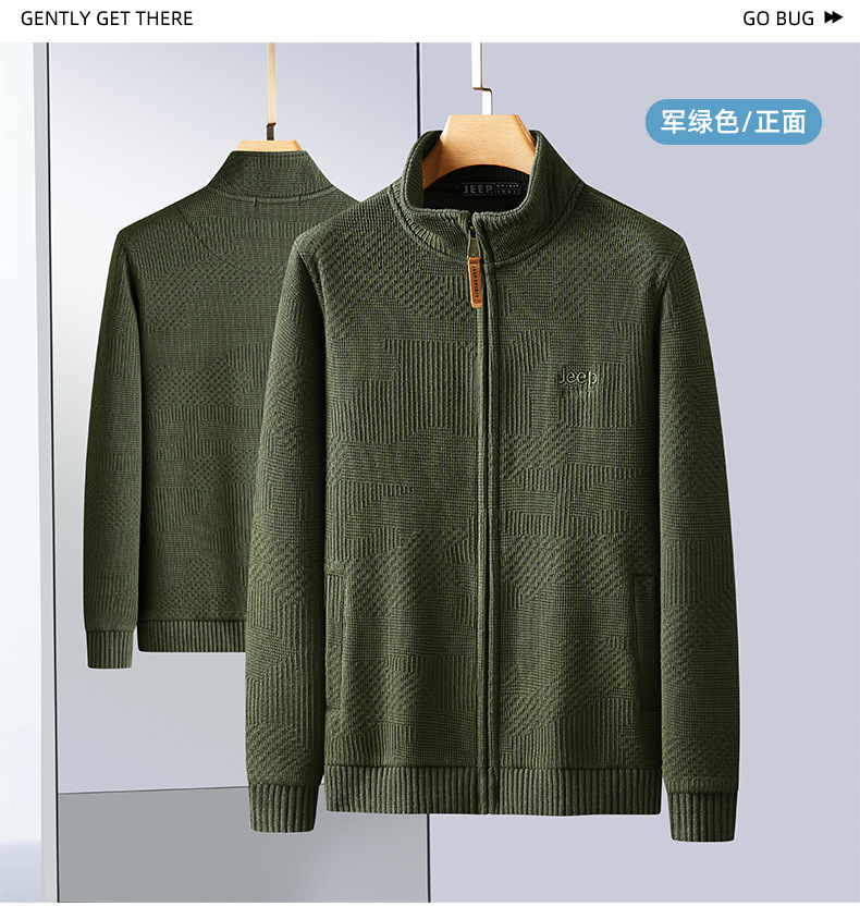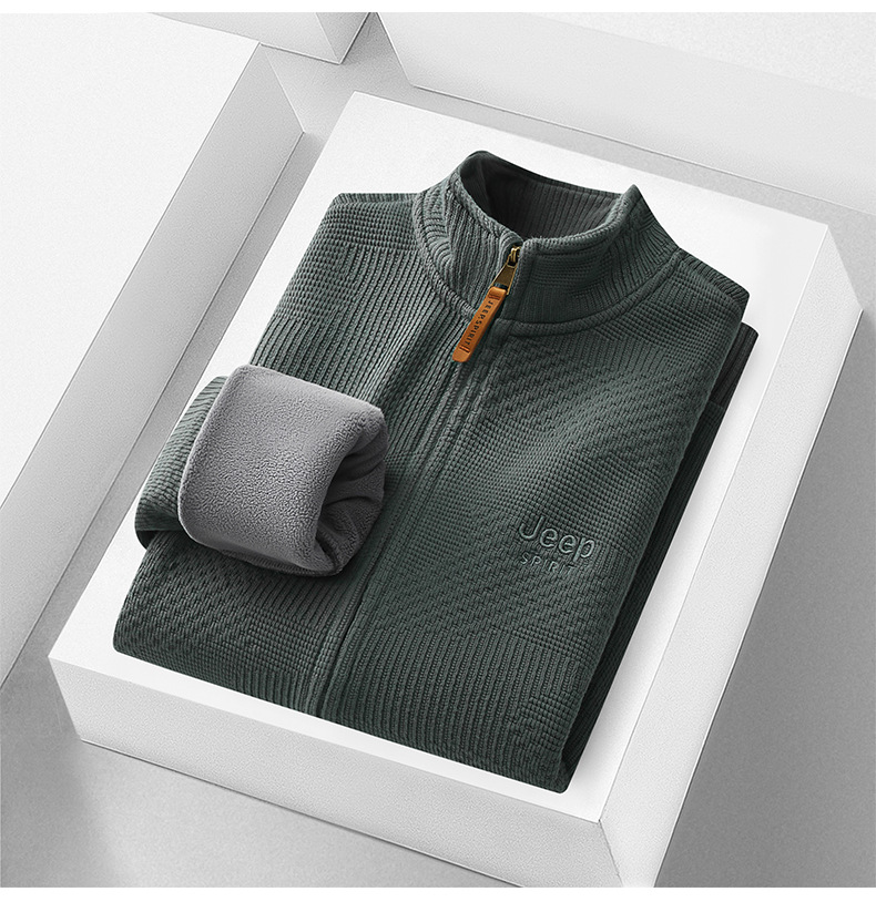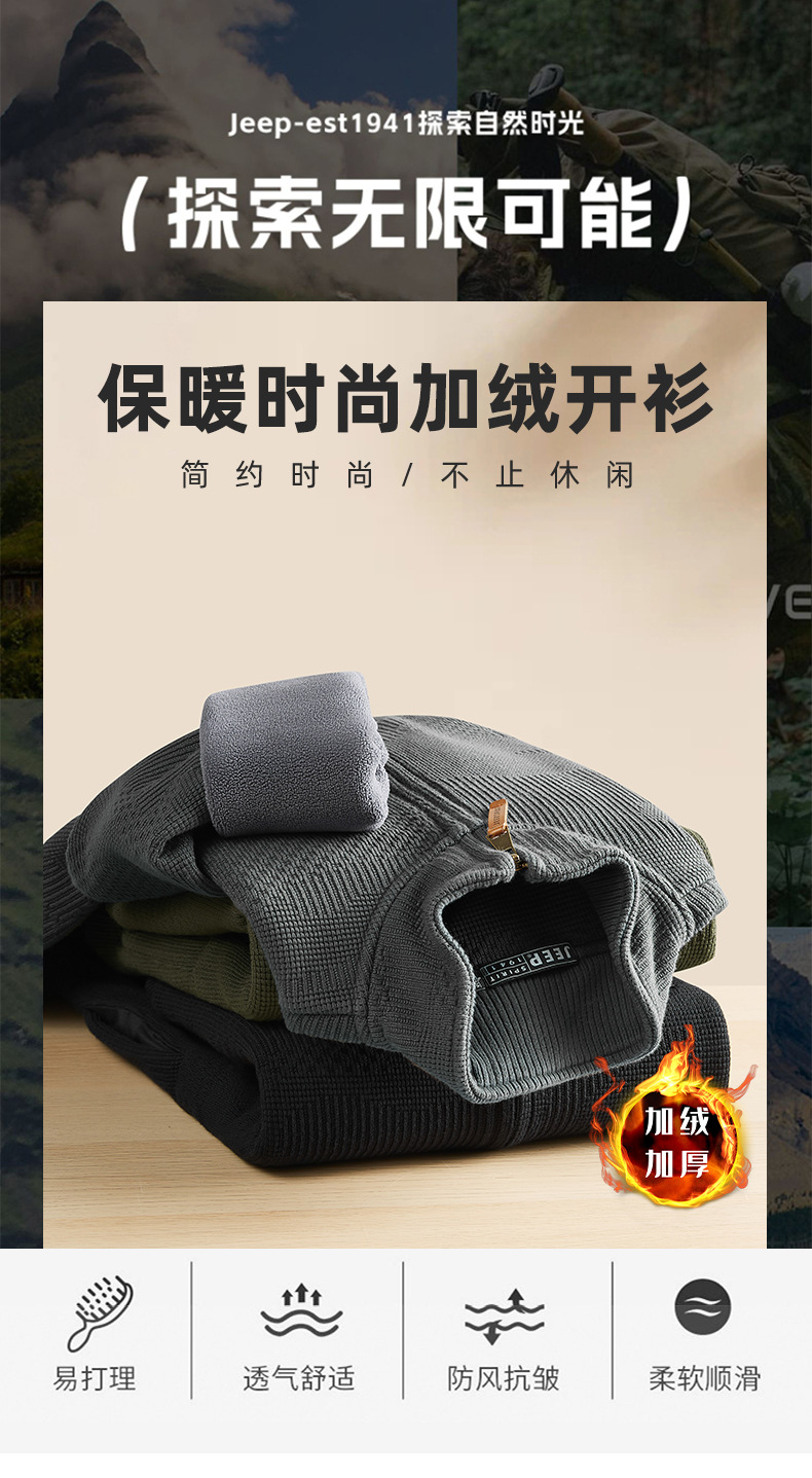 JEEP SPIRIT 2024 새로운 남자 따뜻한 기모 두꺼운 카디건 스웨터 주름 통기성 스웨터