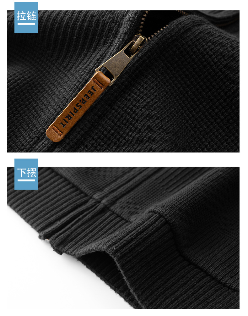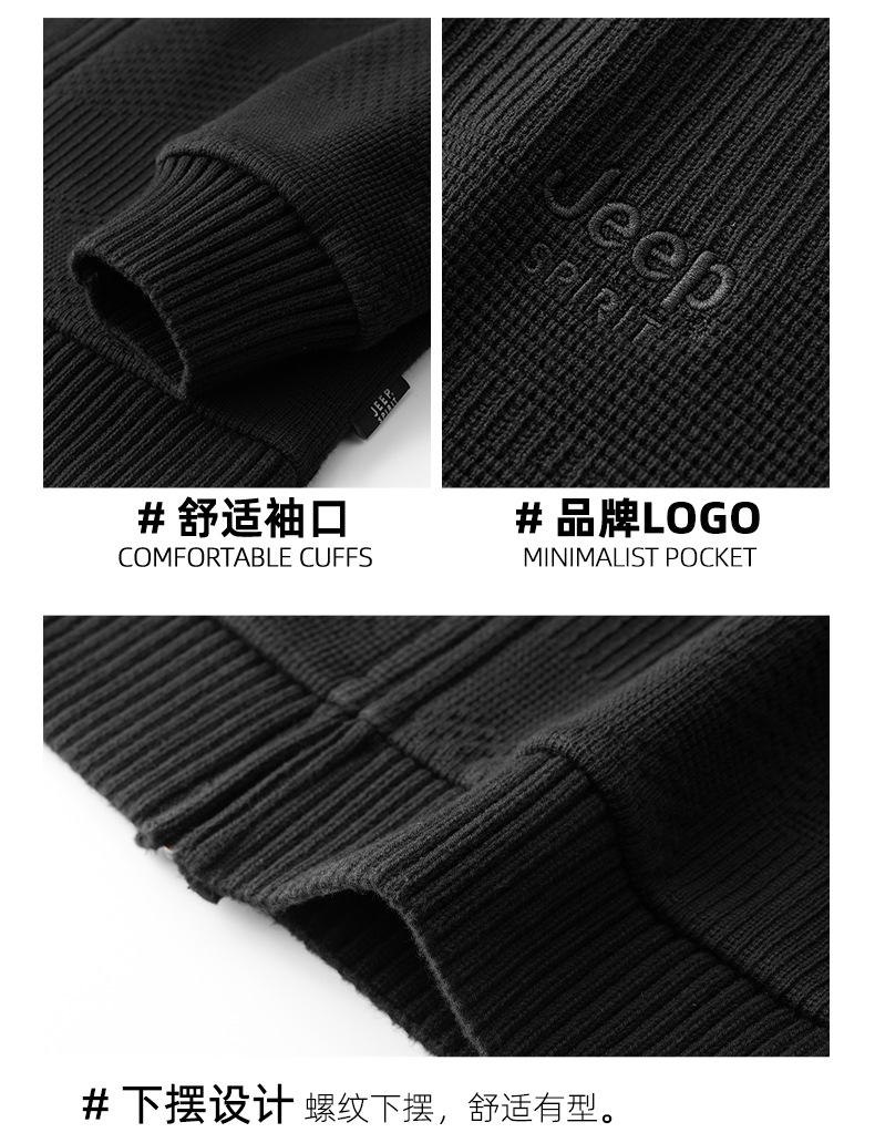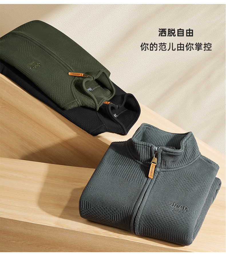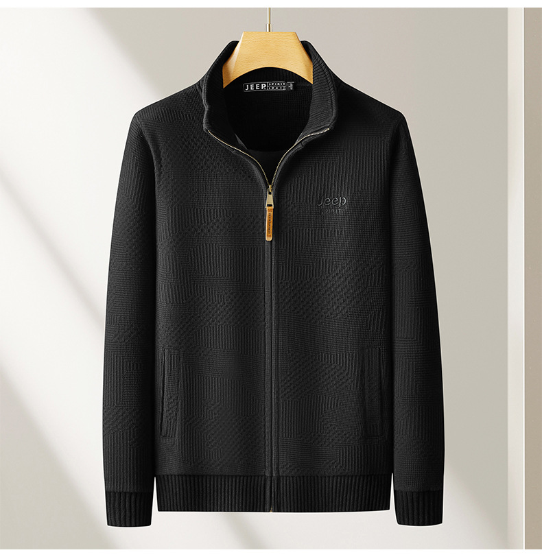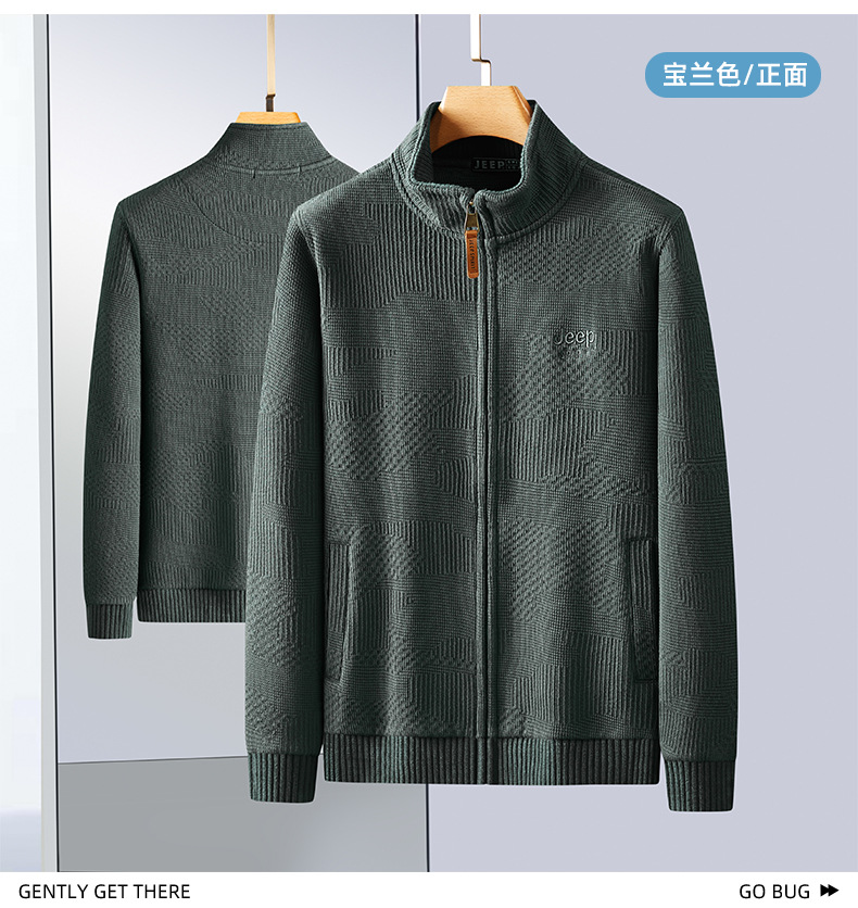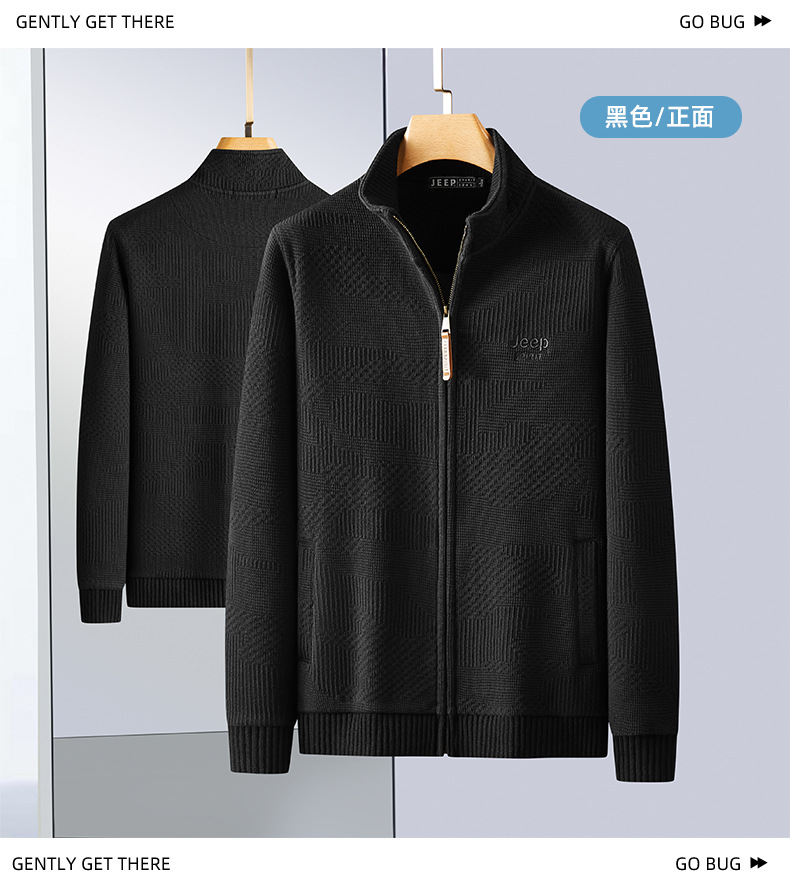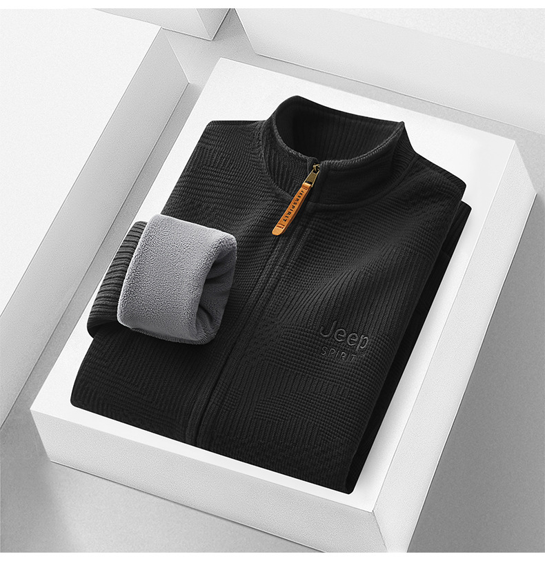 JEEP SPIRIT 2024 새로운 남자 따뜻한 기모 두꺼운 카디건 스웨터 주름 통기성 스웨터