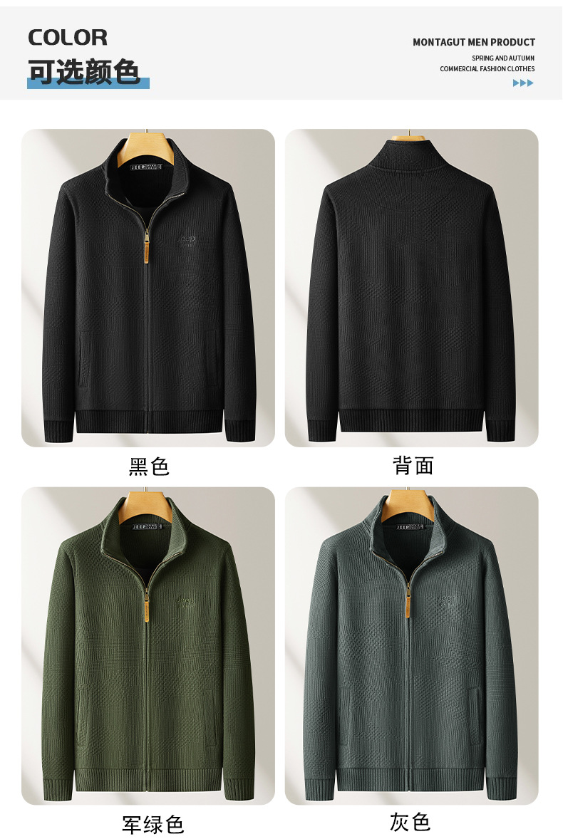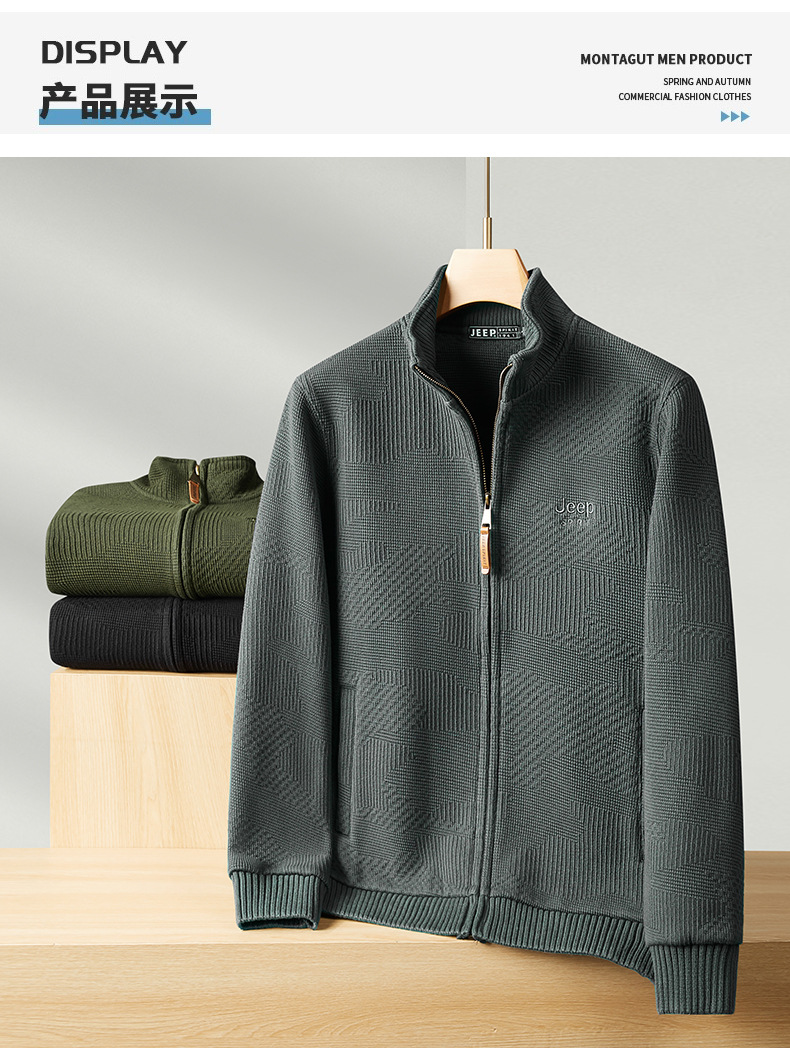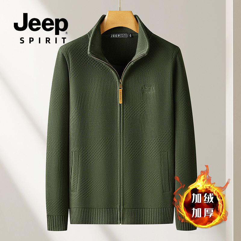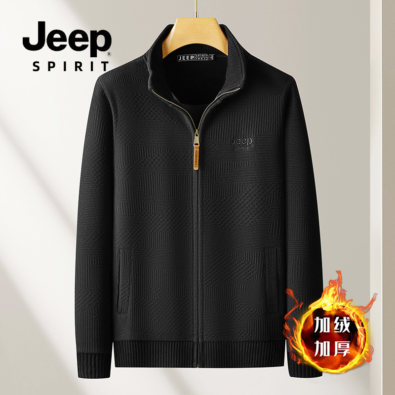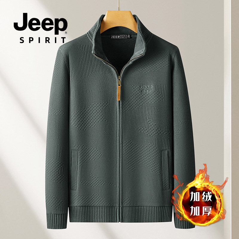JEEP SPIRIT 2024 새로운 남자 따뜻한 기모 두꺼운 카디건 스웨터 주름 통기성 스웨터스토어 가기