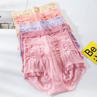 跨境舒适高腰收腹提臀无缝内裤女蕾丝边包臀大码胖MM三角妈妈短裤RMB:5.49