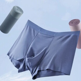 跨境一片式无缝无痕无感艾草抗菌大码平角裤男裸感莫代尔男士内裤RMB:10.99