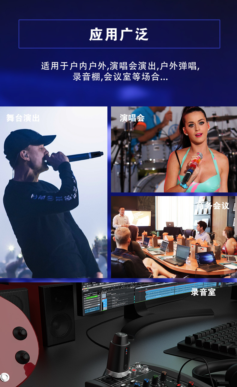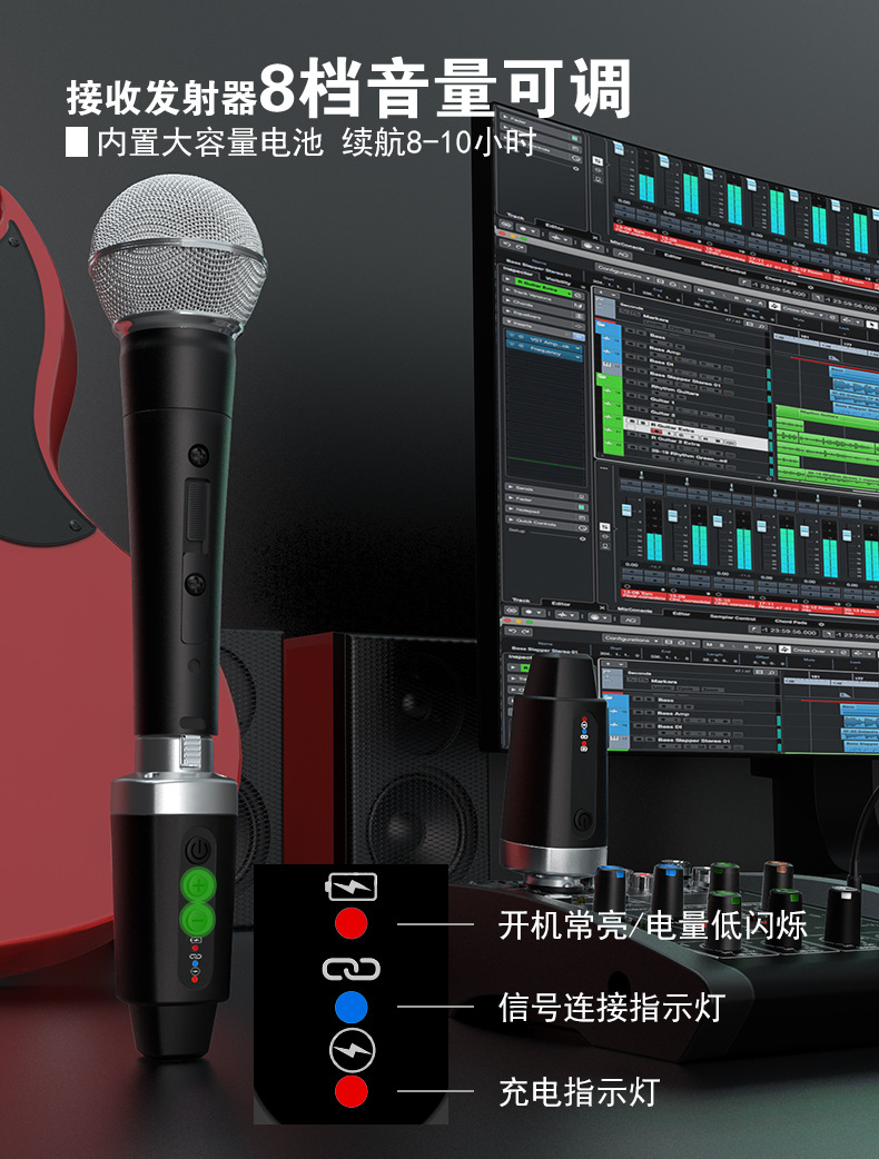 무선 커패시터/동적 마이크 지원 48V 전원 공급 장치에 유선 된 새로운 2.4G 무선 수류탄 시스템