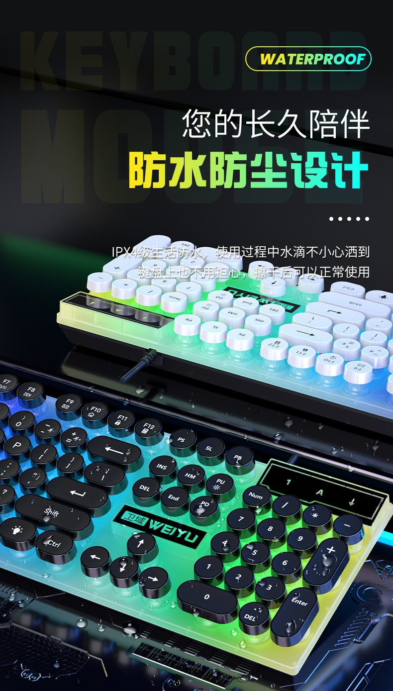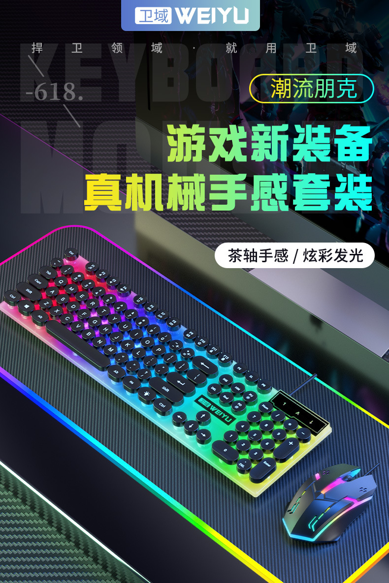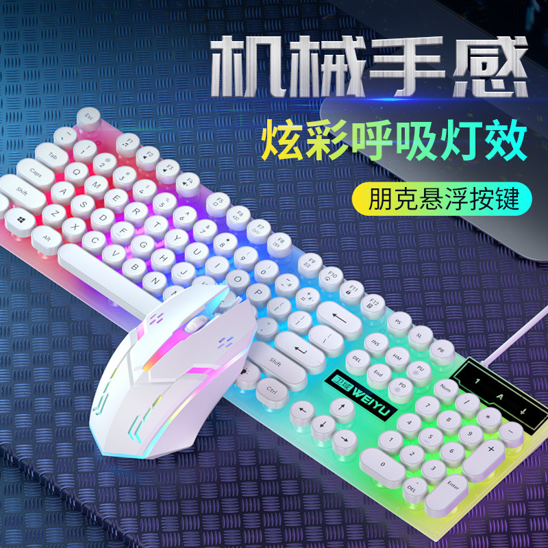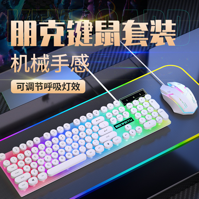 공장 직접 복고풍 펑크 음소거 유선 키보드 USB 컴퓨터 데스크톱 전자 스포츠 사무실 일반 유통 도매스토어 가기
