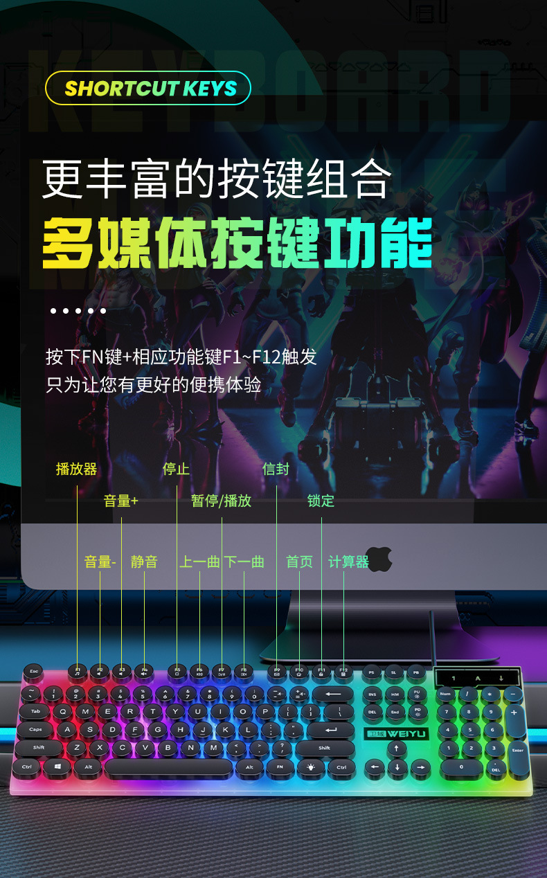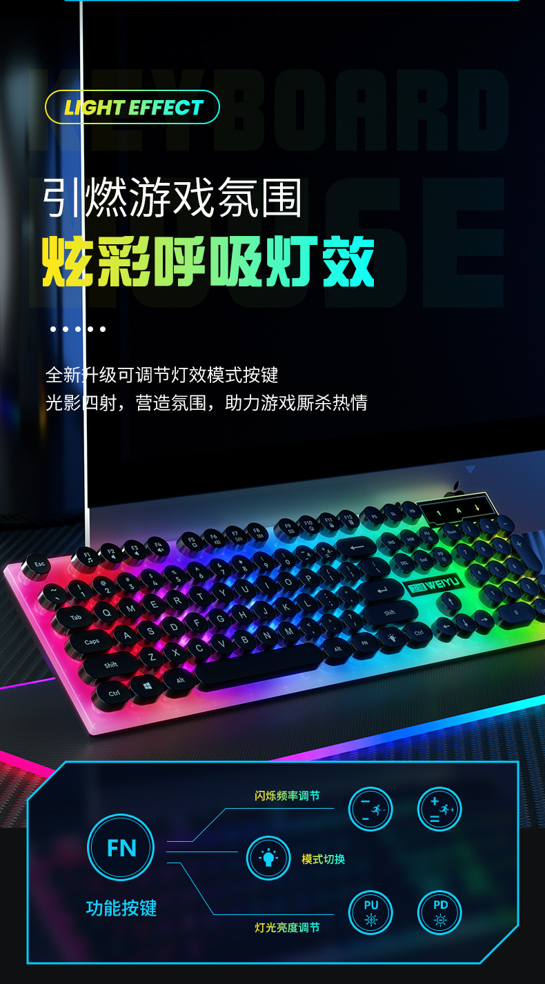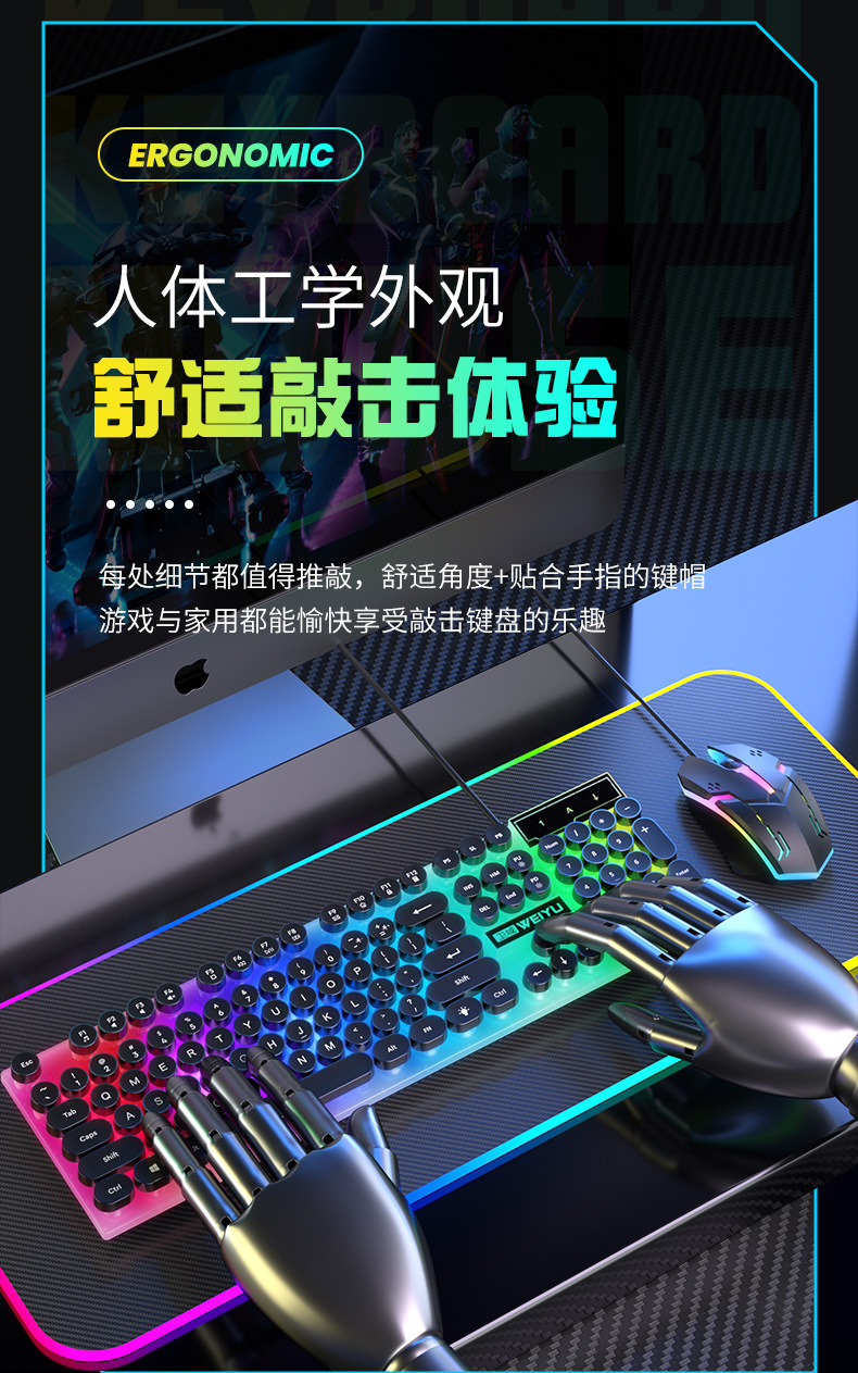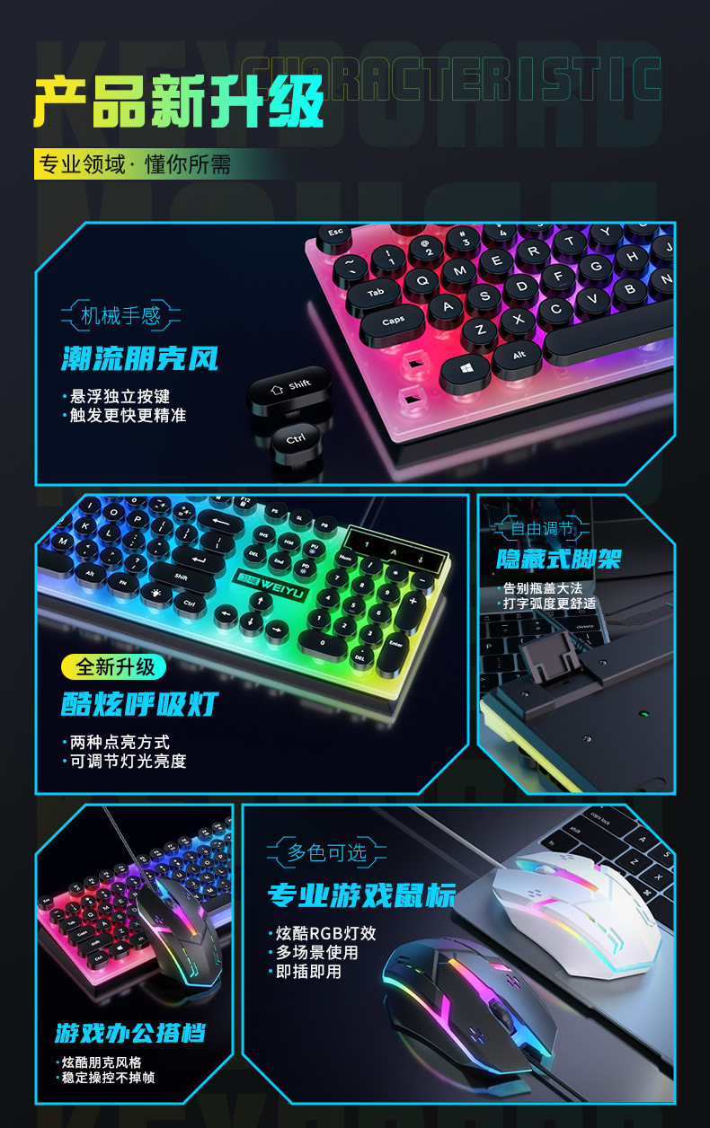 공장 직접 복고풍 펑크 음소거 유선 키보드 USB 컴퓨터 데스크톱 전자 스포츠 사무실 일반 유통 도매스토어 가기