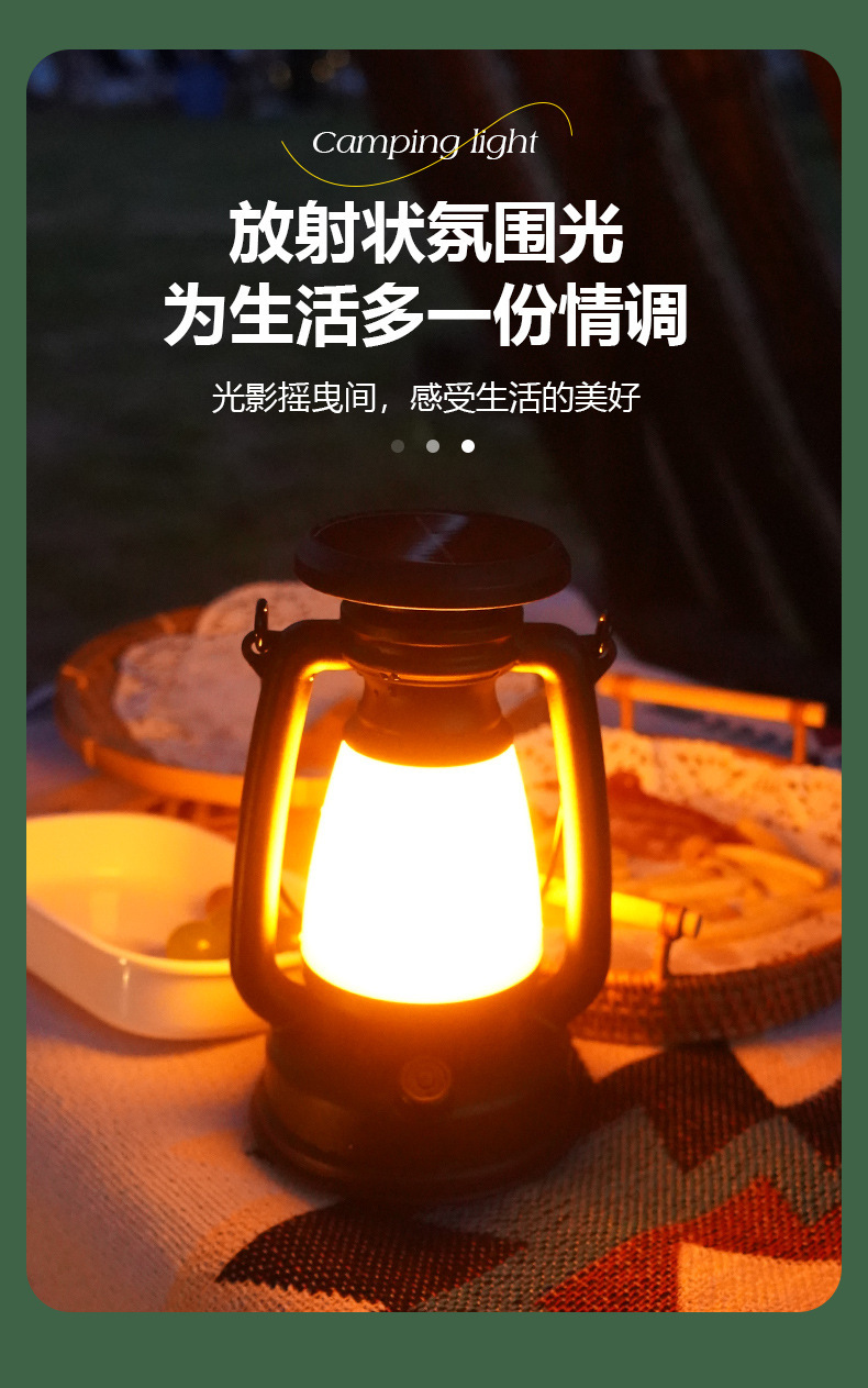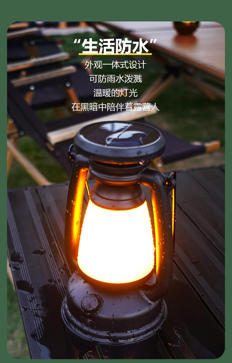 새로운 야외 레트로 태양 휴대용 캠핑 램프 충전 테이블 램프 장식 분위기 램프 등유 램프 비상 램프