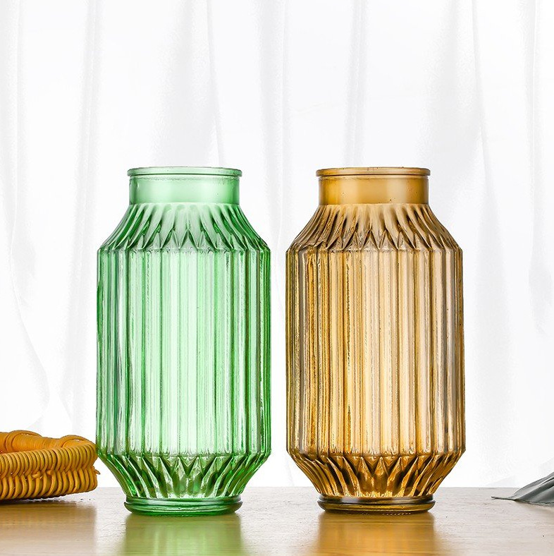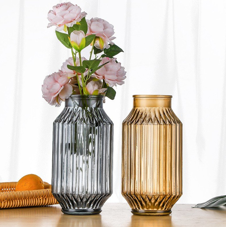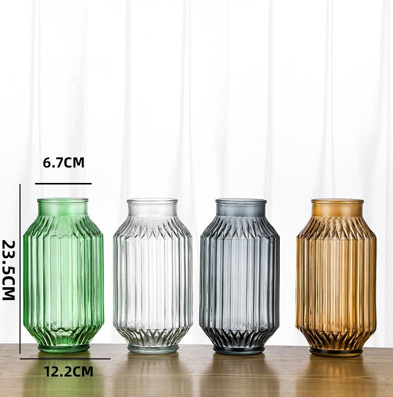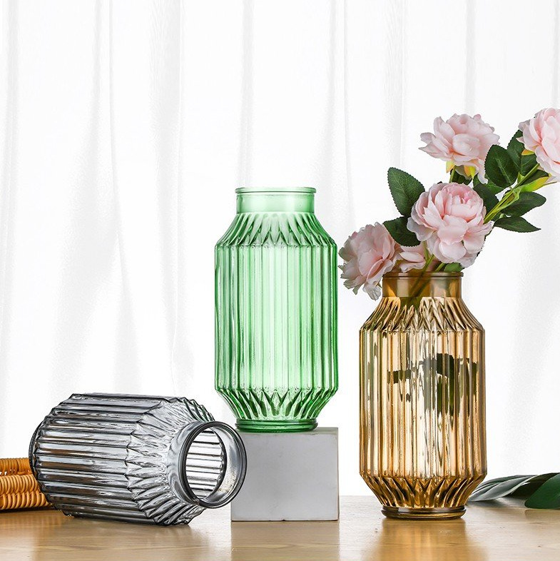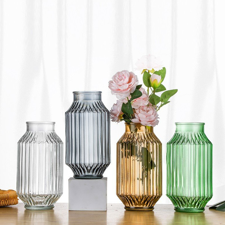 유럽 스타일의 수경 꽃병 부드러운 꽃꽂이 장식품 예술적 작은 신선한 유리 투명 수직 패턴 꽃병