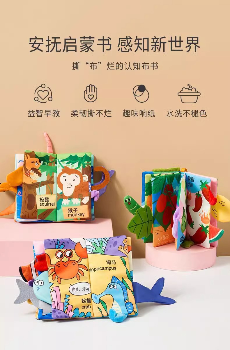 아기 아기 조기 교육 천 책 찢어지지 않도록 물 수 있습니다 0-6 개월 1 년 된 3 차원 꼬리 책 깨달음 교육 장난감스토어 가기