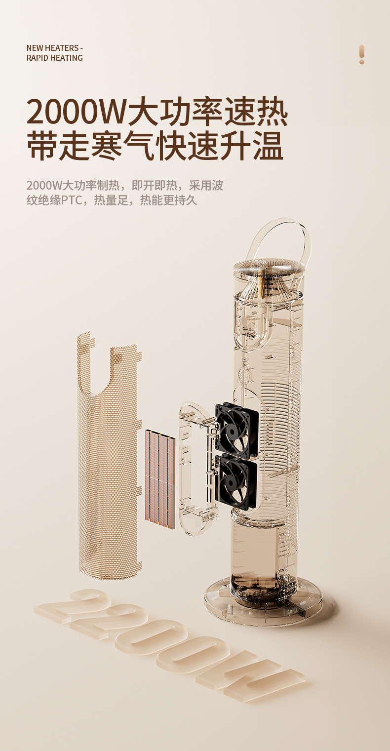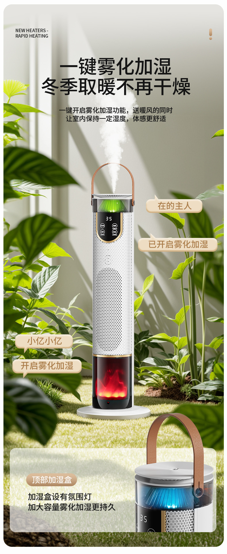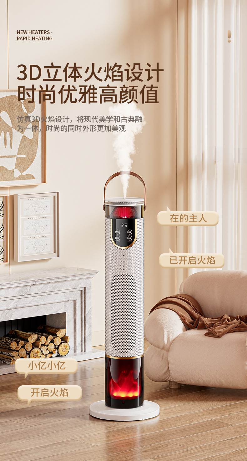 새로운 가습기 히터 음성 욕실 전기 난방 시뮬레이션 불꽃 빠른 난방 수직 선풍기 절전