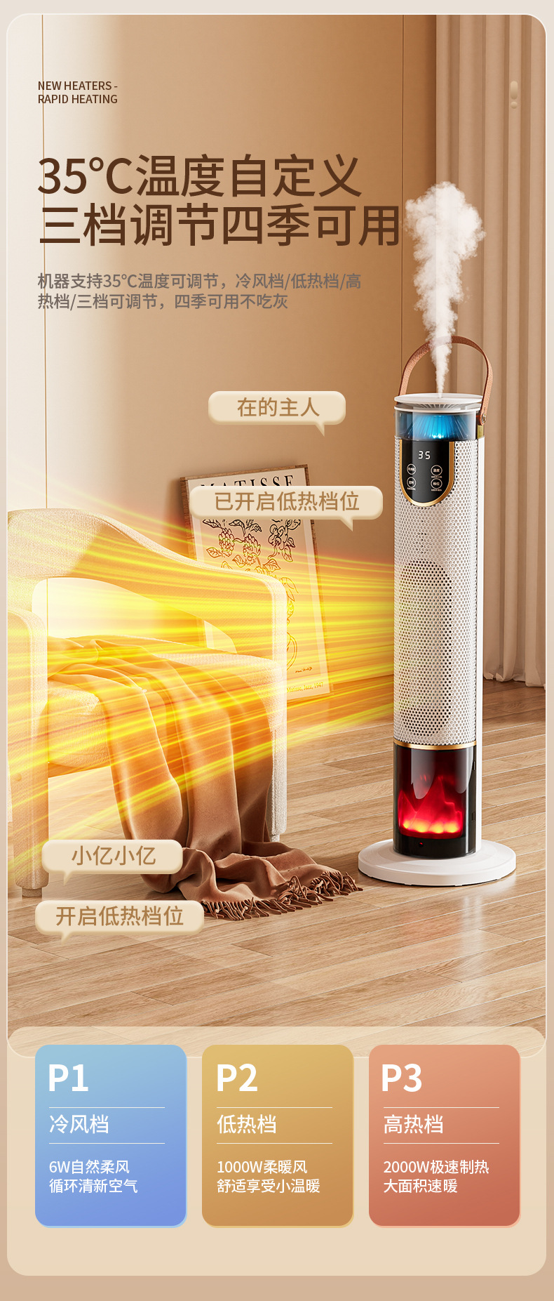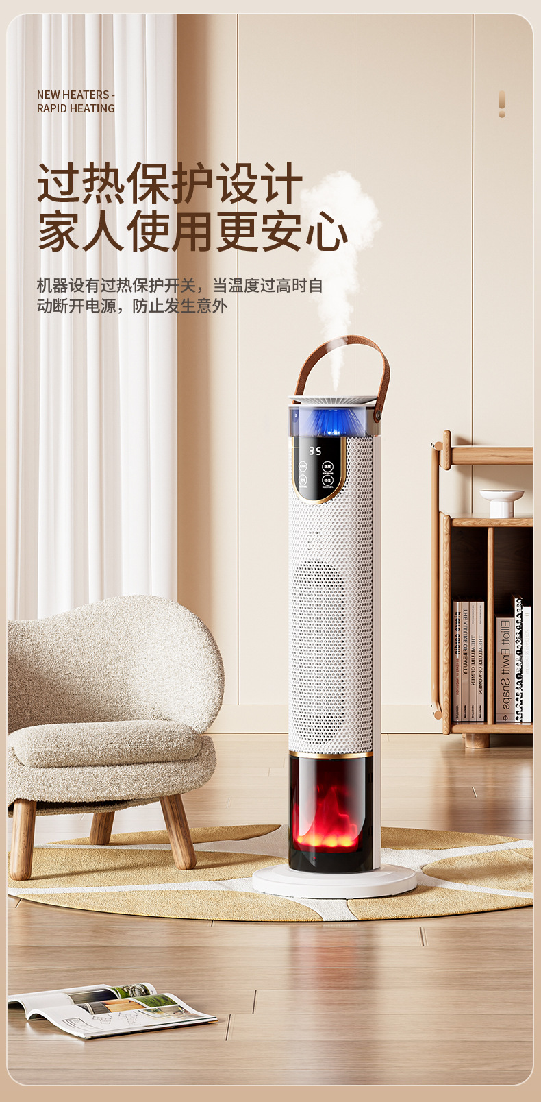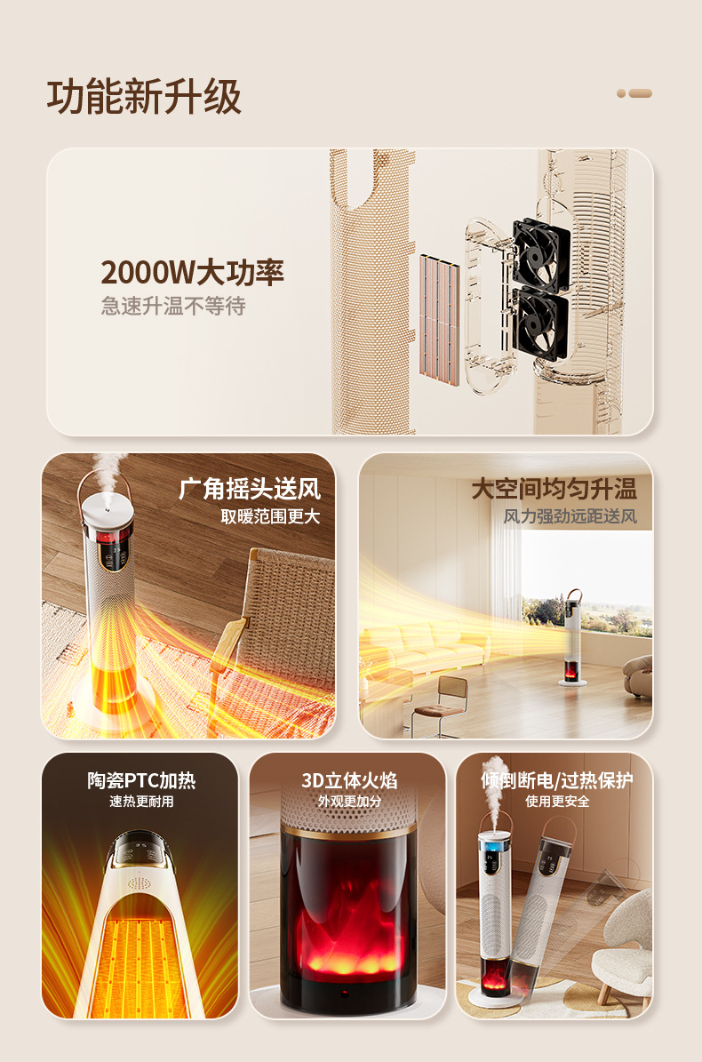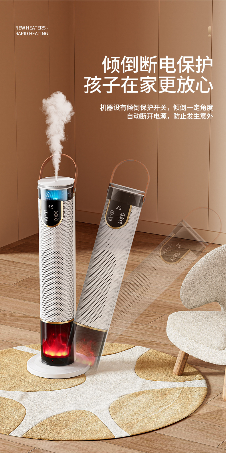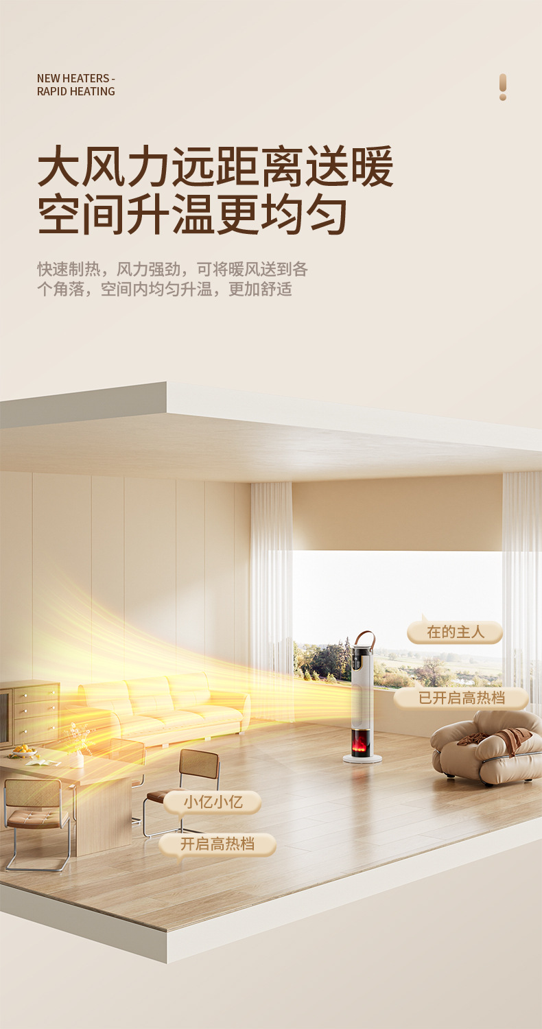 새로운 가습기 히터 음성 욕실 전기 난방 시뮬레이션 불꽃 빠른 난방 수직 선풍기 절전스토어 가기