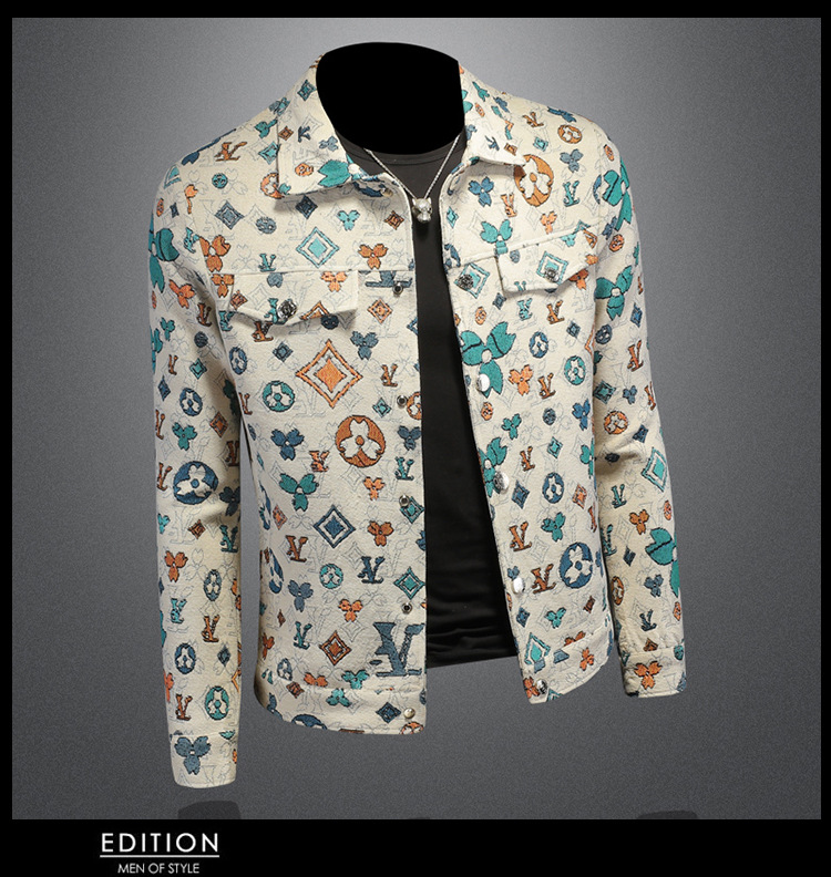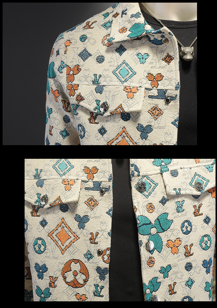 유럽 스타일 2025 가을 신상 자카드 라펠 재킷 남성용 코트 7519