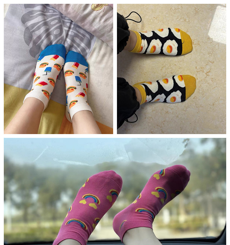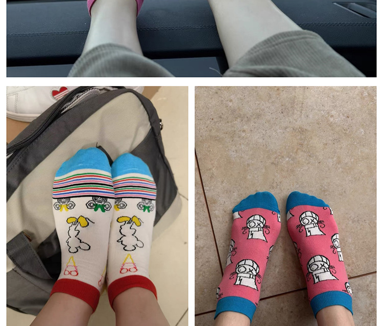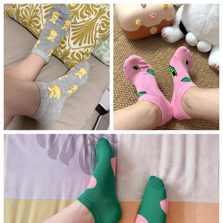 HappySocks 하이피 짧은 면 양말 만화 애니메이션 얕은 입 로우 컷 여성 스웨덴 양말 봄과 여름 다채로운 유행