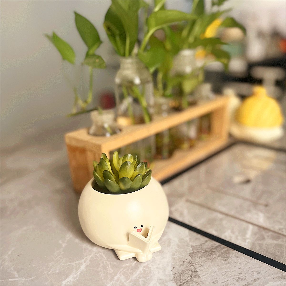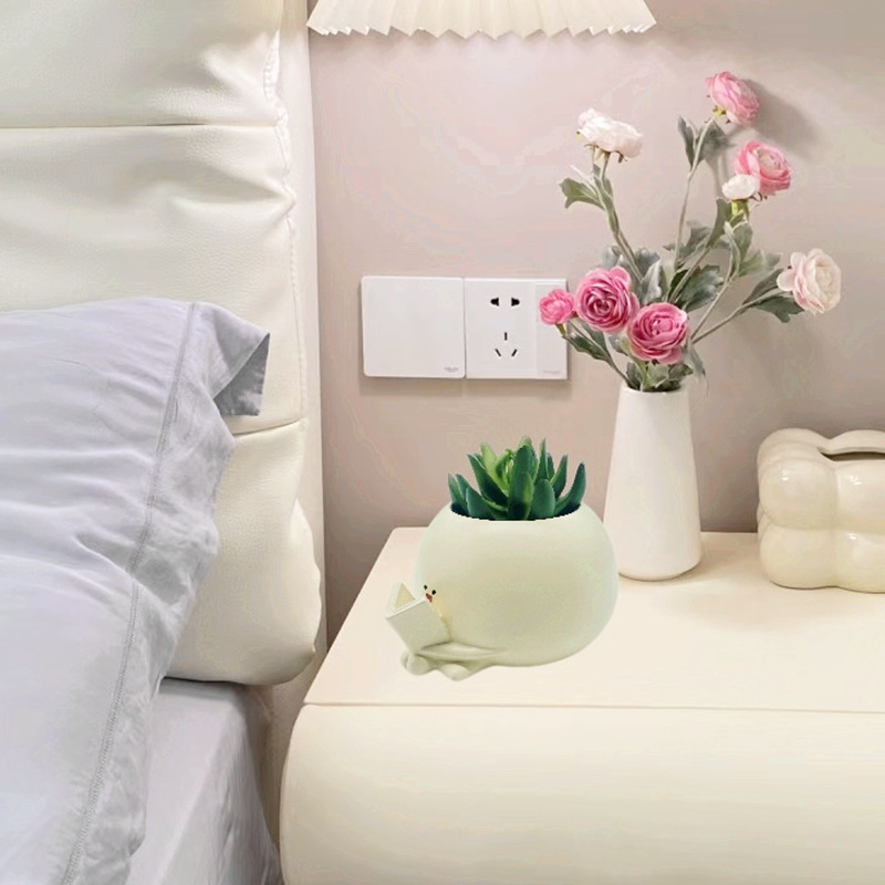 국경 간 창조적 인 꽃 냄비 장식품 사무실 다육 장식 홈 녹색 식물 호박 귀여운 독서 수지 공예스토어 가기