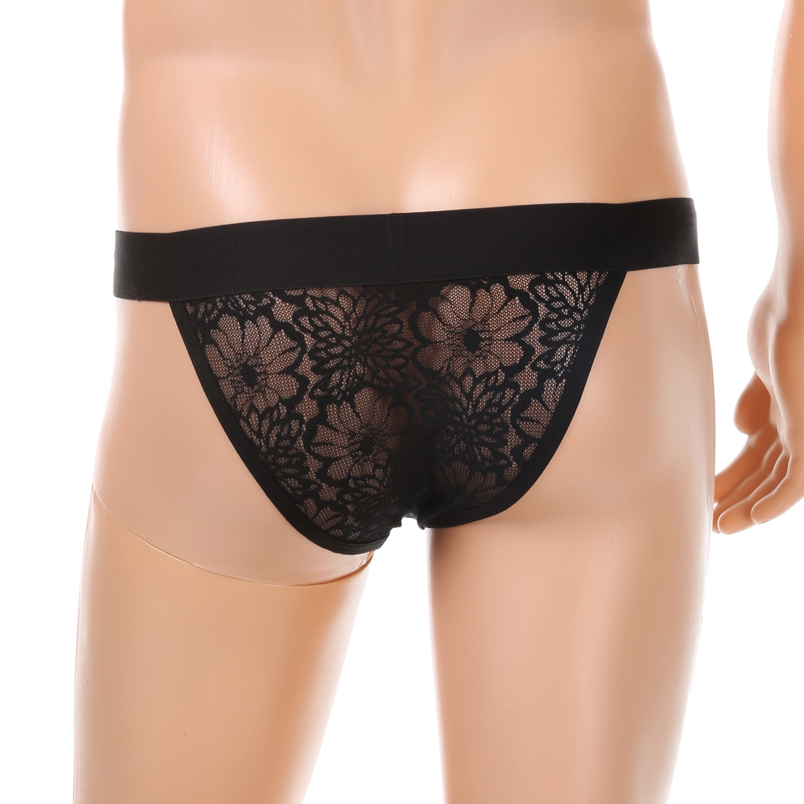 男士蕾丝三角裤 性感舒适透明U凸大囊袋高叉内裤情趣内裤