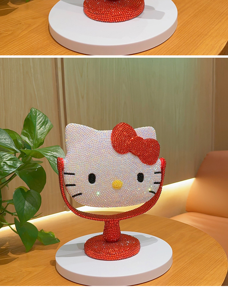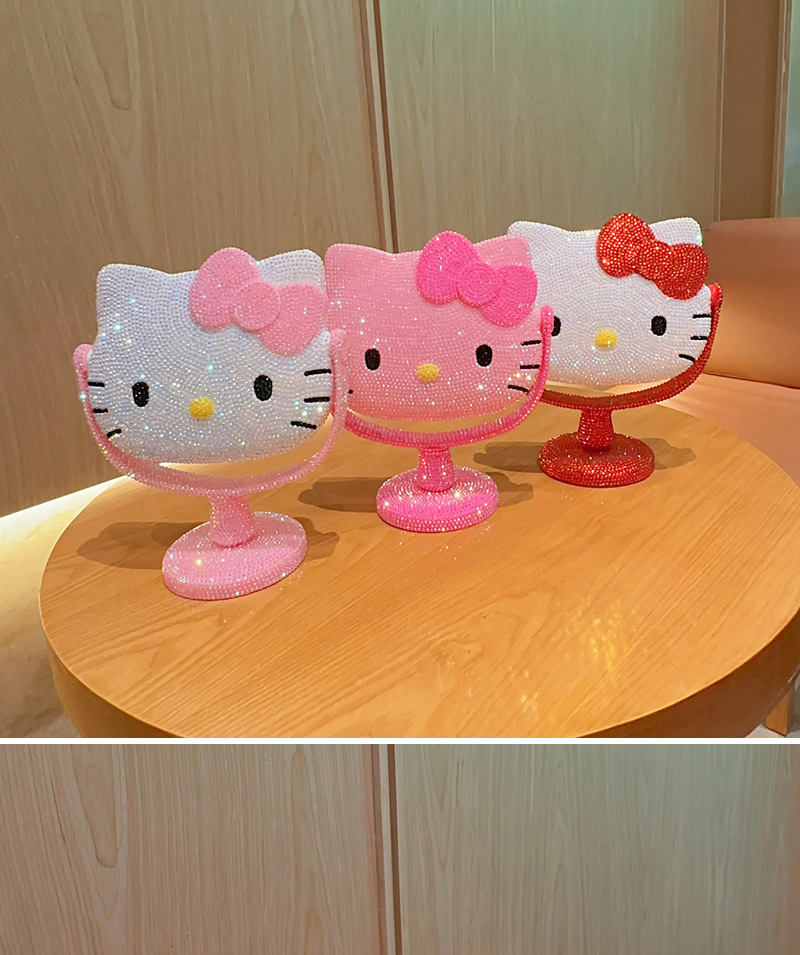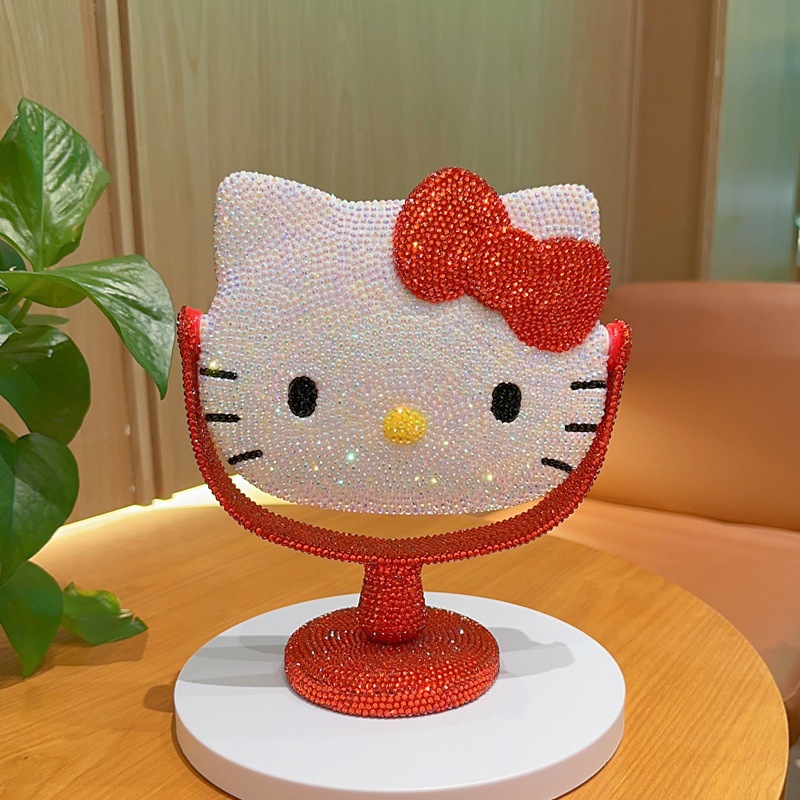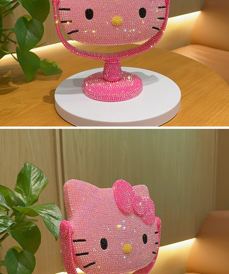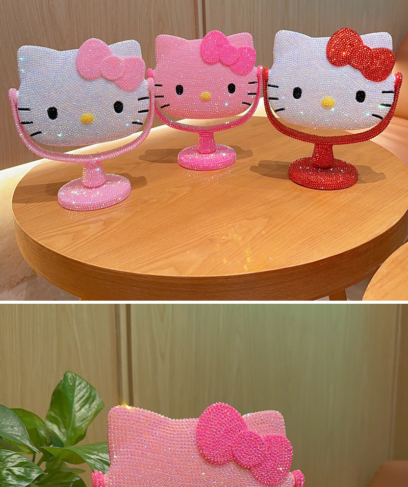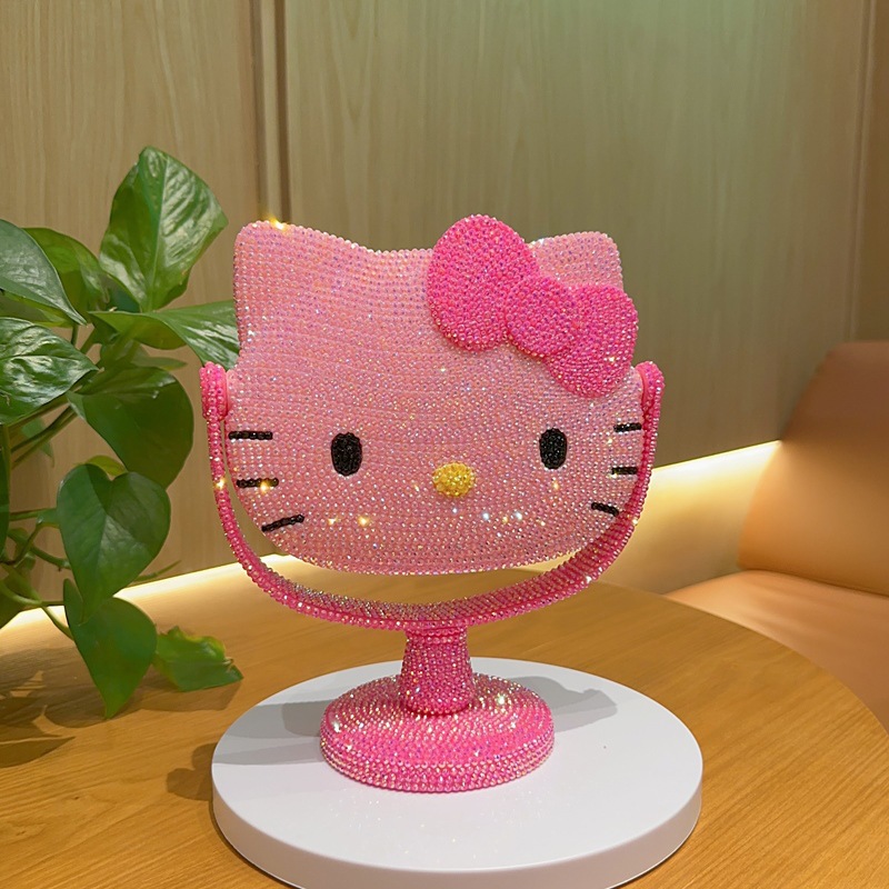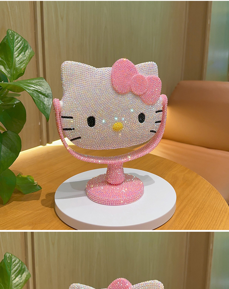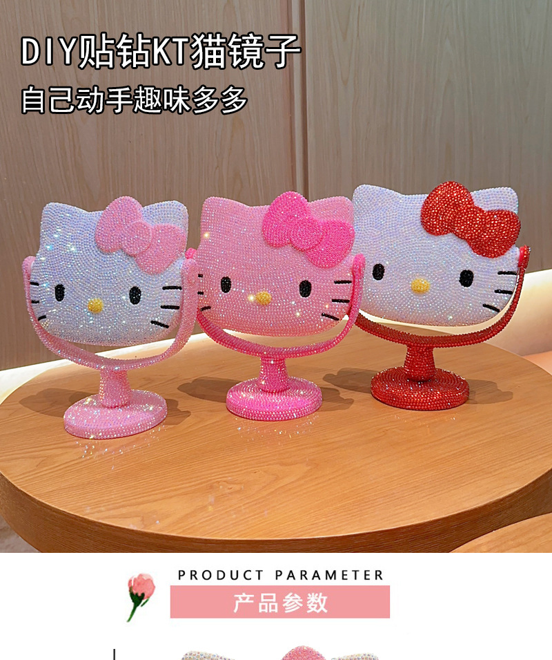 Hellokitty 거울 수제 DIY 다이아몬드 KT 고양이 메이크업 거울 스틱 다이아몬드 테이블 귀여운 창조적 인 보내기 여자 친구