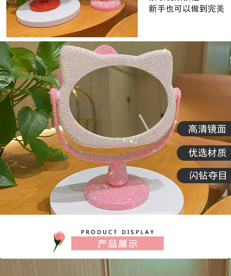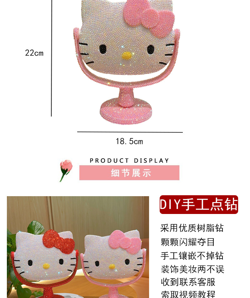 • 핑크 + 로즈 레드 KT 고양이 화장거울 DIY 재료 패키지 (완전한 도구와 충분한 재료)