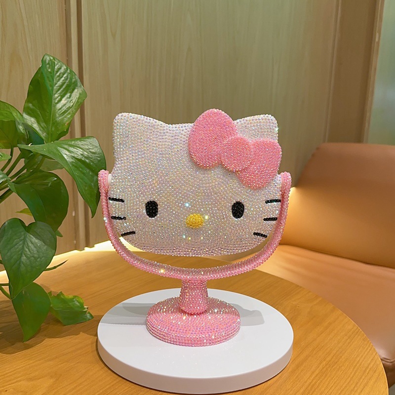 Hellokitty 거울 수제 DIY 다이아몬드 KT 고양이 메이크업 거울 스틱 다이아몬드 테이블 귀여운 창조적 인 보내기 여자 친구스토어 가기