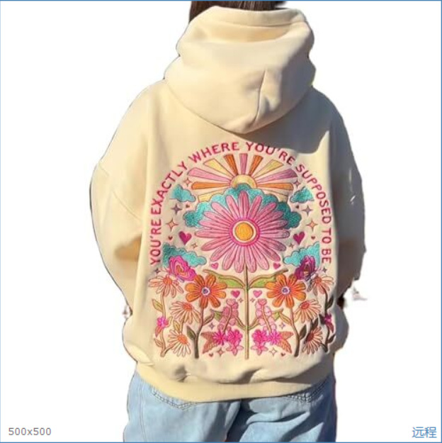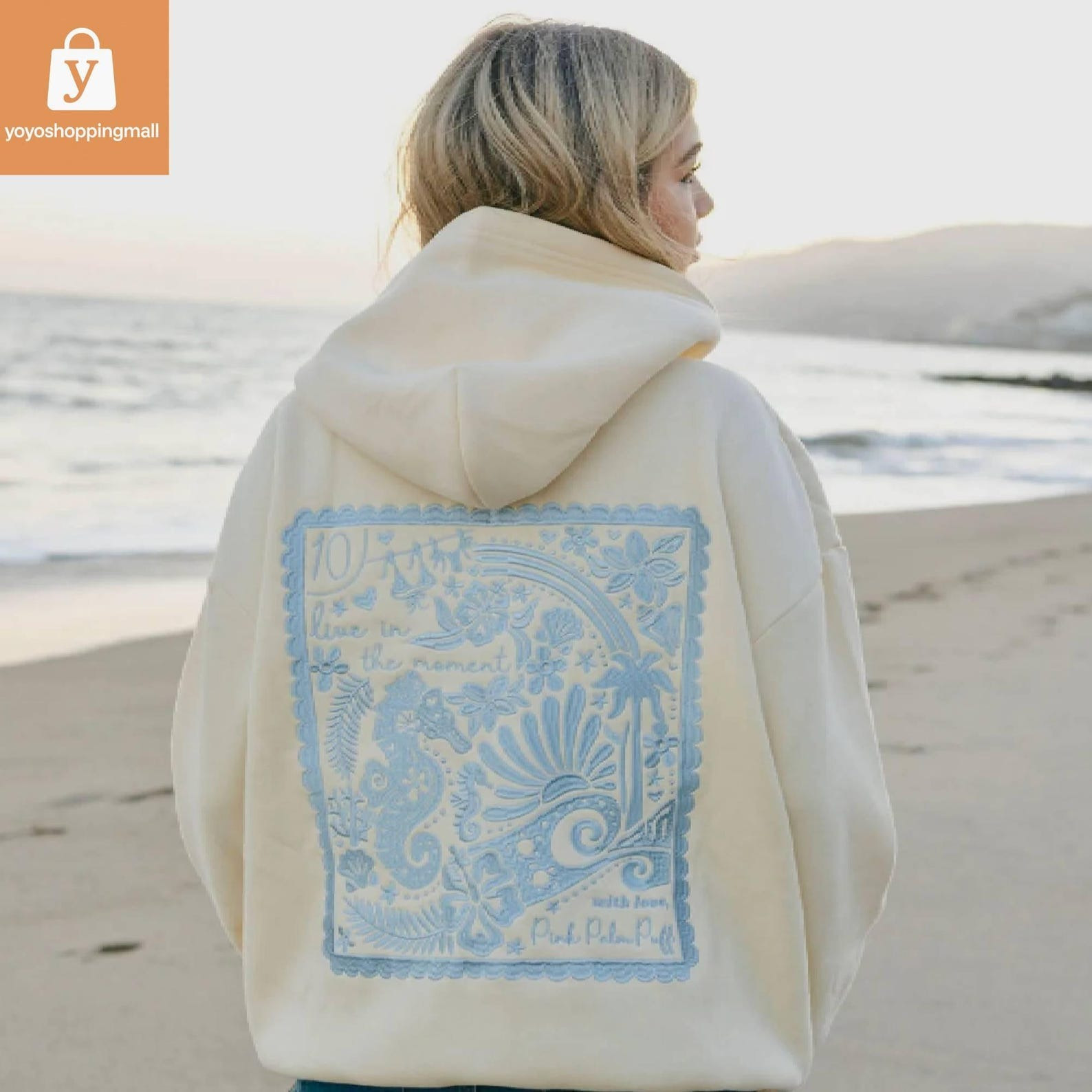 2024 새로운 유럽 사이즈 여성 어깨 소매 스레드 하와이 히비스커스 브랜드 스웨터 후드 인쇄스토어 가기