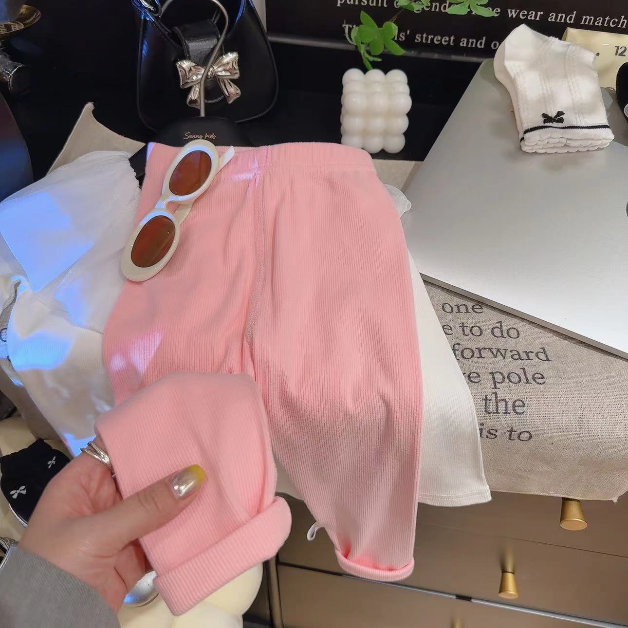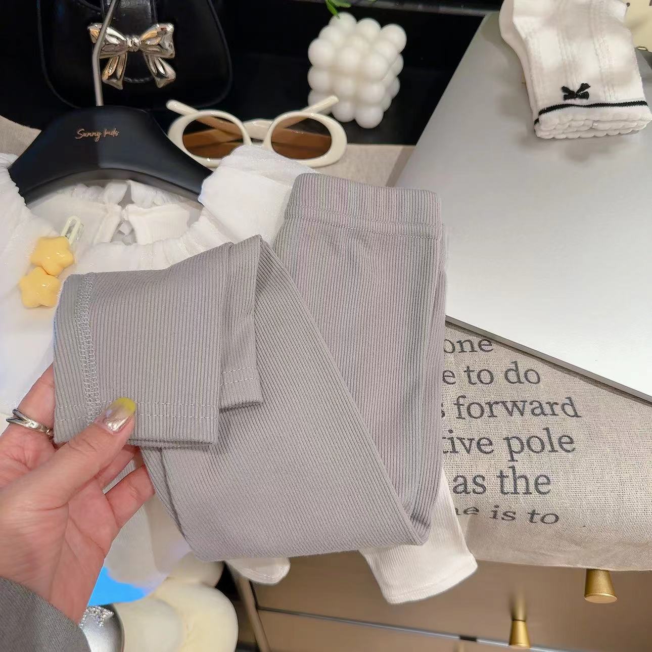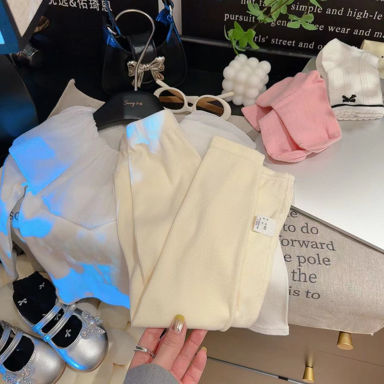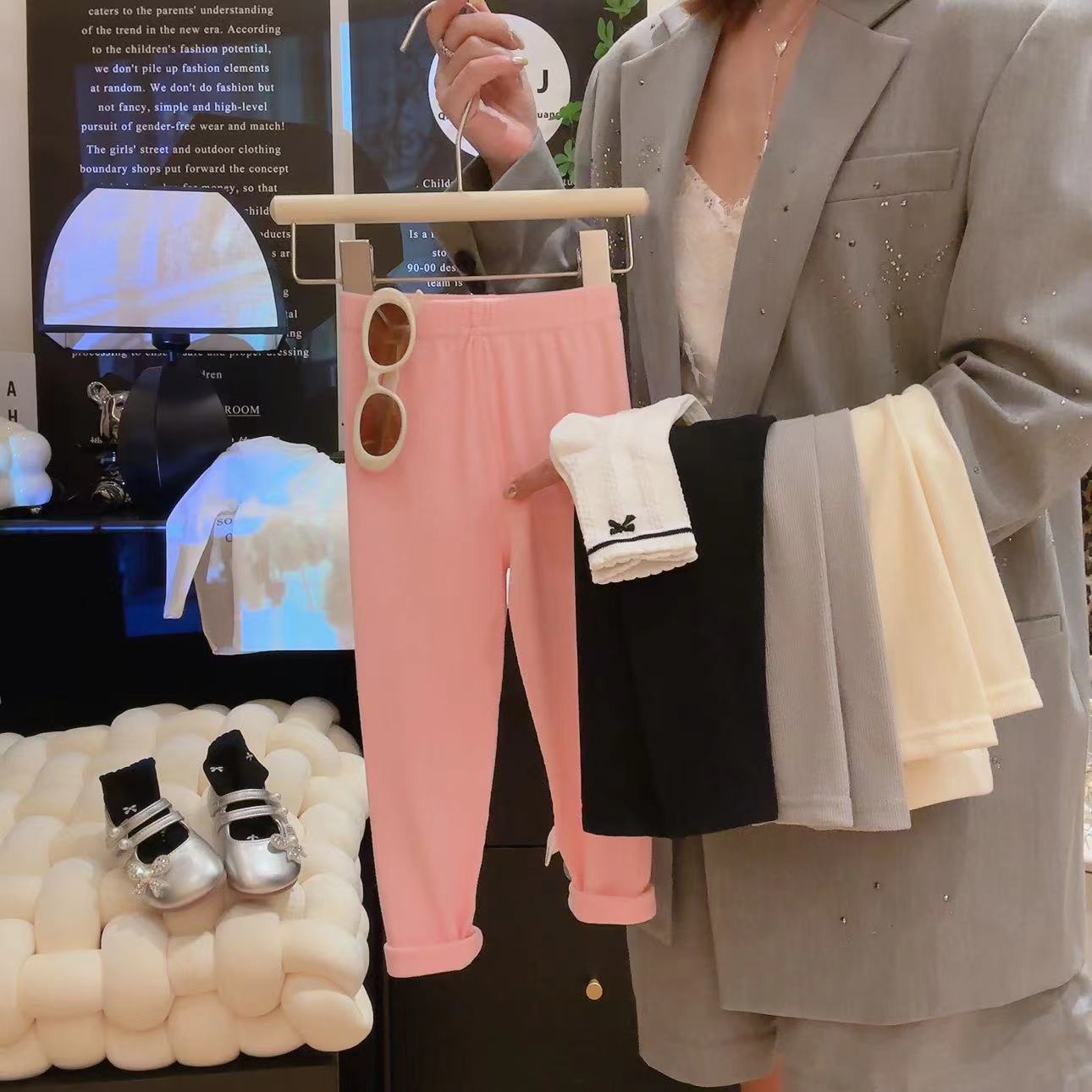 소녀의 봄과 가을 두꺼운 머리 잡기 구덩이 캐주얼 바지 어린이 외부 착용 단색 기본 바지 스트레치 레깅스