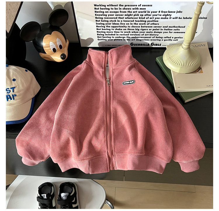 2024 가을 겨울 어린이 입자 벨벳 재킷 캐주얼 올매치 걸스와 여자 지퍼 셔츠 한국 스타일 칼라 미드 빅 어린이 자켓스토어 가기