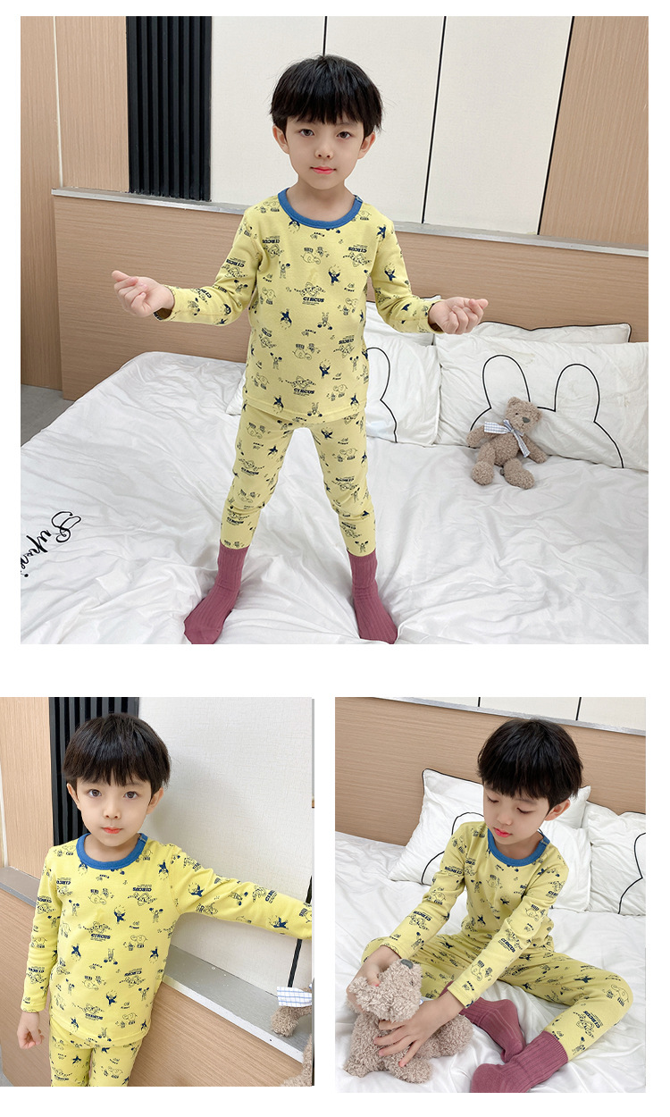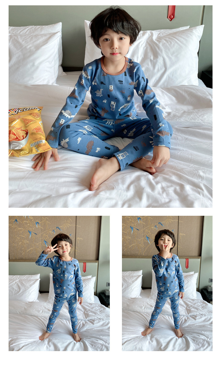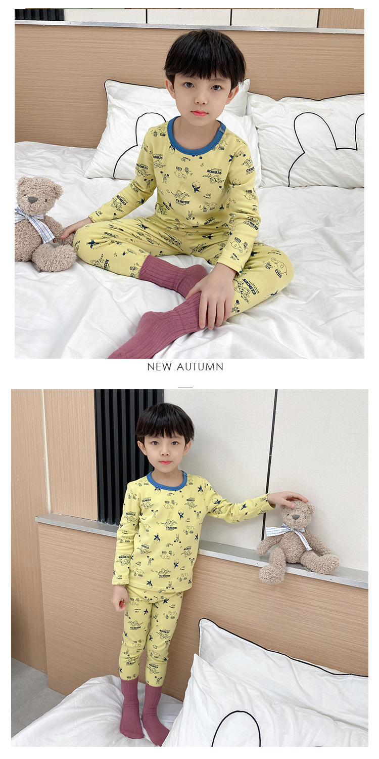한국 어린이 가을 옷과 바지 세트 가을 · 겨울 어린이 집 옷 세트 여자 열 속옷 소년 잠옷스토어 가기