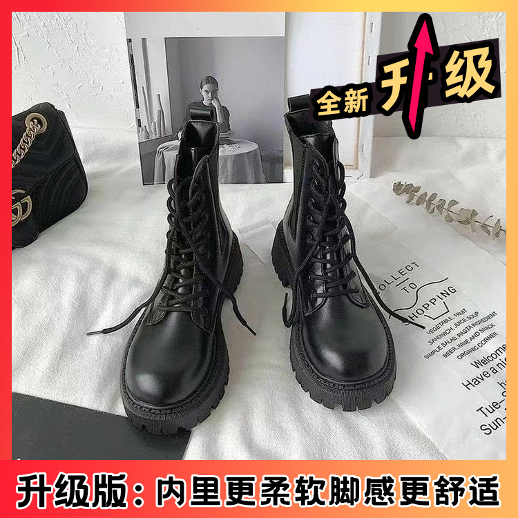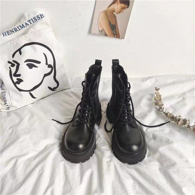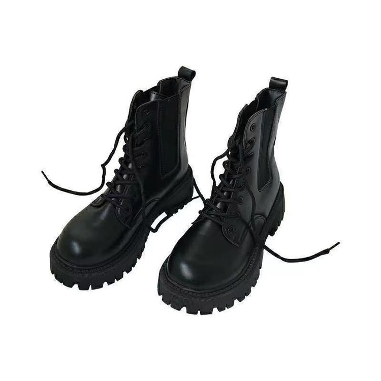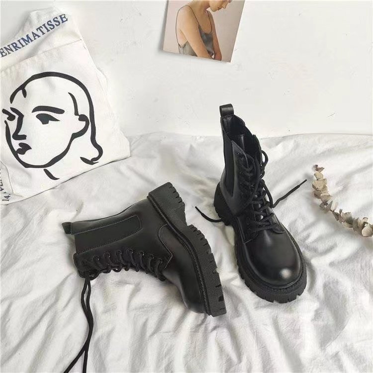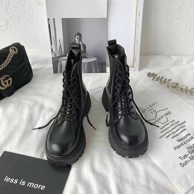 2025년 가을 여성용 블랙 마틴 부츠, 영국 스타일 두꺼운 밑창 끈부츠, 키높이 패션 슬림 부츠 도매스토어 가기