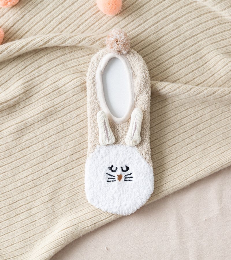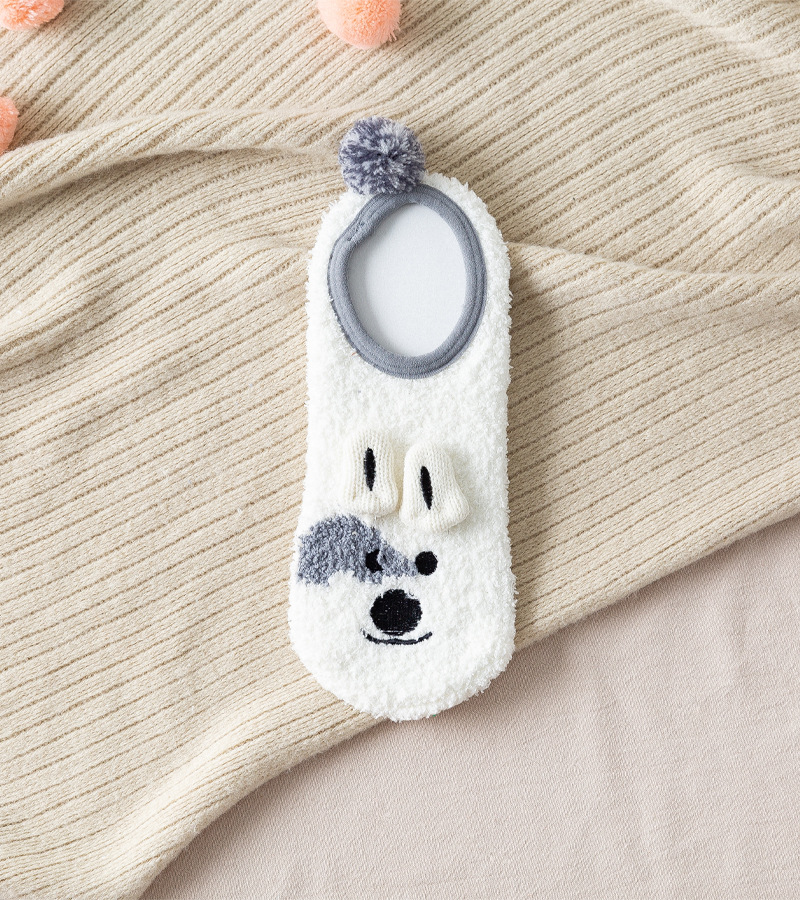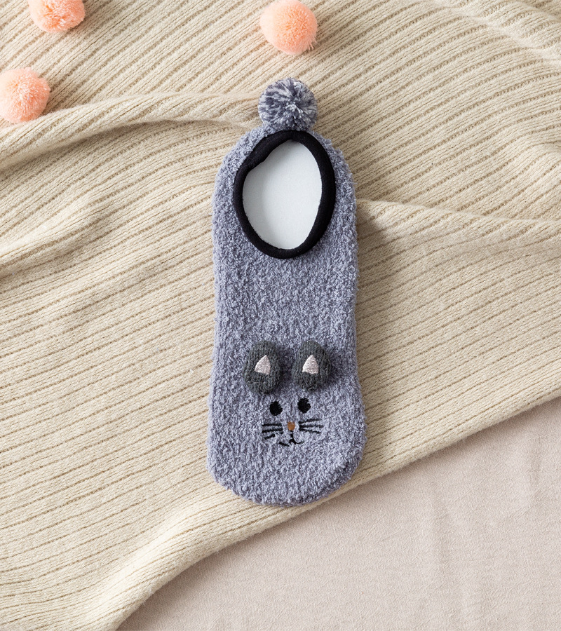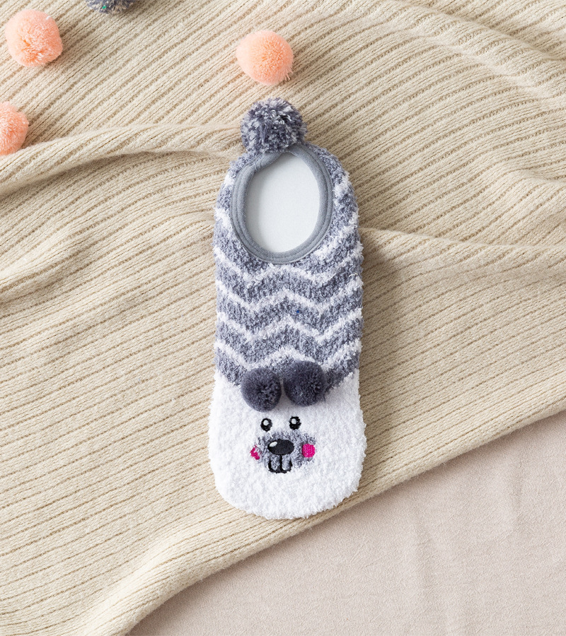 가을과 겨울 보트 양말 두꺼운 따뜻한 귀여운 작은 동물 산호 양털 홈 실리콘 미끄럼 방지 성인 바닥 양말 도매스토어 가기